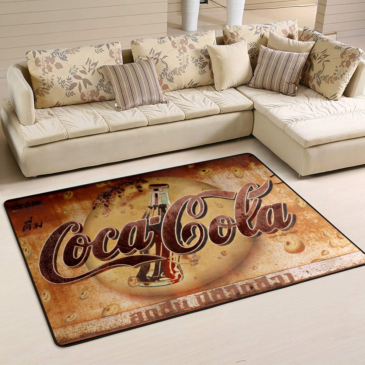 Modern Area Rug Coca Cola Vintage Sign Large Rug Floor Carpet Mat for Living Room Bedroom 60x39in