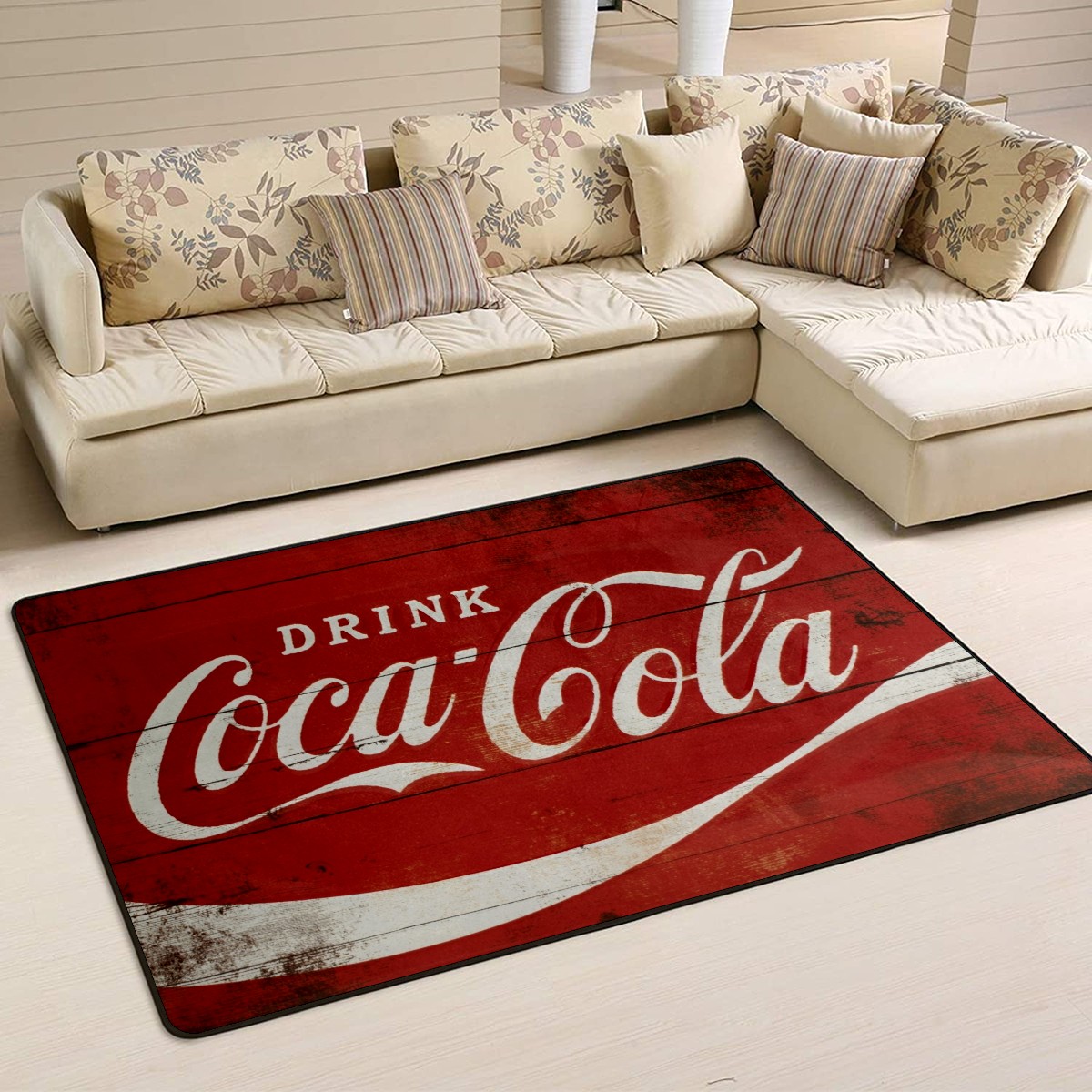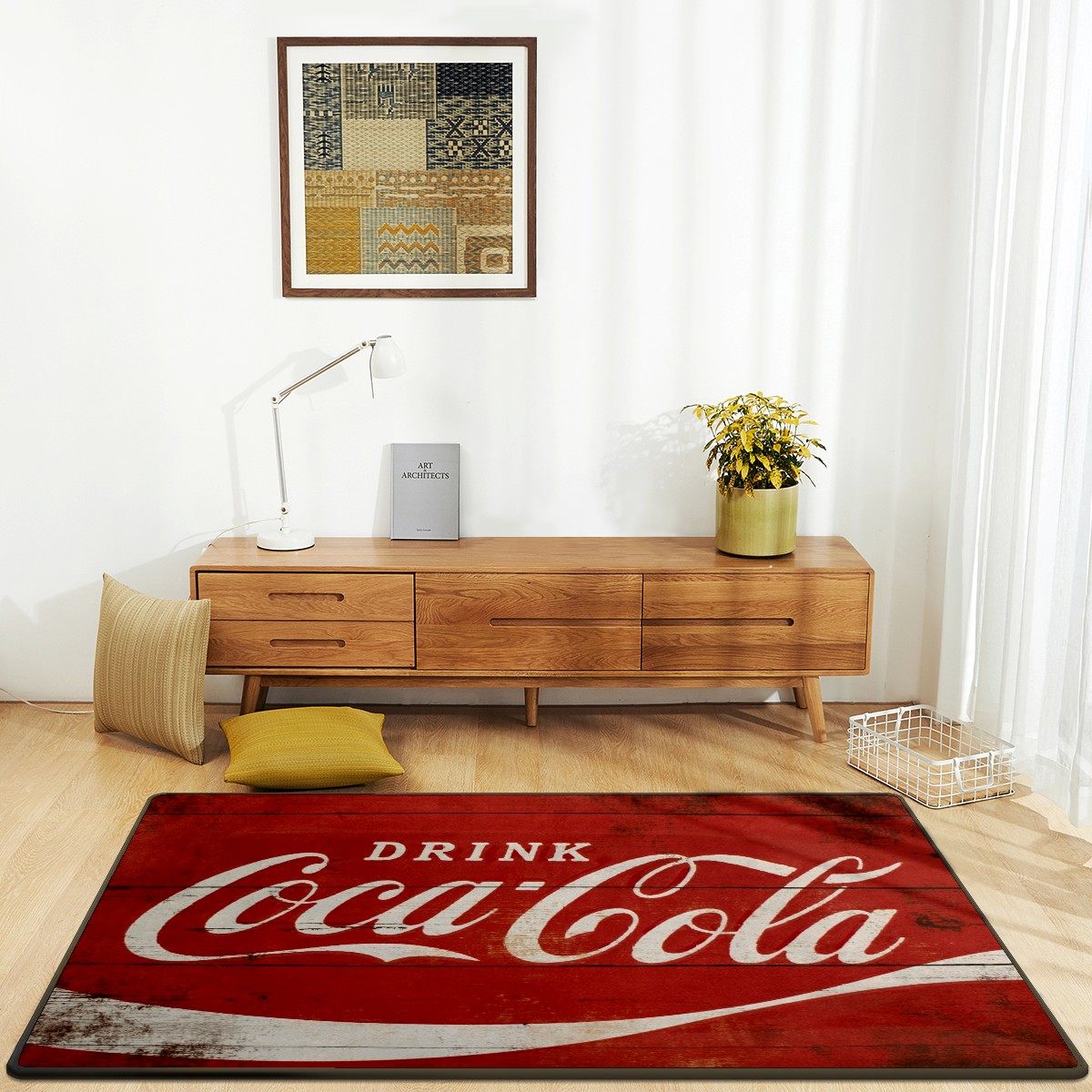 Modern Area Rug Coca Cola Vintage Red Wood Background Large Rug Floor Carpet Mat for Living Room Bedroom 60x39in