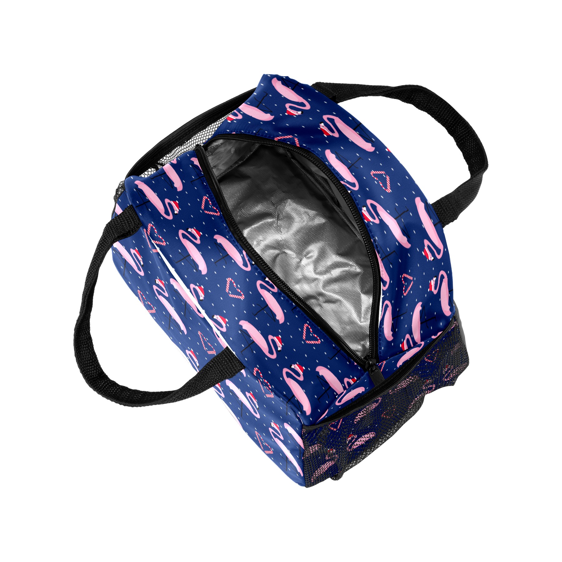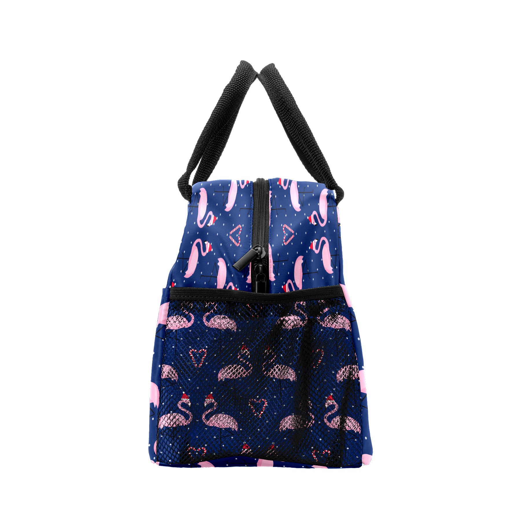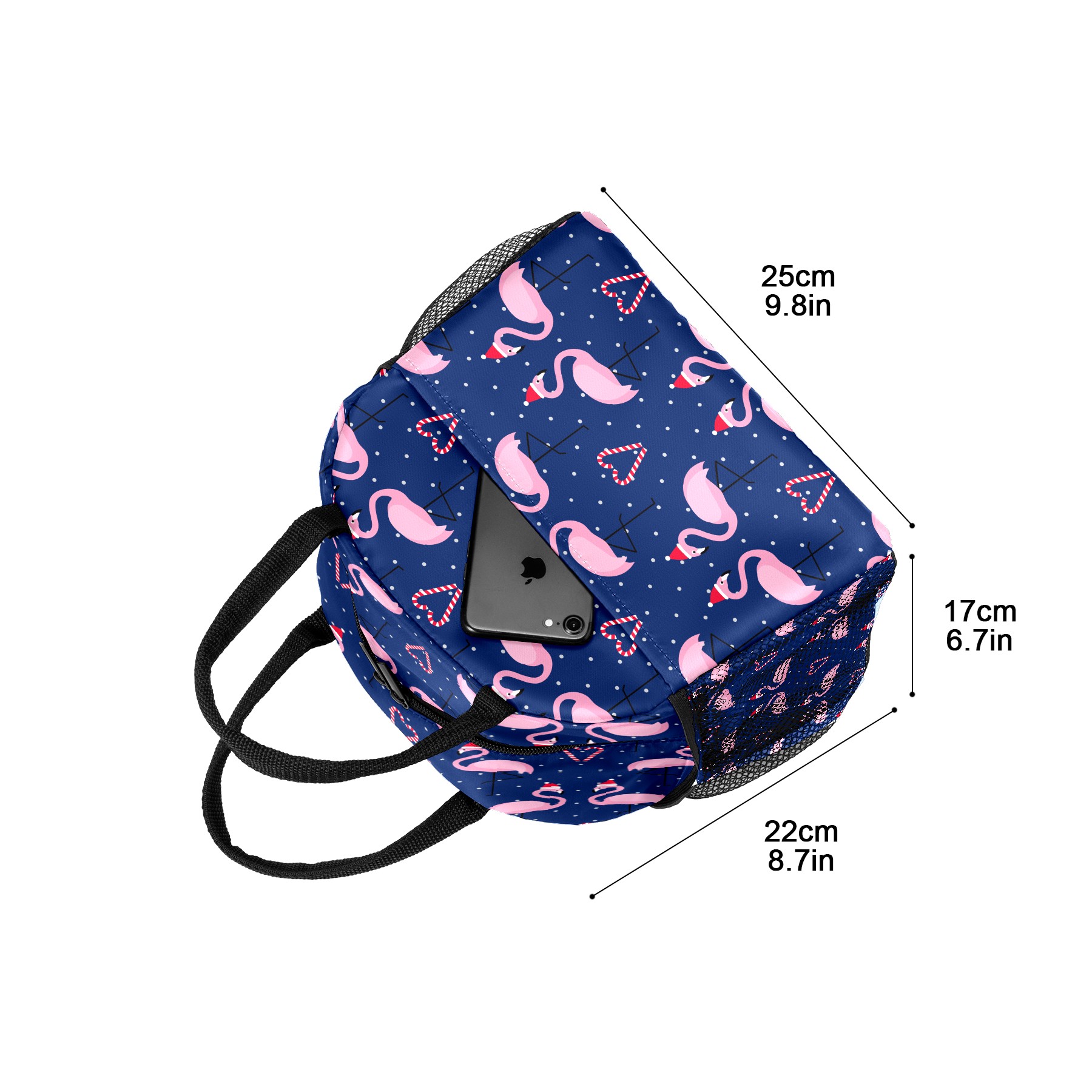 Lunch Bag for Women Men, Love Flamingo With Chirstmas Hat Pattern Insulated Reusable Lunch Box Thermal Cooler Tote Bag for Work Picnic Hiking Travel Beach