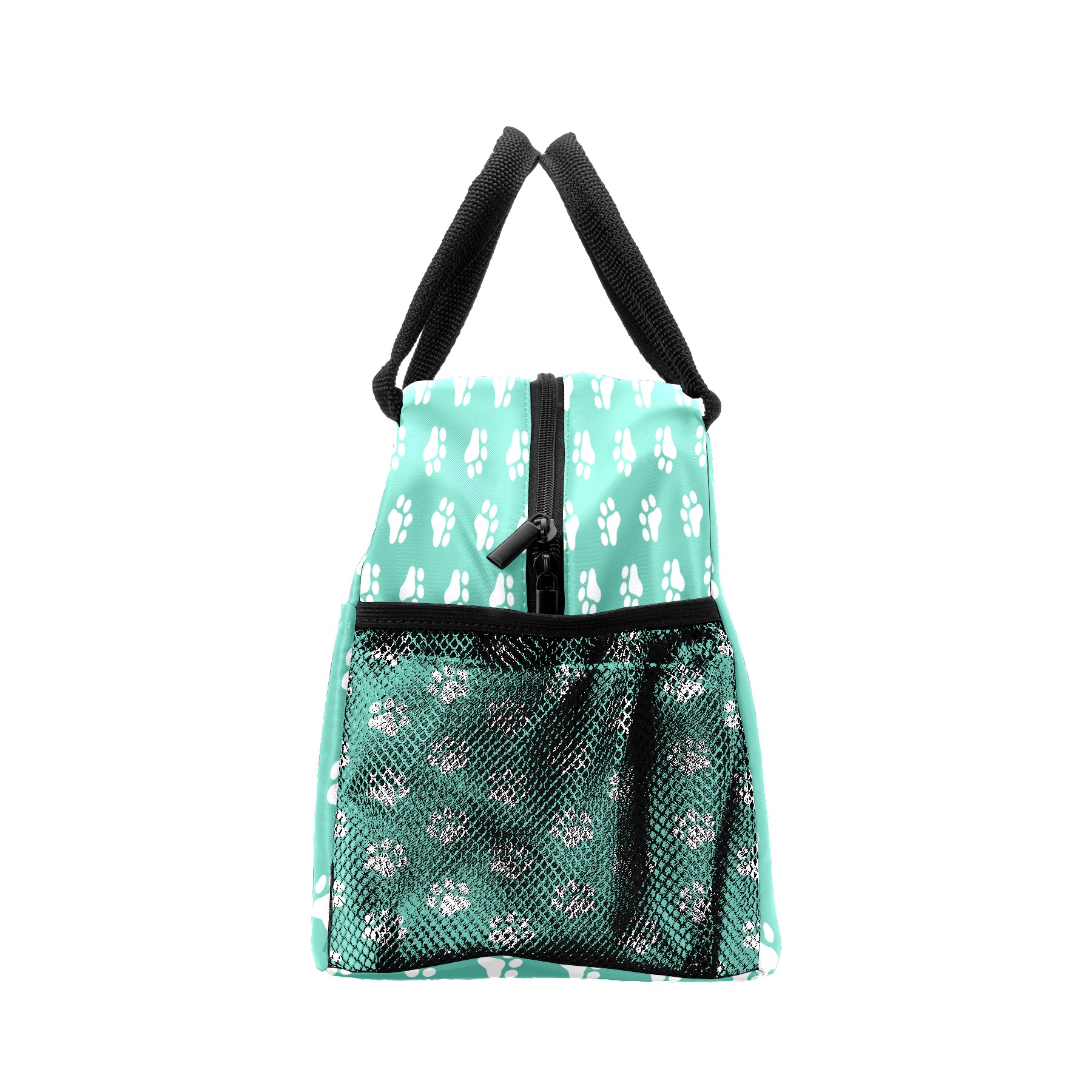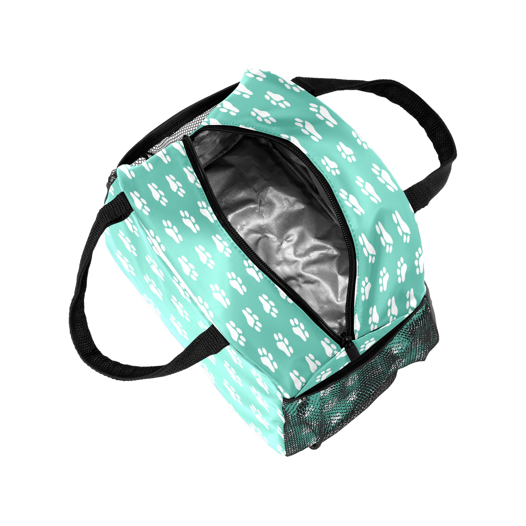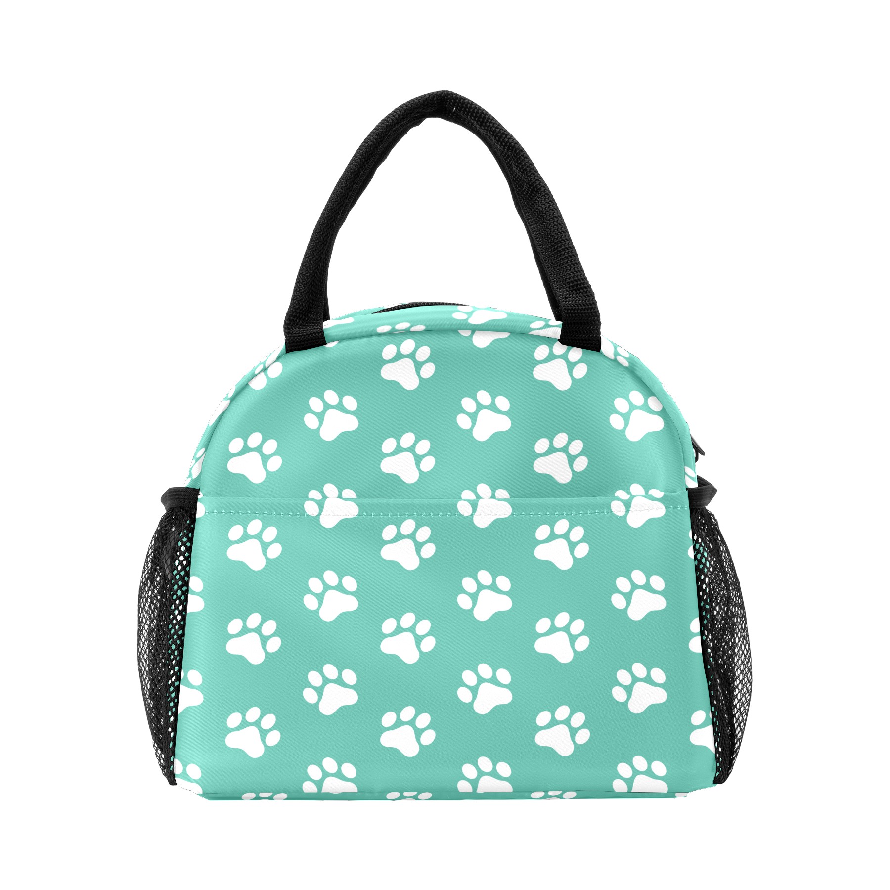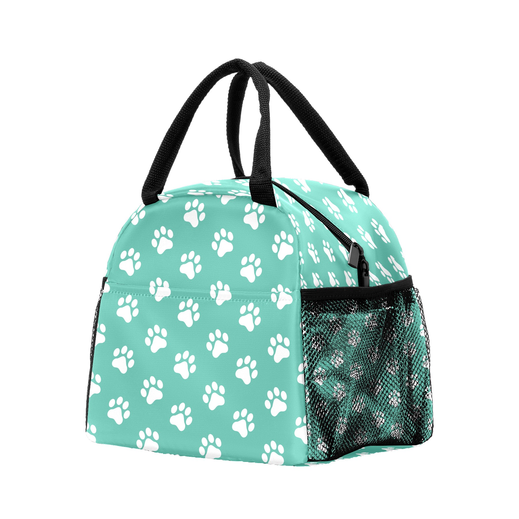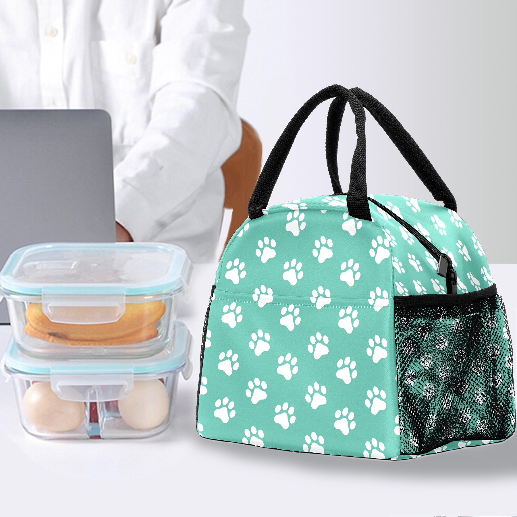 Lunch Bag for Women Men, Green Cats Paw Pattern Insulated Reusable Lunch Box Thermal Cooler Tote Bag for Work Picnic Hiking Travel Beach