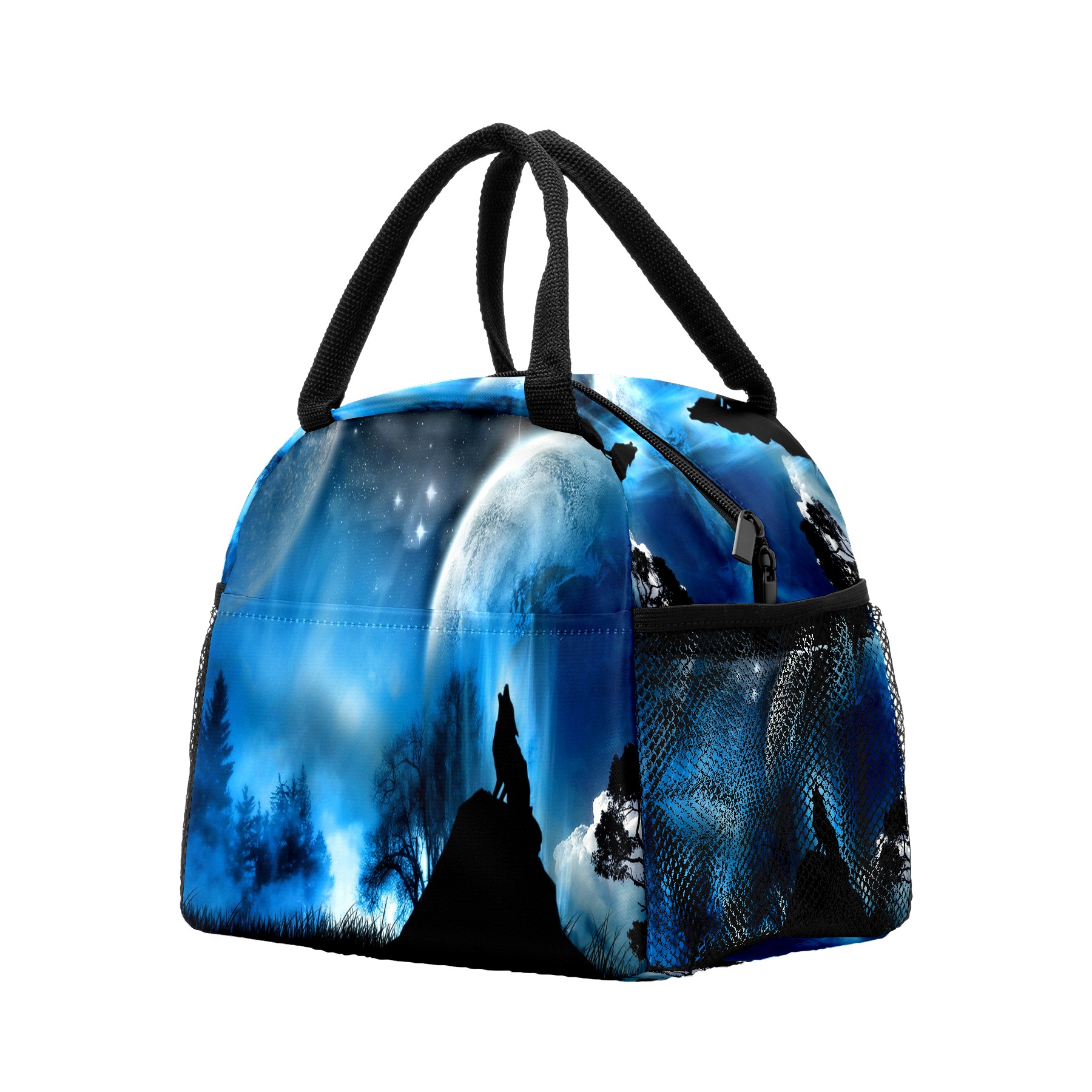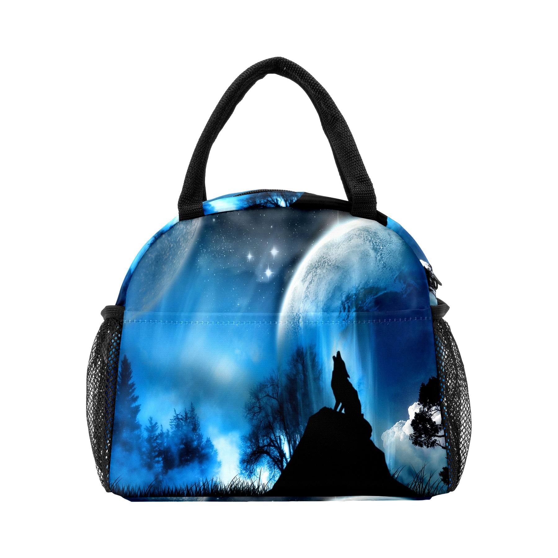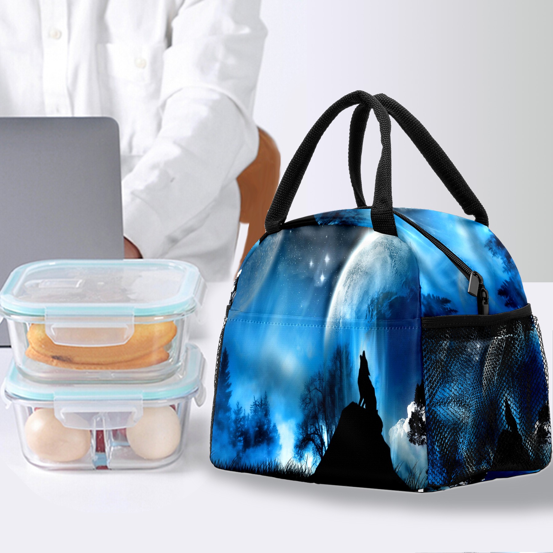 Lunch Bag for Women Men, Galaxy Sky Wolf Insulated Reusable Lunch Box Thermal Cooler Tote Bag for Work Picnic Hiking Travel Beach