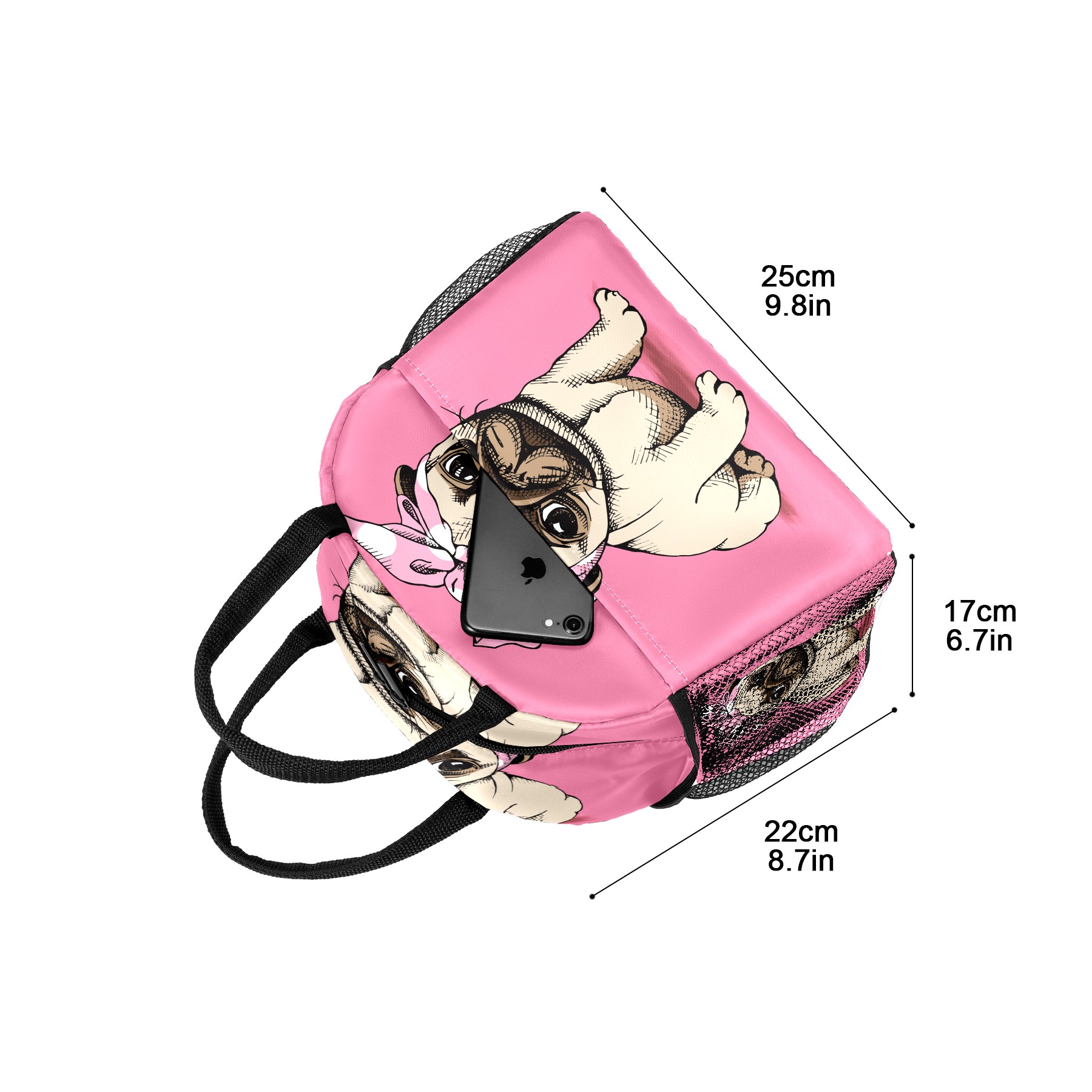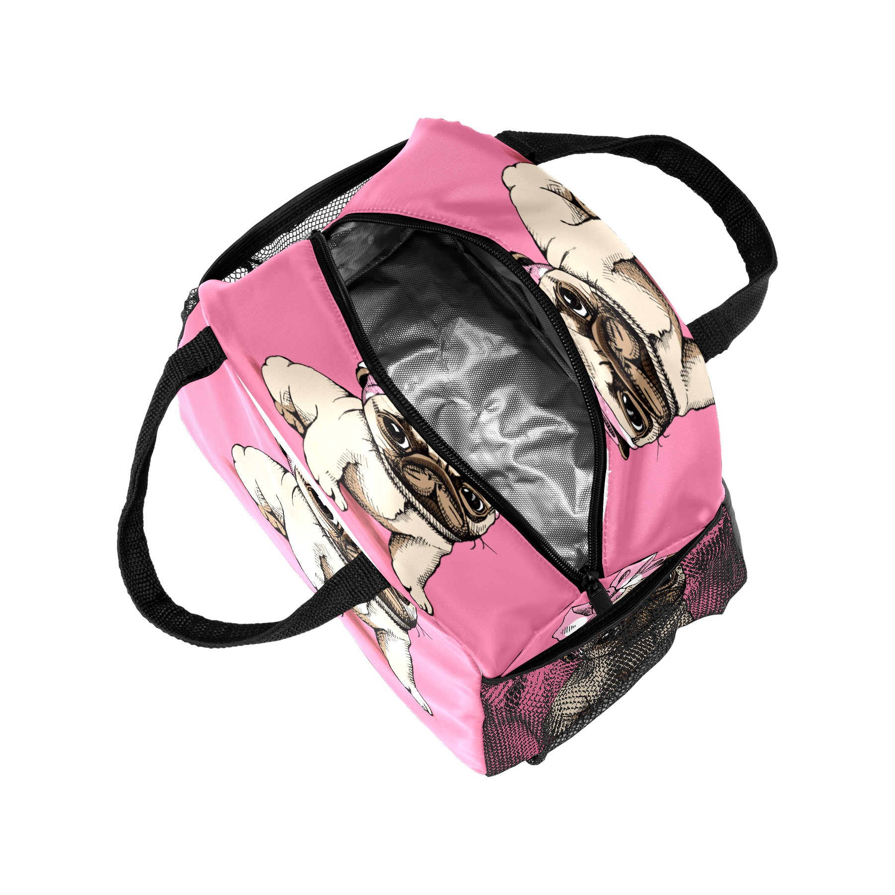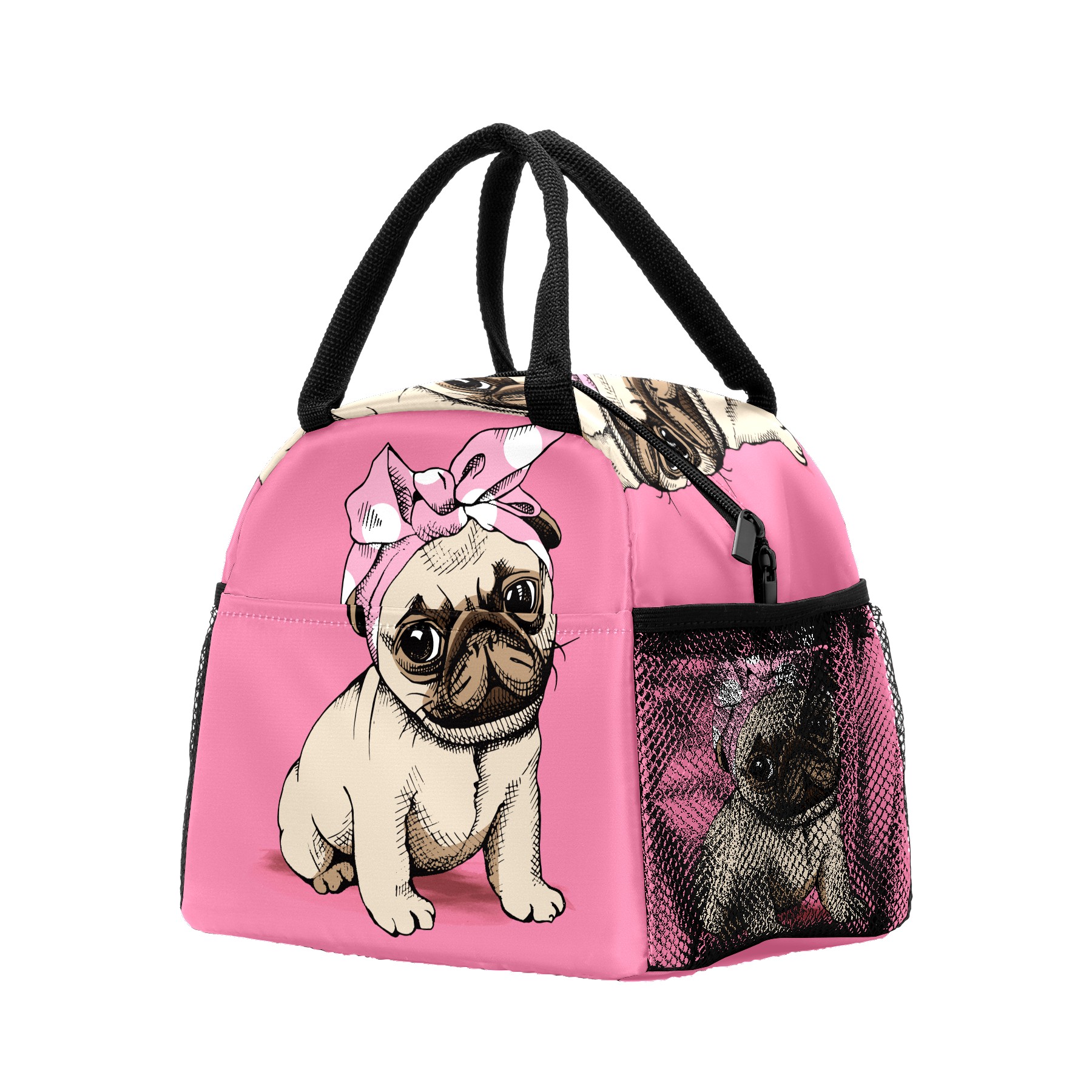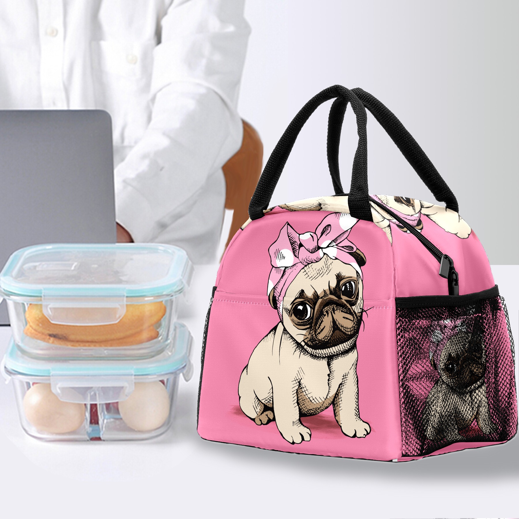 Lunch Bag for Women Men, Funy Pug Puppy Dog Makeup Insulated Reusable Lunch Box Thermal Cooler Tote Bag for Work Picnic Hiking Travel Beach