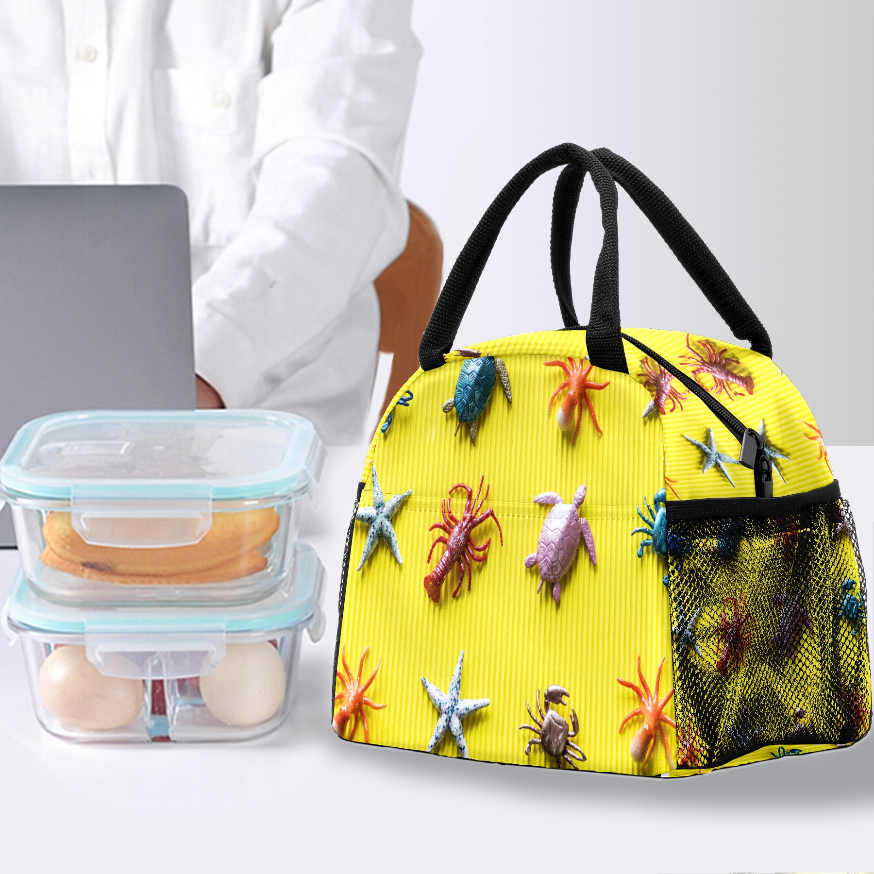 Lunch Bag for Women Men, Funny Starfish Tortoise Crab Ocean World Insulated Reusable Lunch Box Thermal Cooler Tote Bag for Work Picnic Hiking Travel Beach
