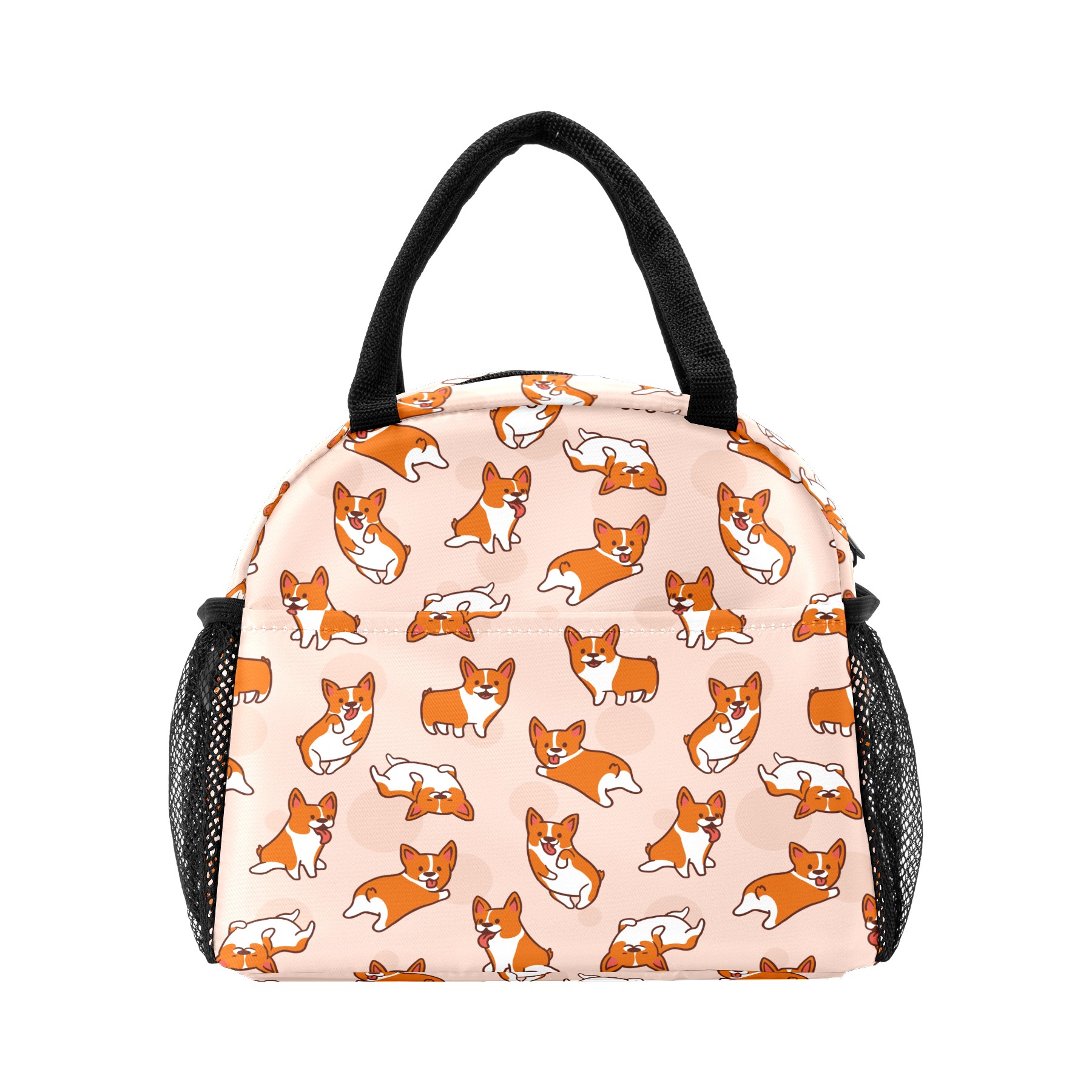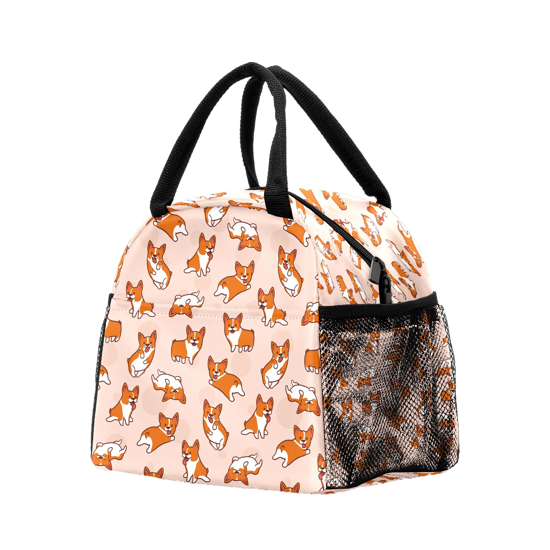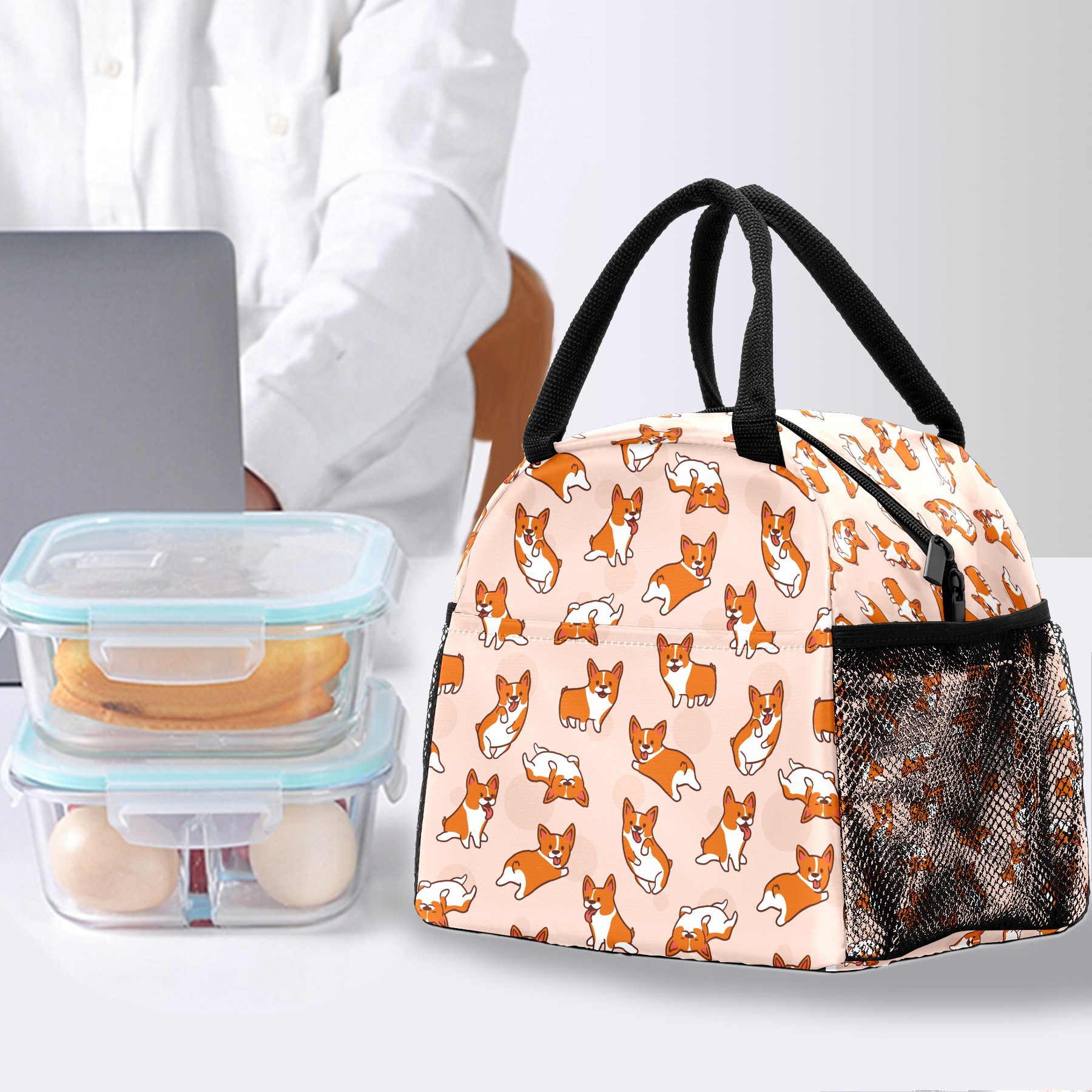 Lunch Bag for Women Men, Funny Corgi Dog Pattern Insulated Reusable Lunch Box Thermal Cooler Tote Bag for Work Picnic Hiking Travel Beach