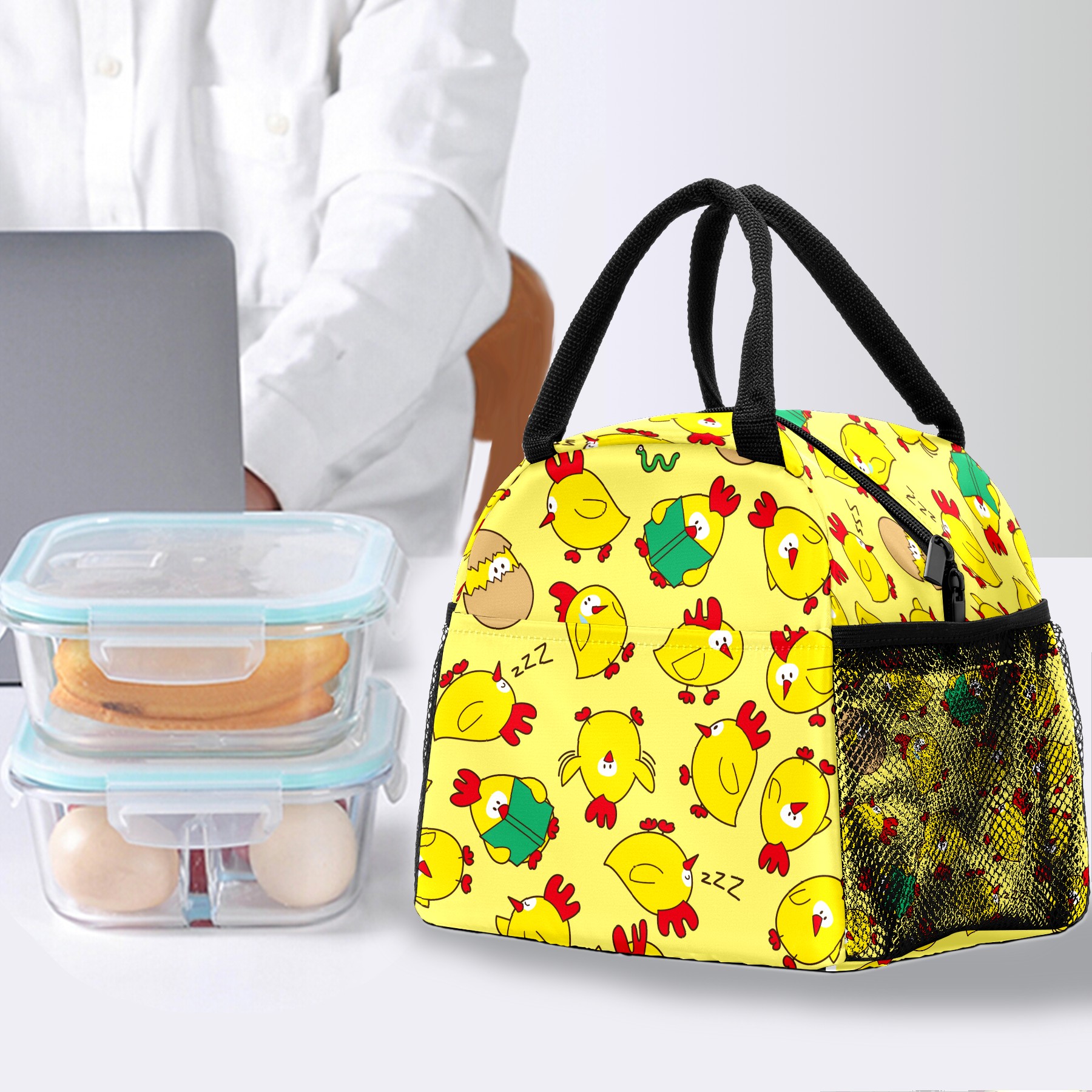 Lunch Bag for Women Men, Funny Chicken Pattern Insulated Reusable Lunch Box Thermal Cooler Tote Bag for Work Picnic Hiking Travel Beach