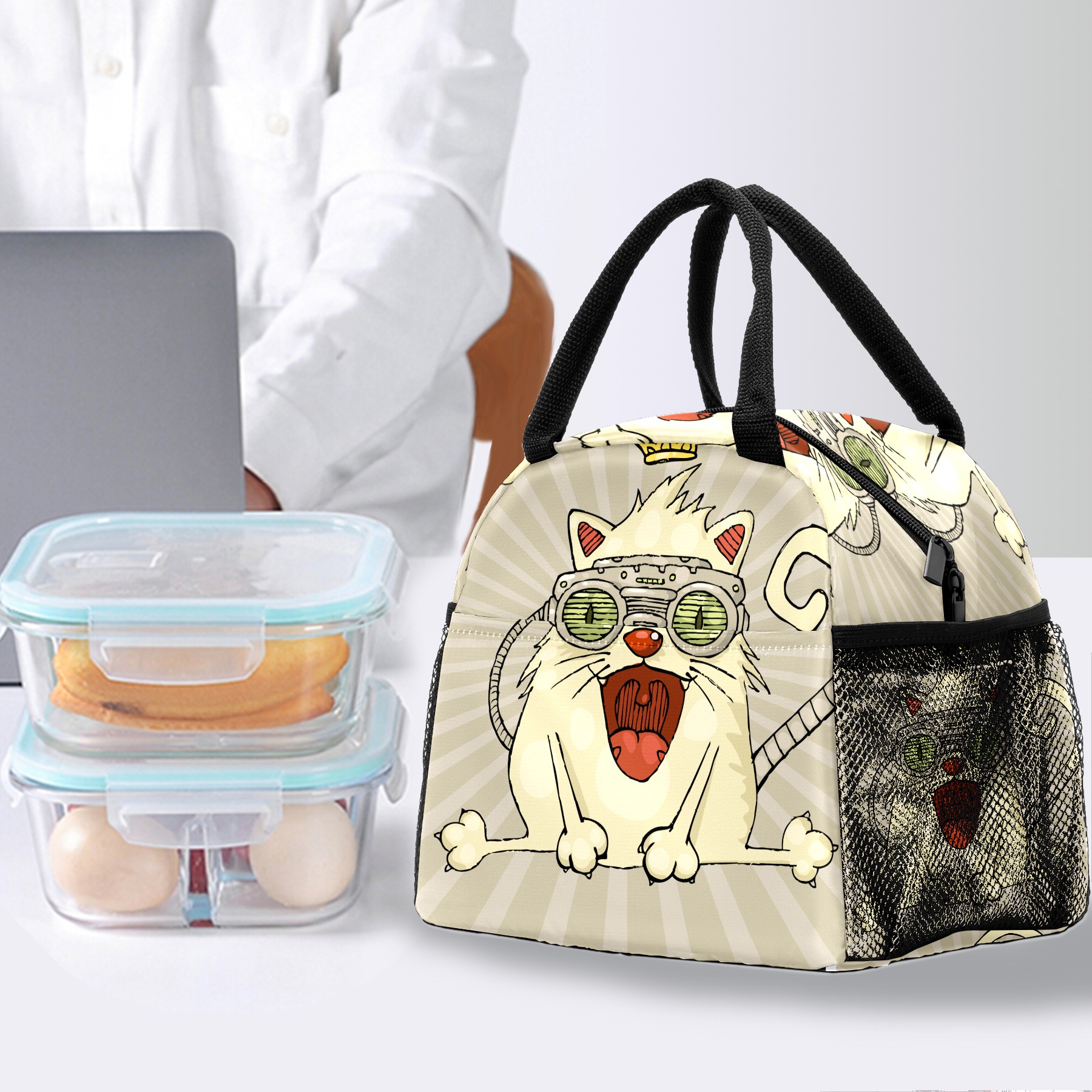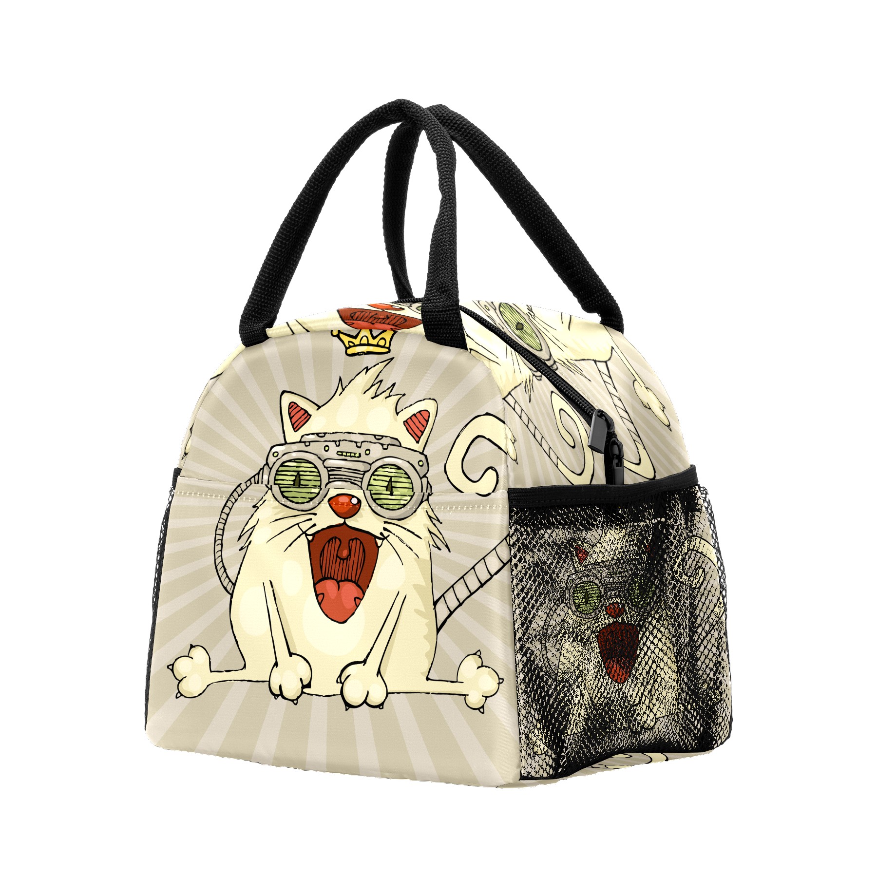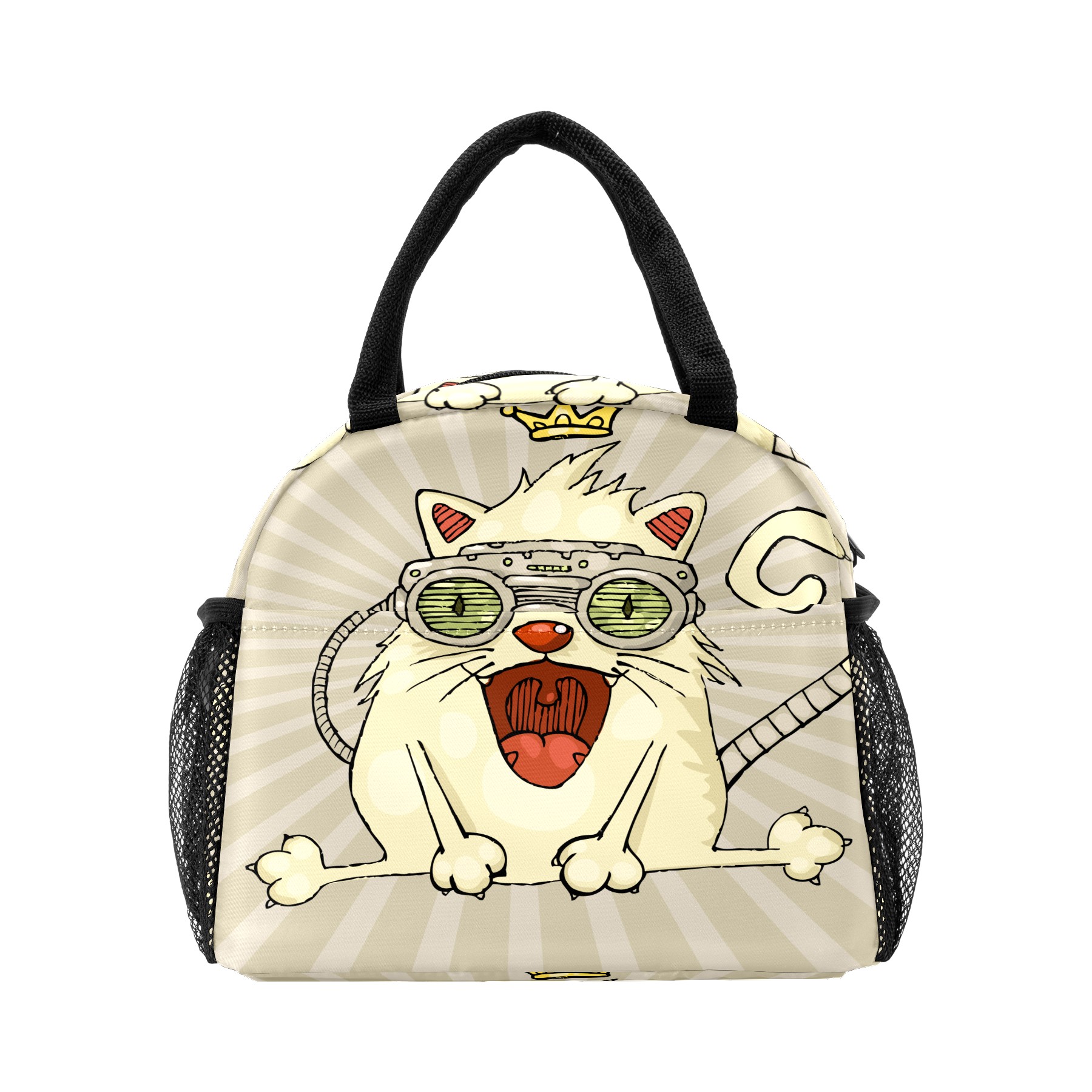 Lunch Bag for Women Men, Funny Cats With Crown Insulated Reusable Lunch Box Thermal Cooler Tote Bag for Work Picnic Hiking Travel Beach