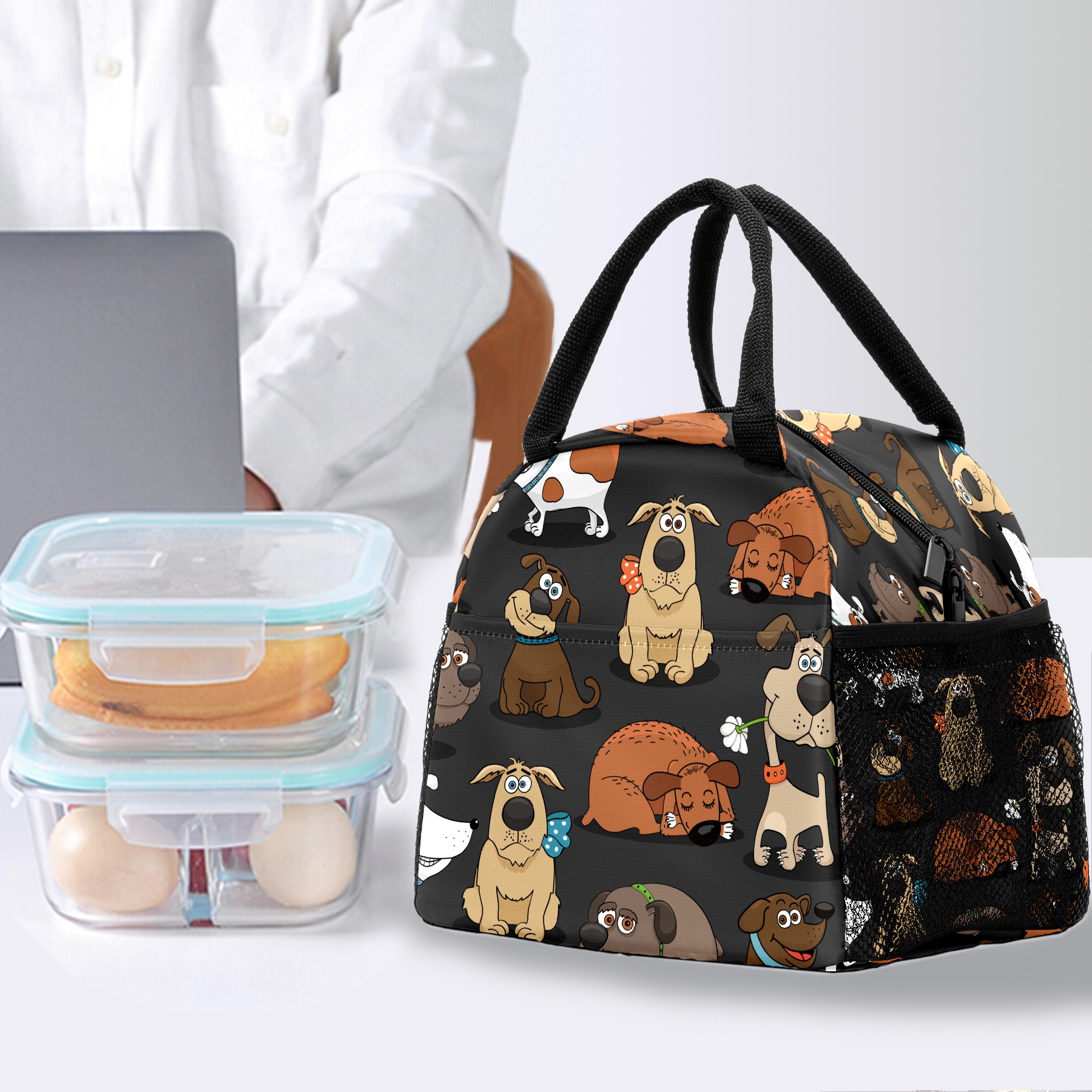 Lunch Bag for Women Men, Funny Cartoon Animal Sleeping Dog Insulated Reusable Lunch Box Thermal Cooler Tote Bag for Work Picnic Hiking Travel Beach