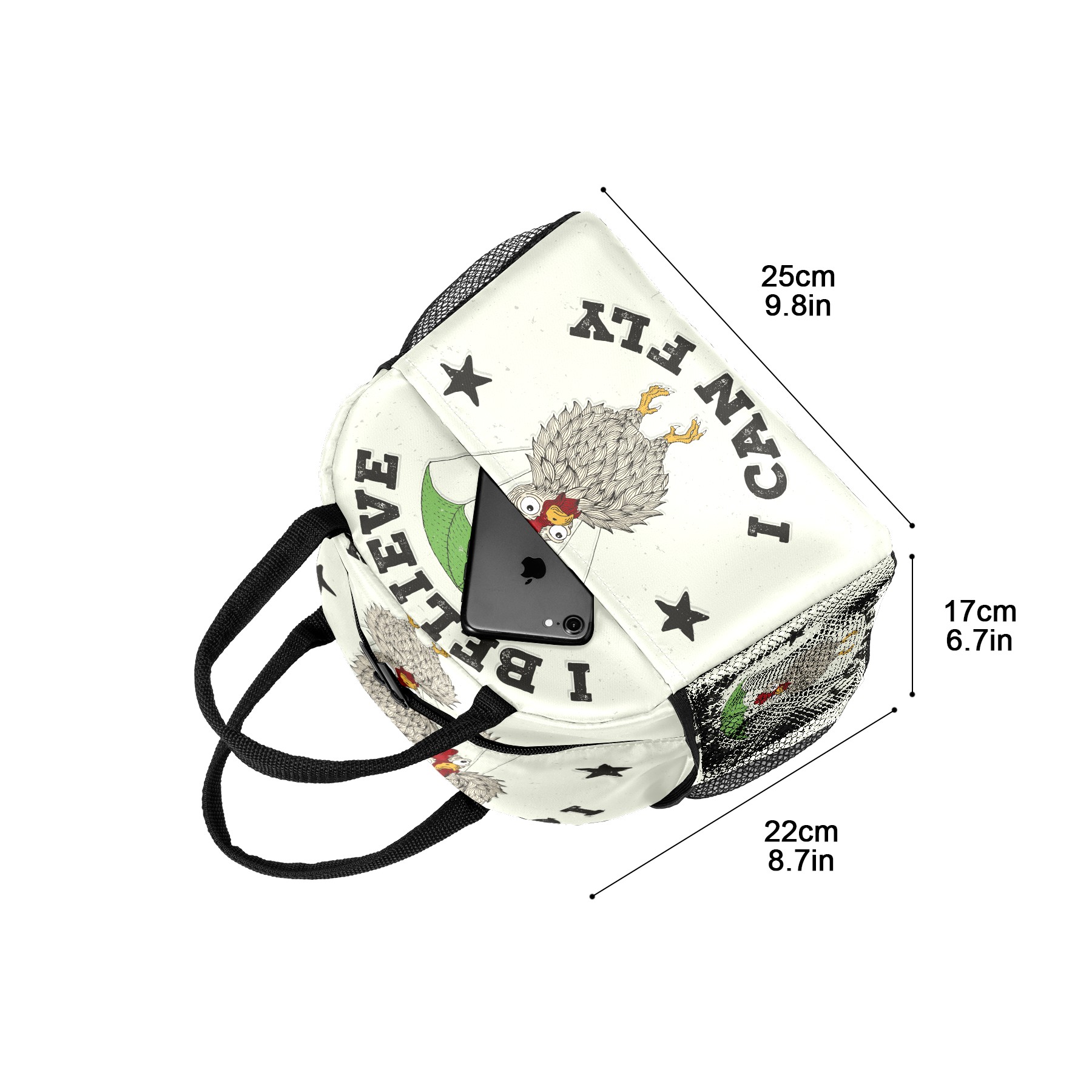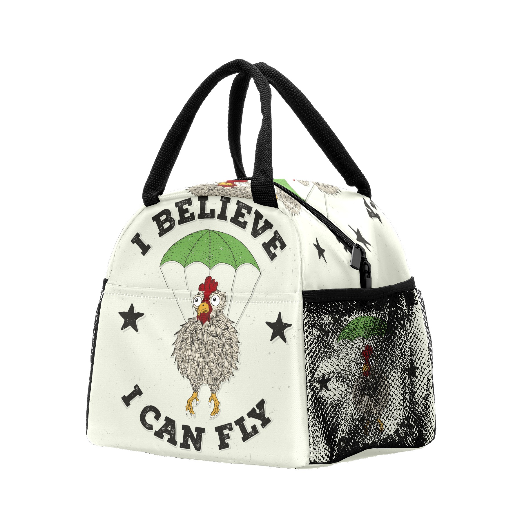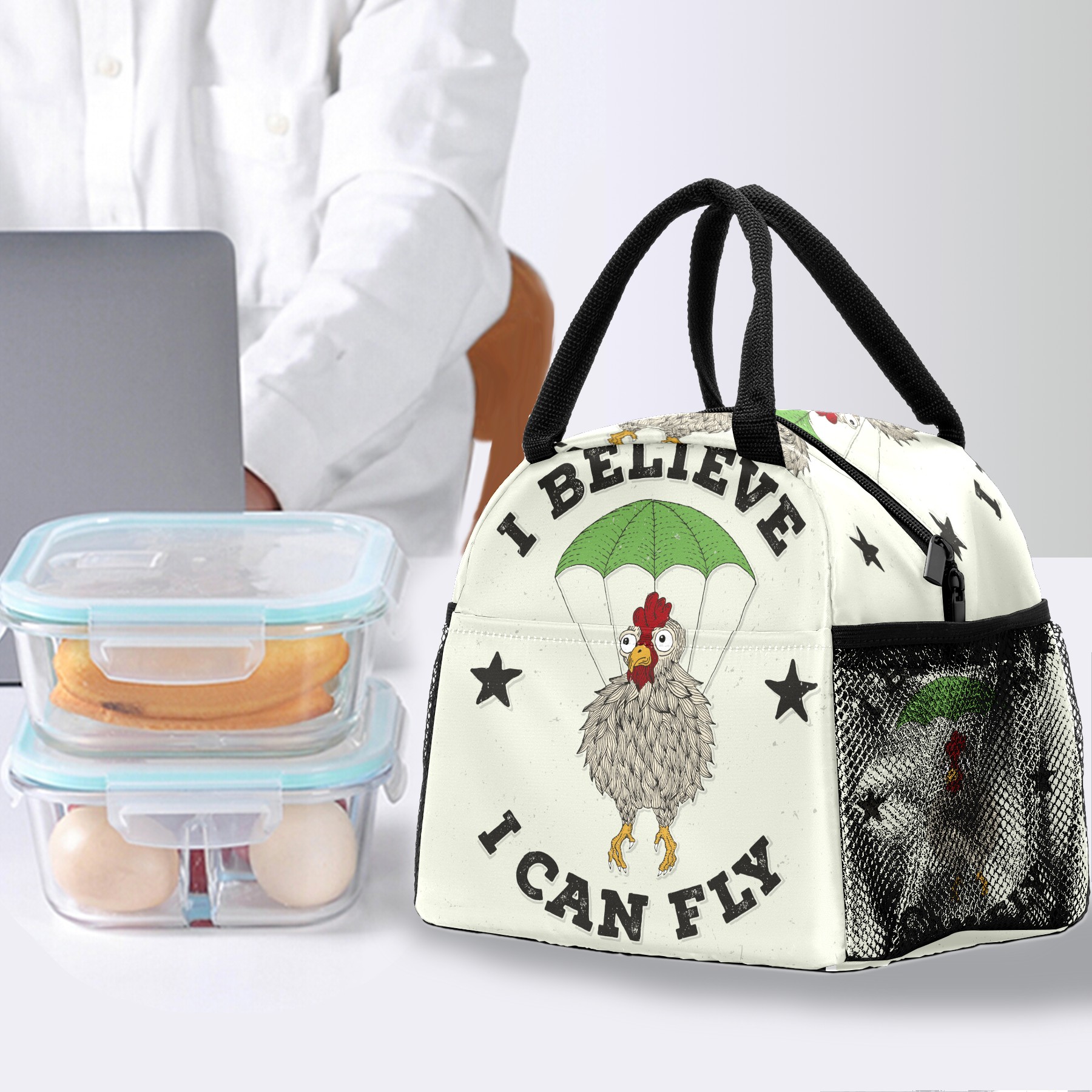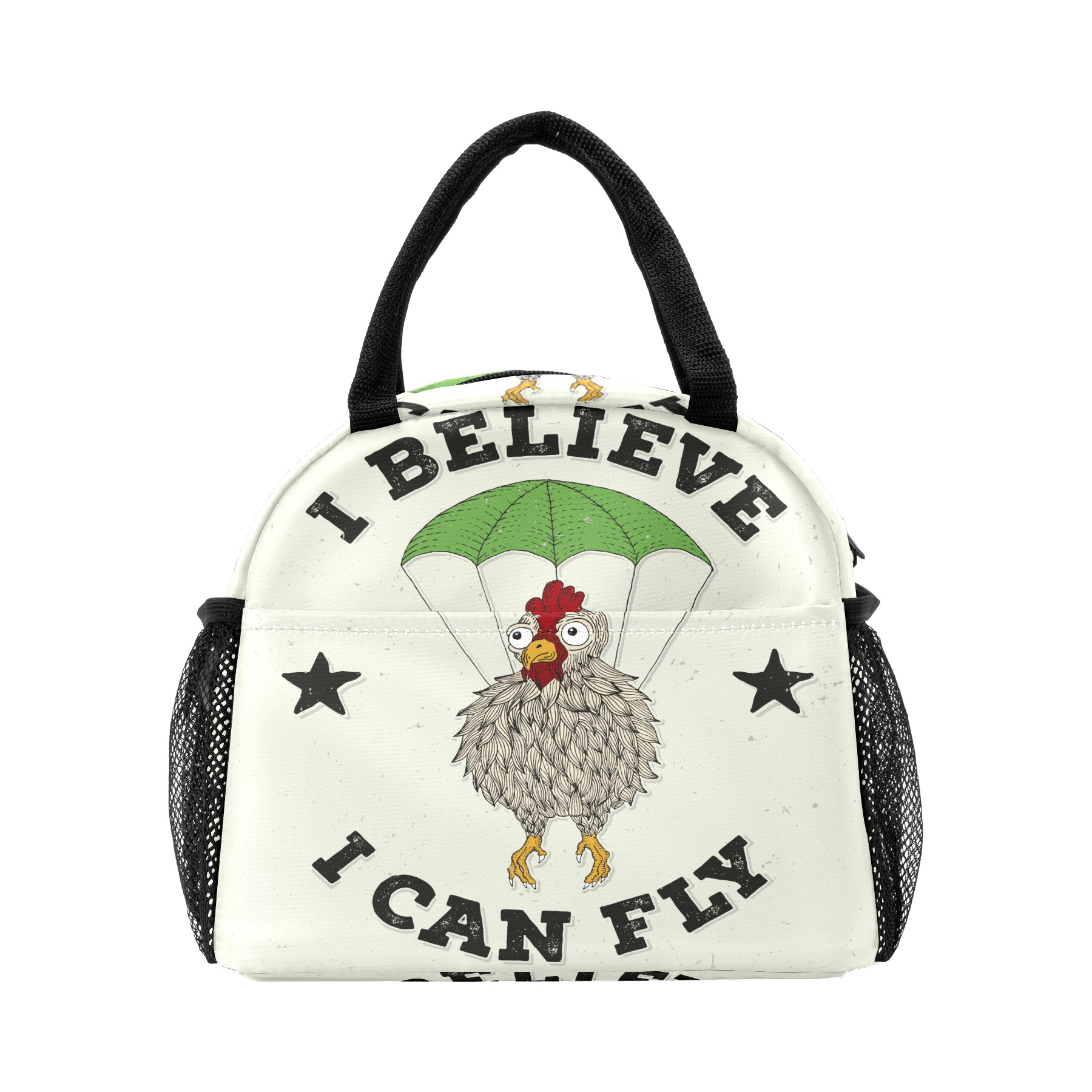Lunch Bag for Women Men, Funny Chicken I Belive I Can Fly Insulated Reusable Lunch Box Thermal Cooler Tote Bag for Work Picnic Hiking Travel Beach