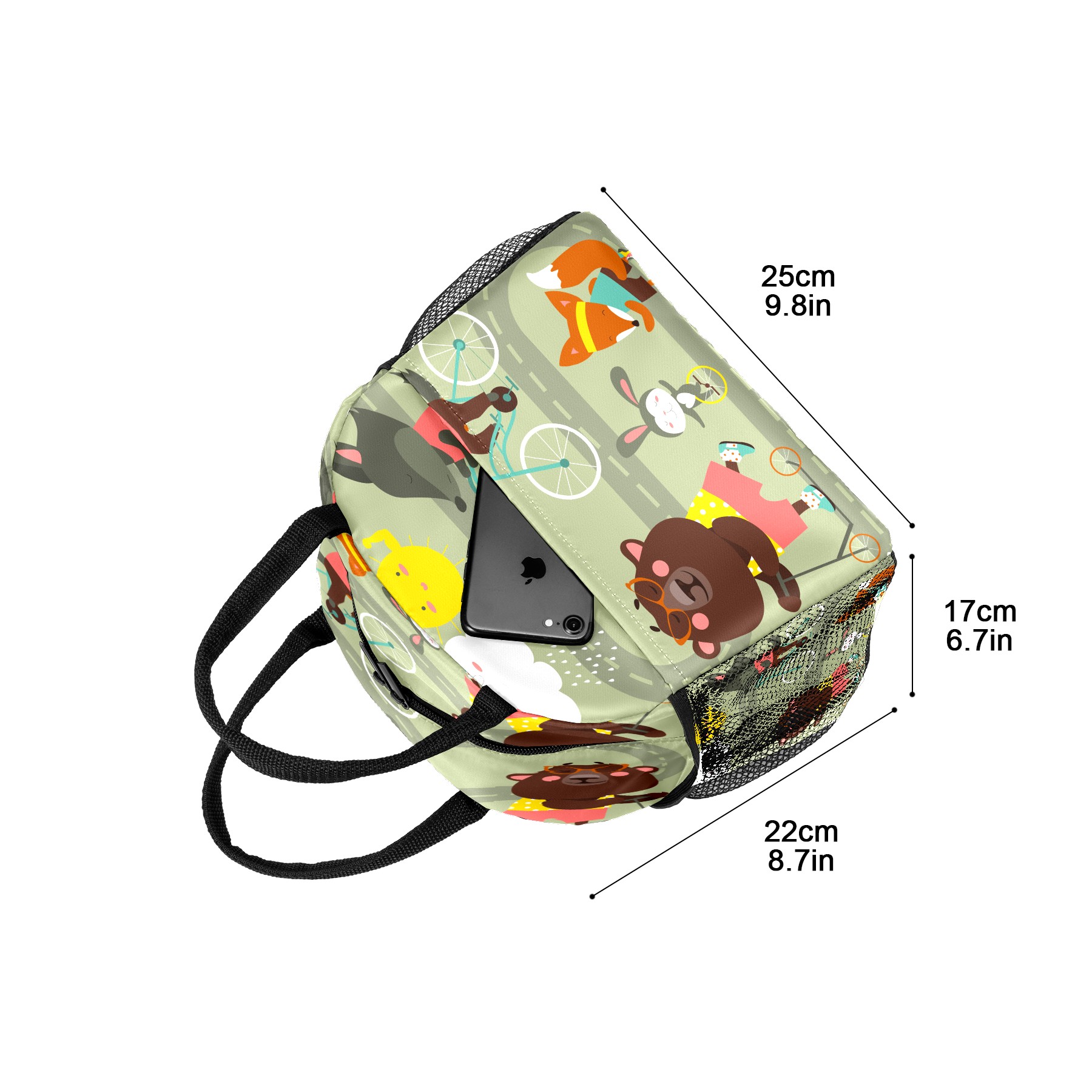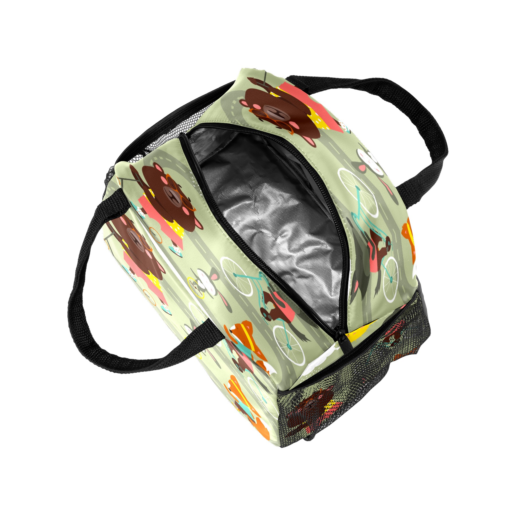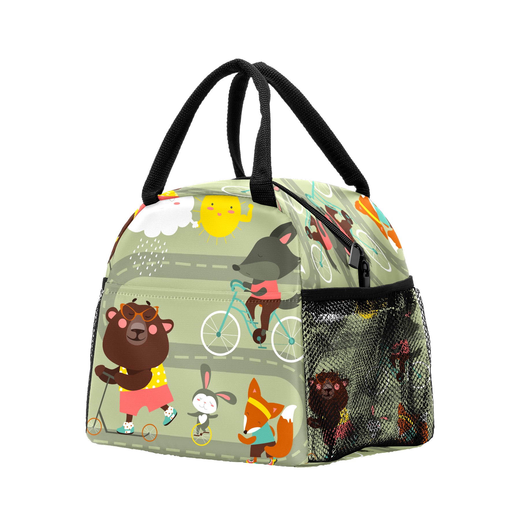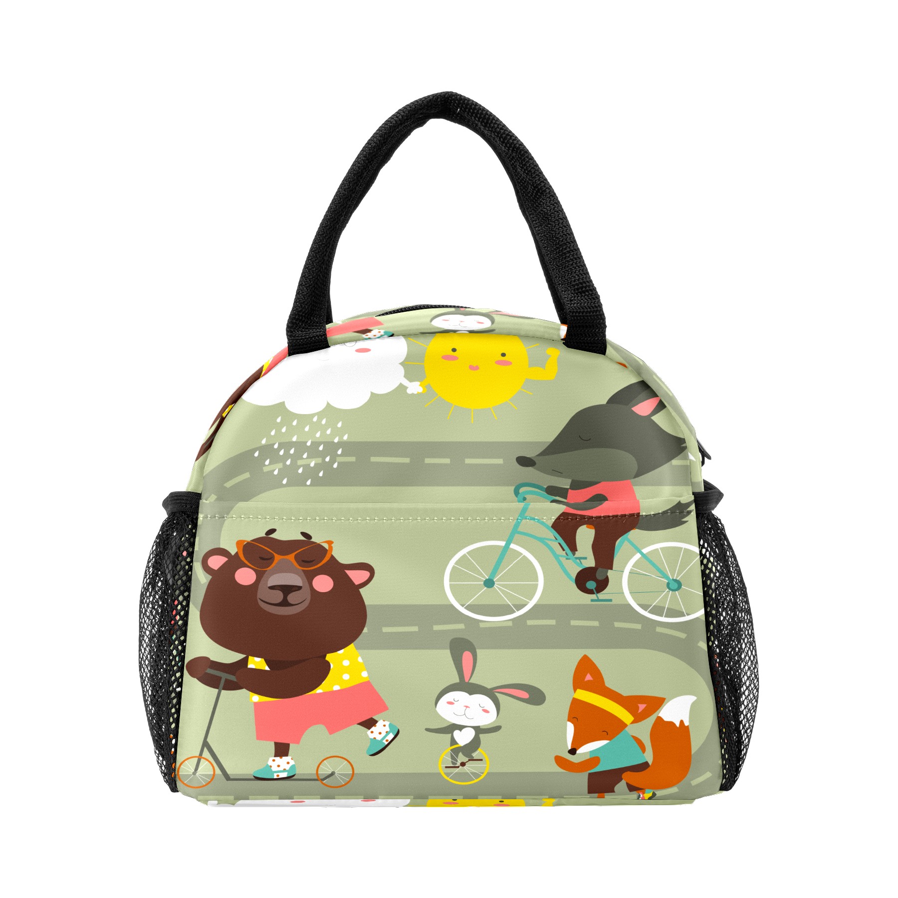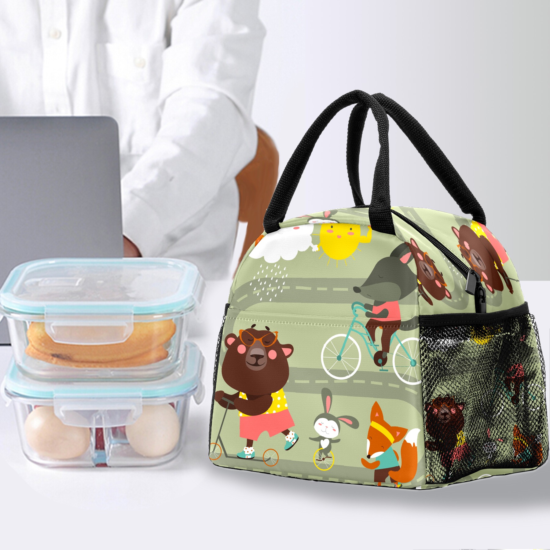 Lunch Bag for Women Men, Funny Cartoon Fox Bear Rabbit With Bicycle Insulated Reusable Lunch Box Thermal Cooler Tote Bag for Work Picnic Hiking Travel Beach