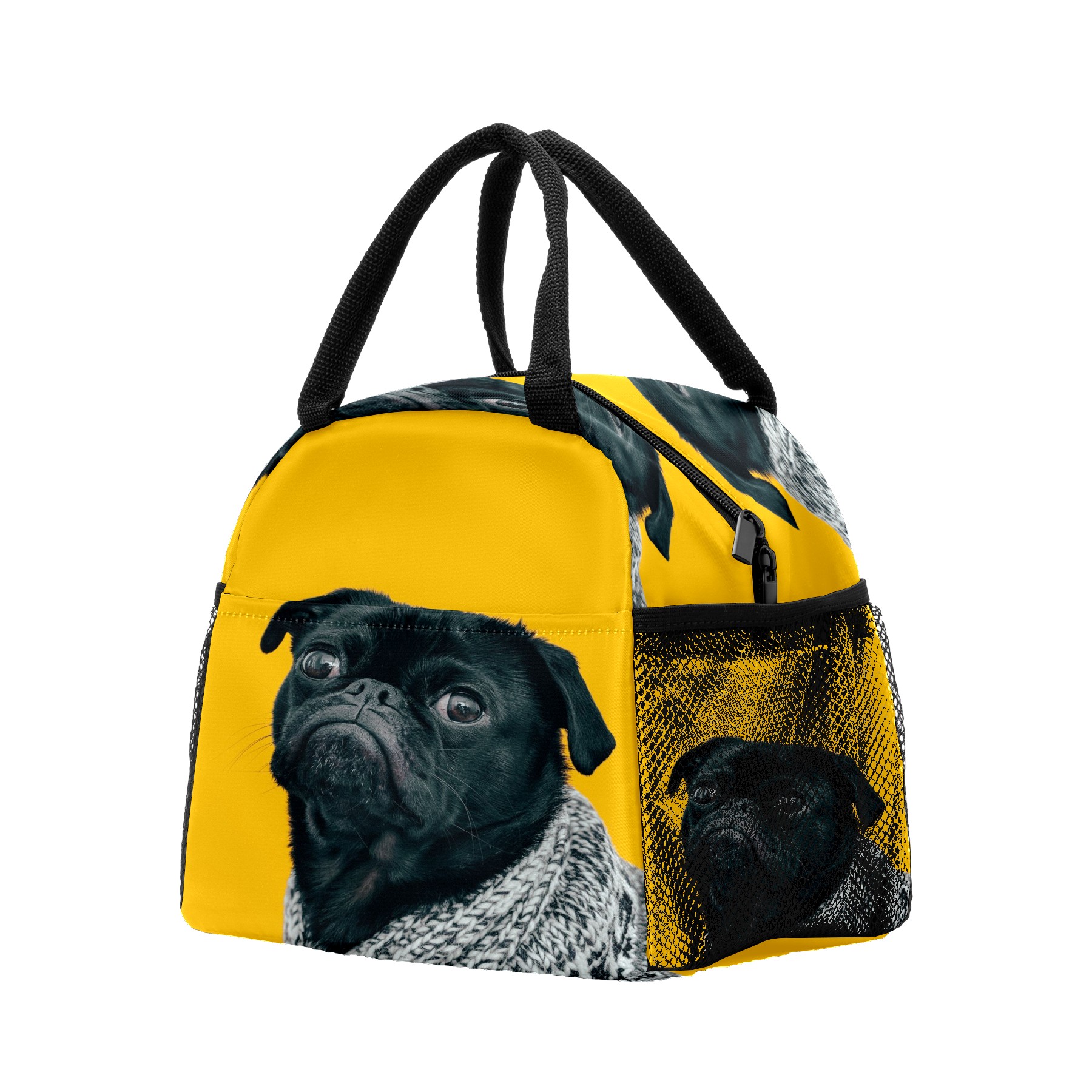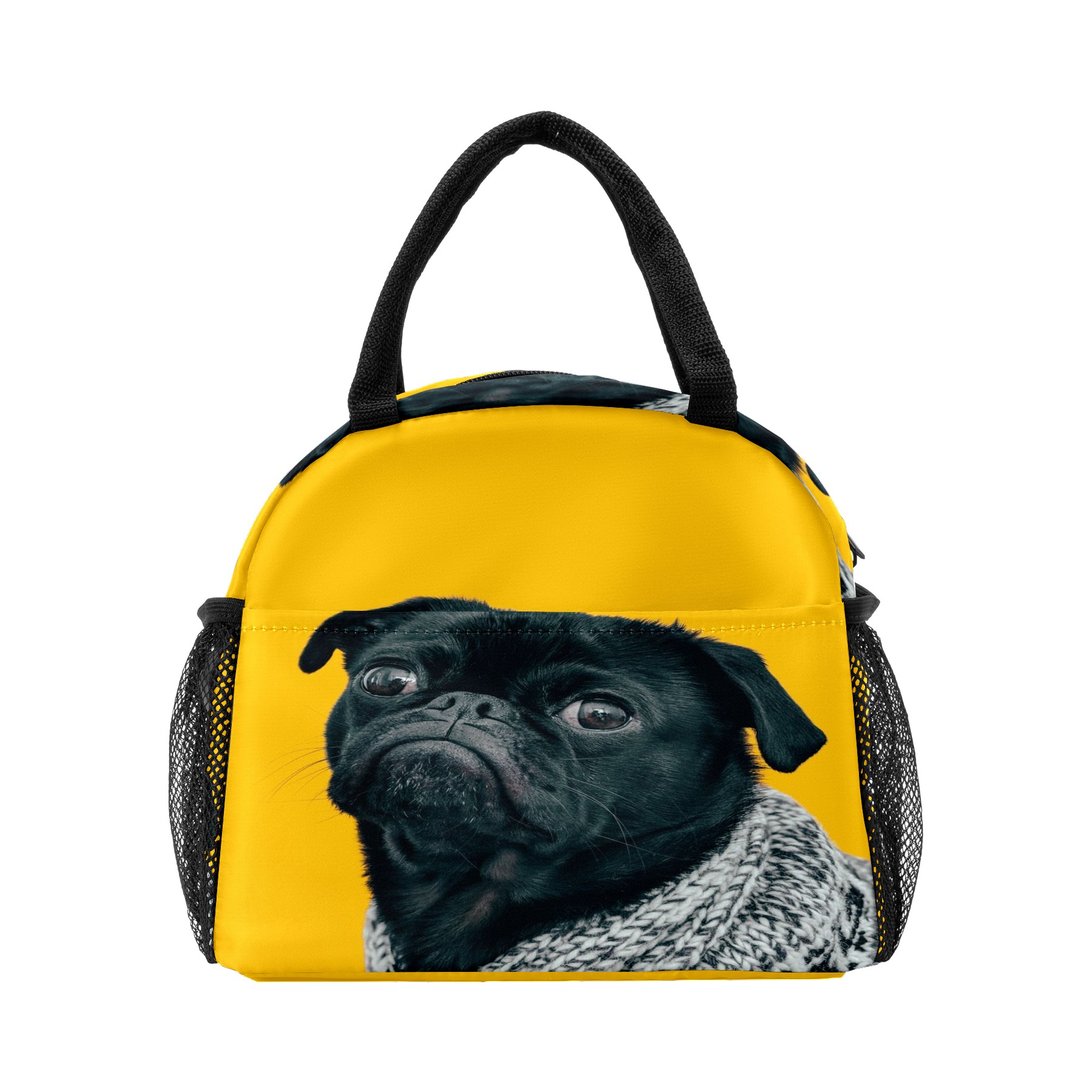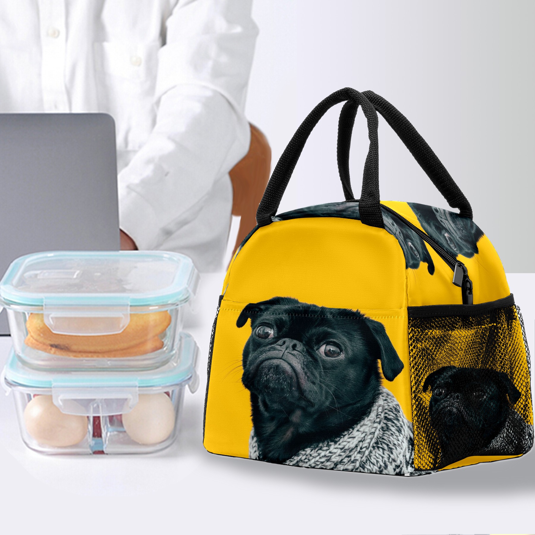 Lunch Bag for Women Men, Funny Black Pug Lazy Pet Insulated Reusable Lunch Box Thermal Cooler Tote Bag for Work Picnic Hiking Travel Beach