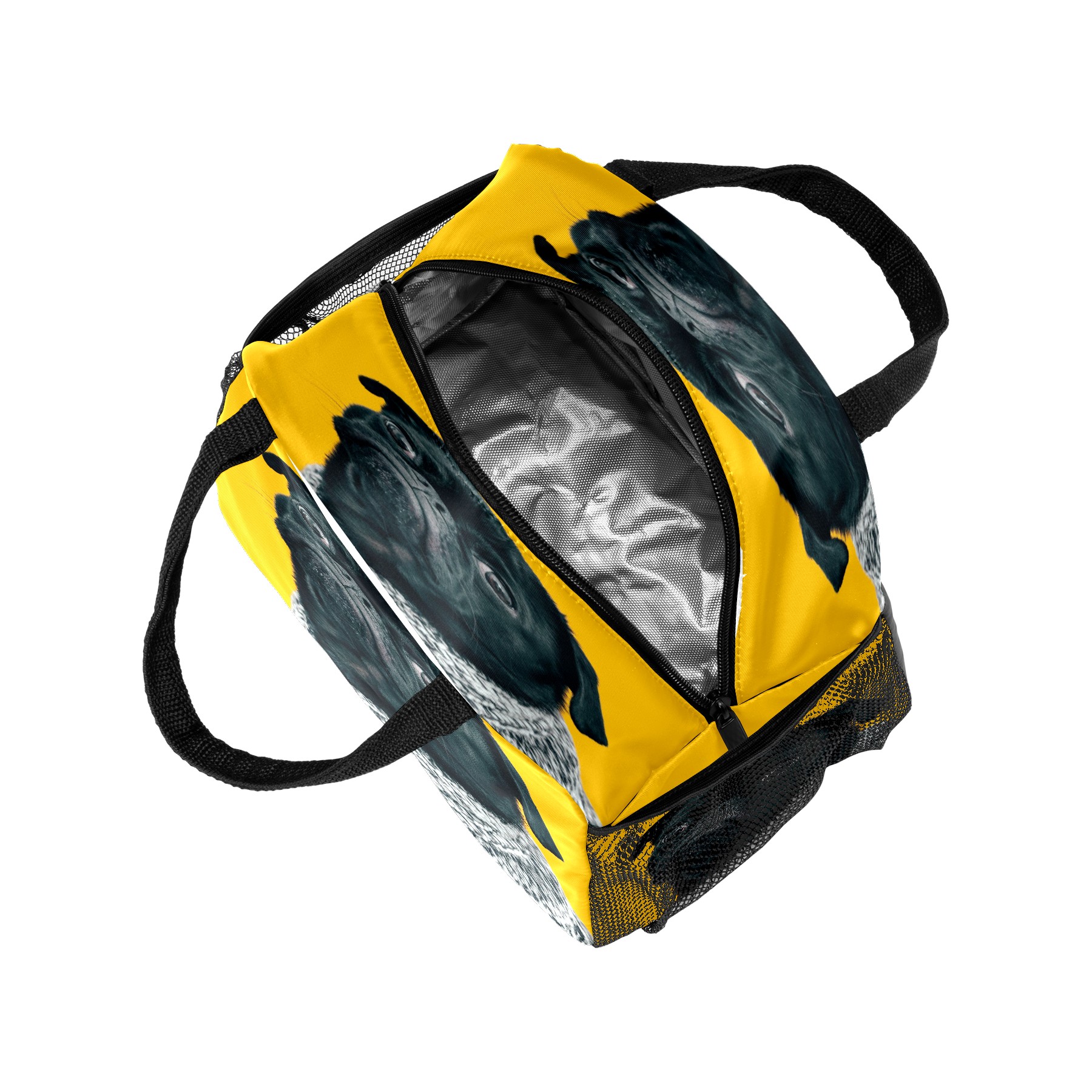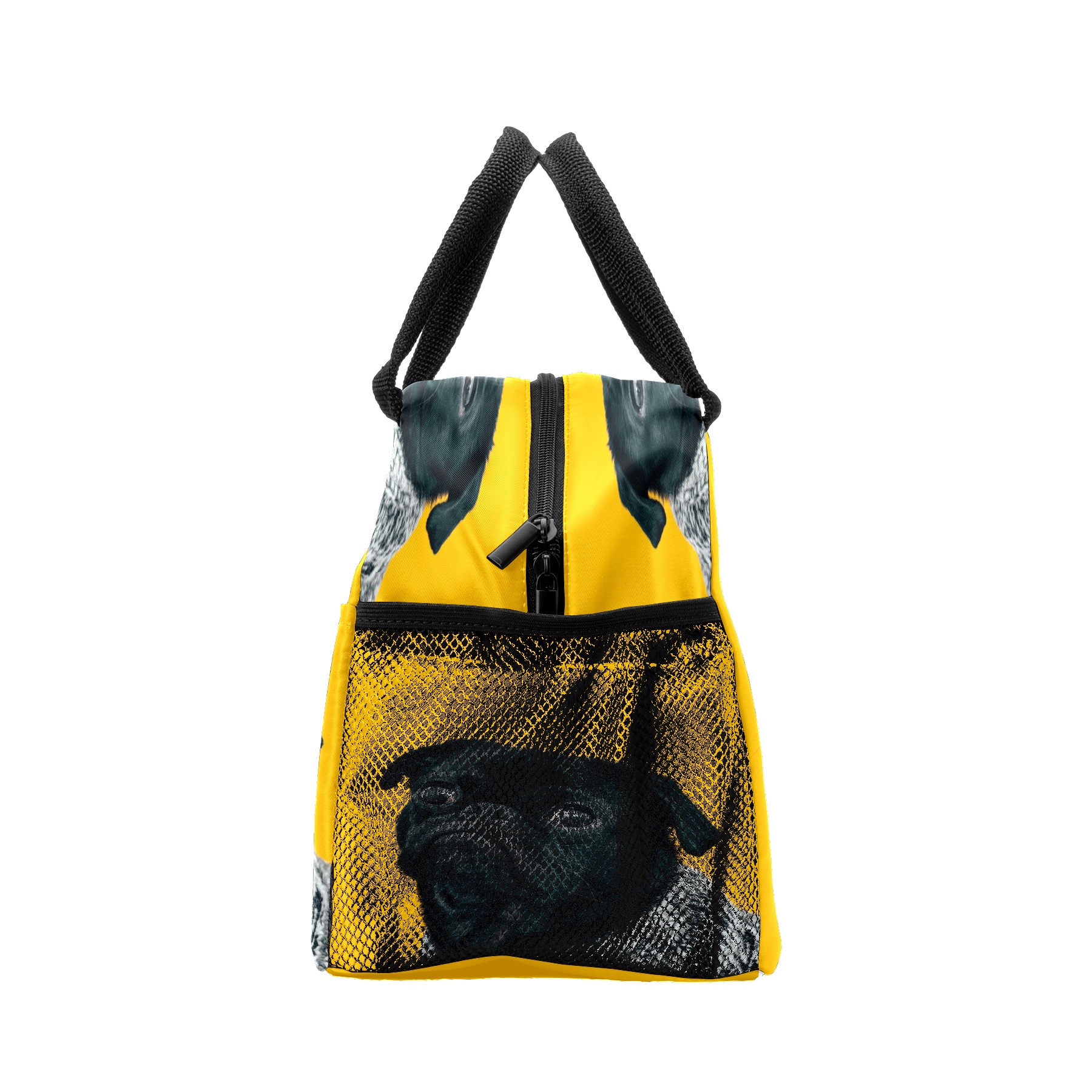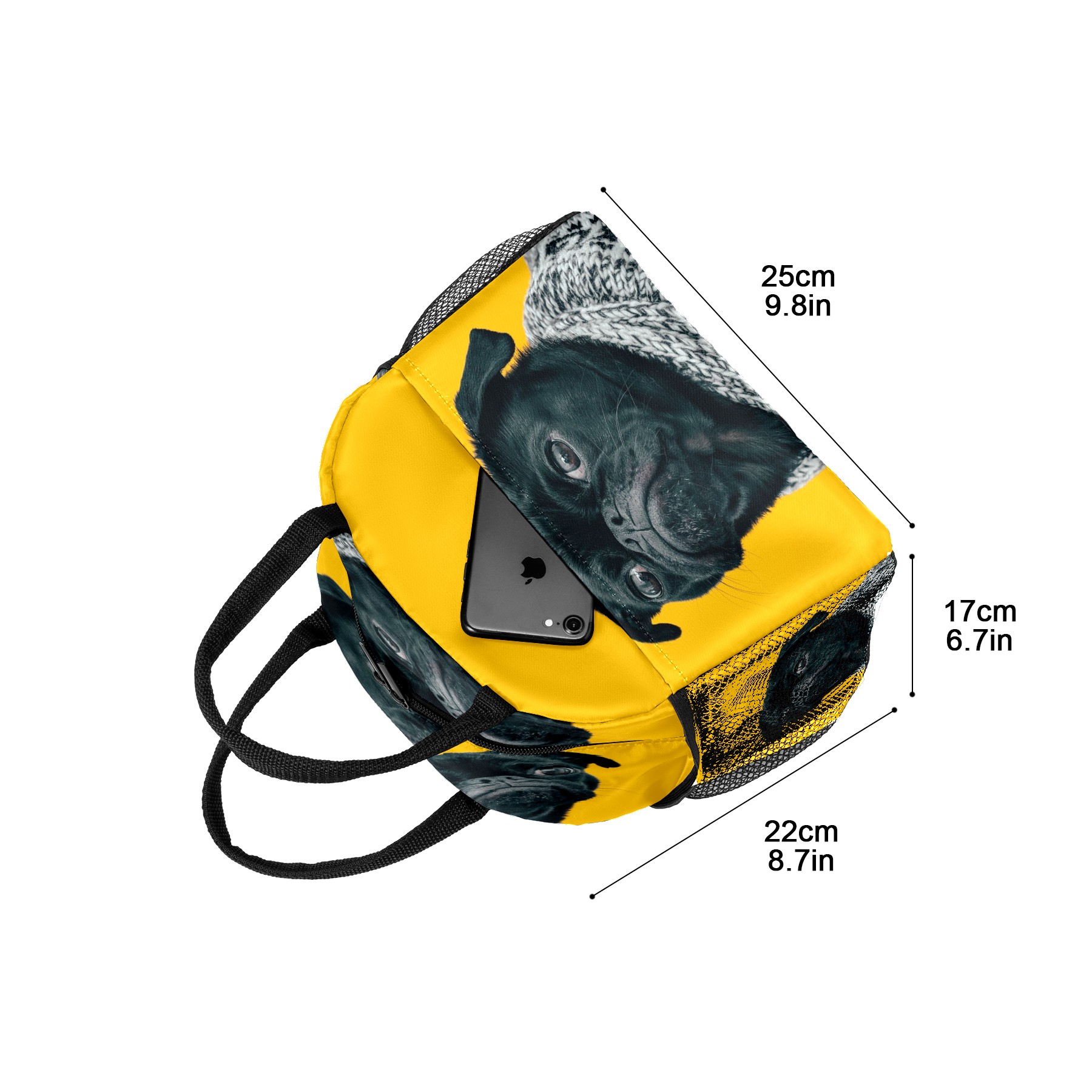 Lunch Bag for Women Men, Funny Black Pug Lazy Pet Insulated Reusable Lunch Box Thermal Cooler Tote Bag for Work Picnic Hiking Travel Beach