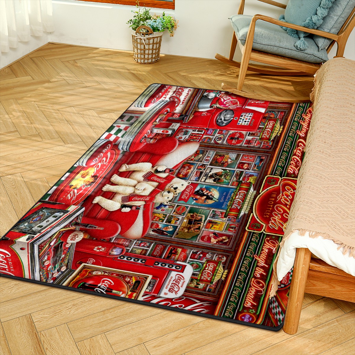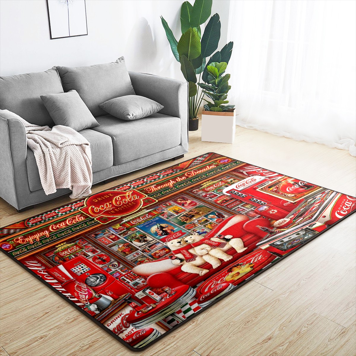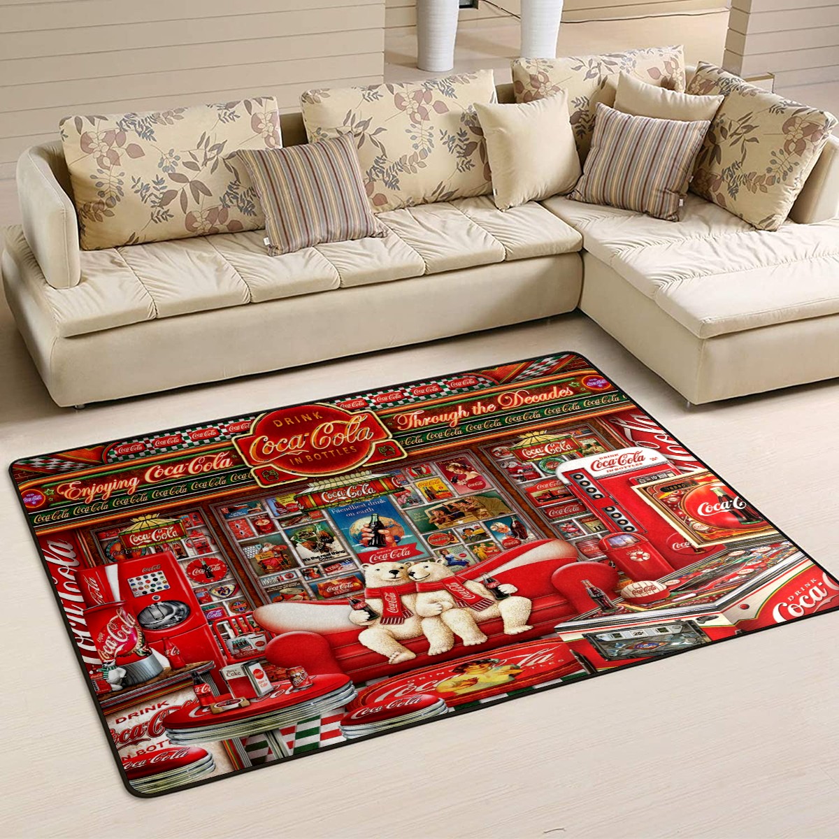 Modern Area Rug Coke Bear Coca Cola Large Rug Floor Carpet Mat for Living Room Bedroom 60x39in