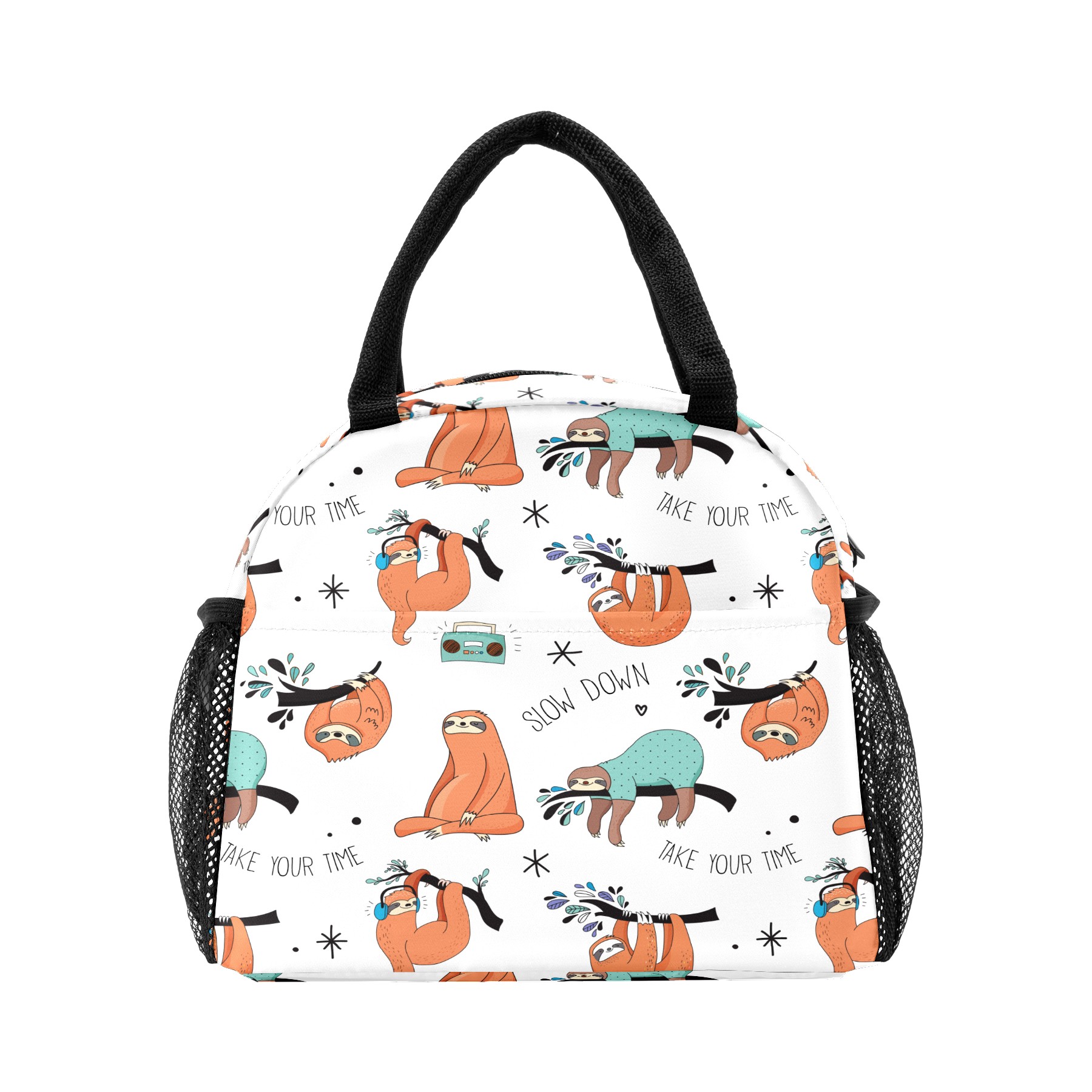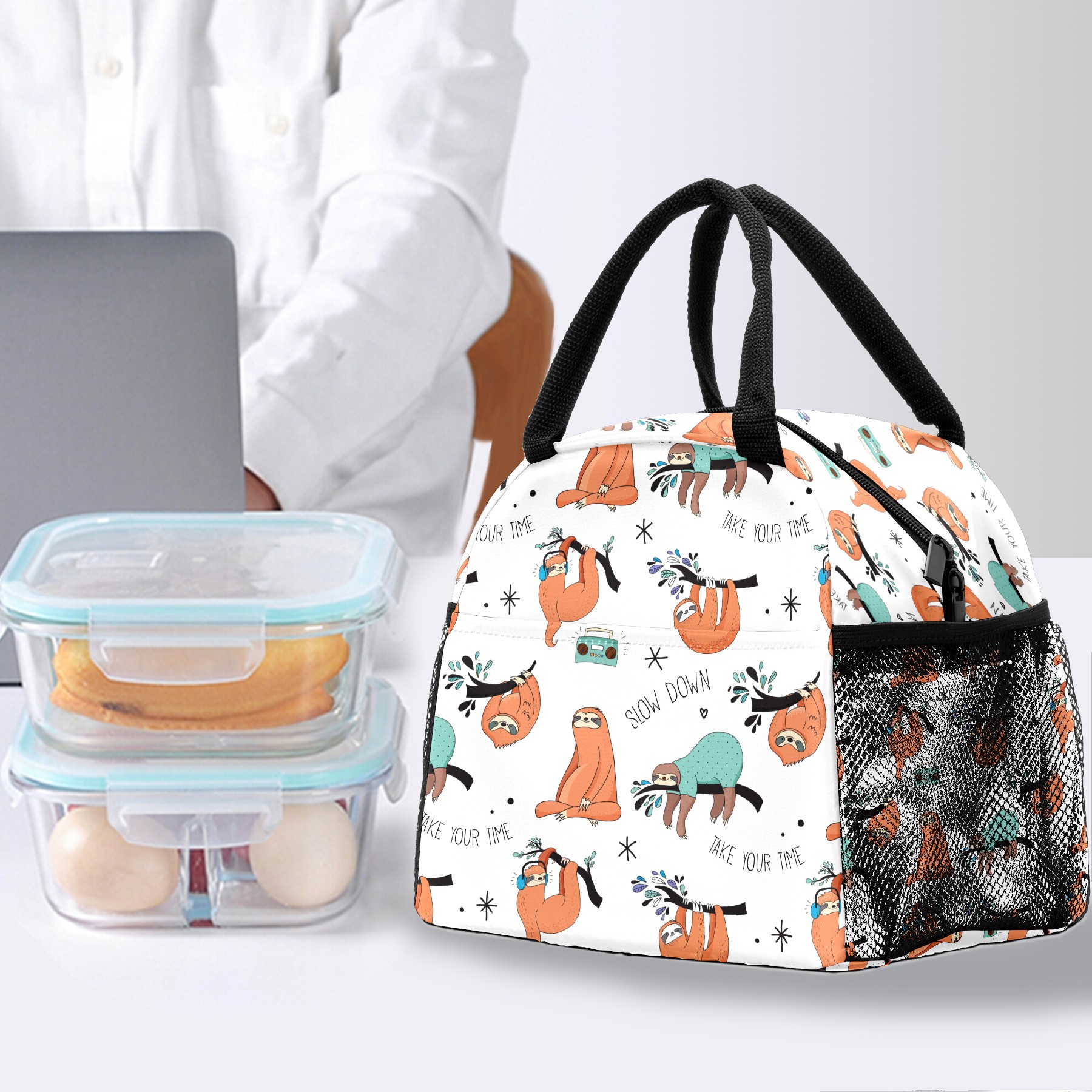 Lunch Bag for Women Men, Cute Sloth Slowe Down Take Your Time Insulated Reusable Lunch Box Thermal Cooler Tote Bag for Work Picnic Hiking Travel Beach