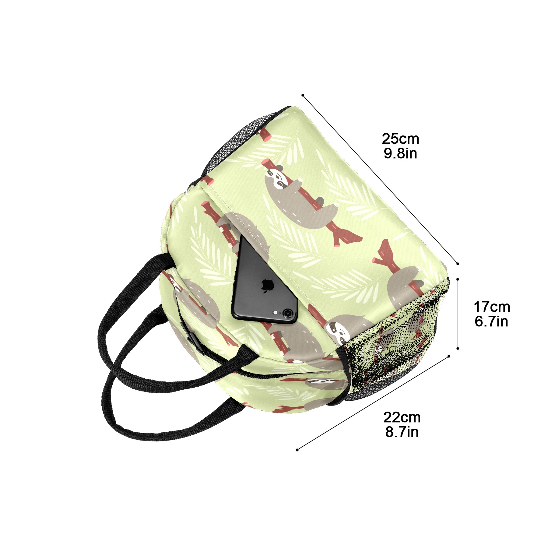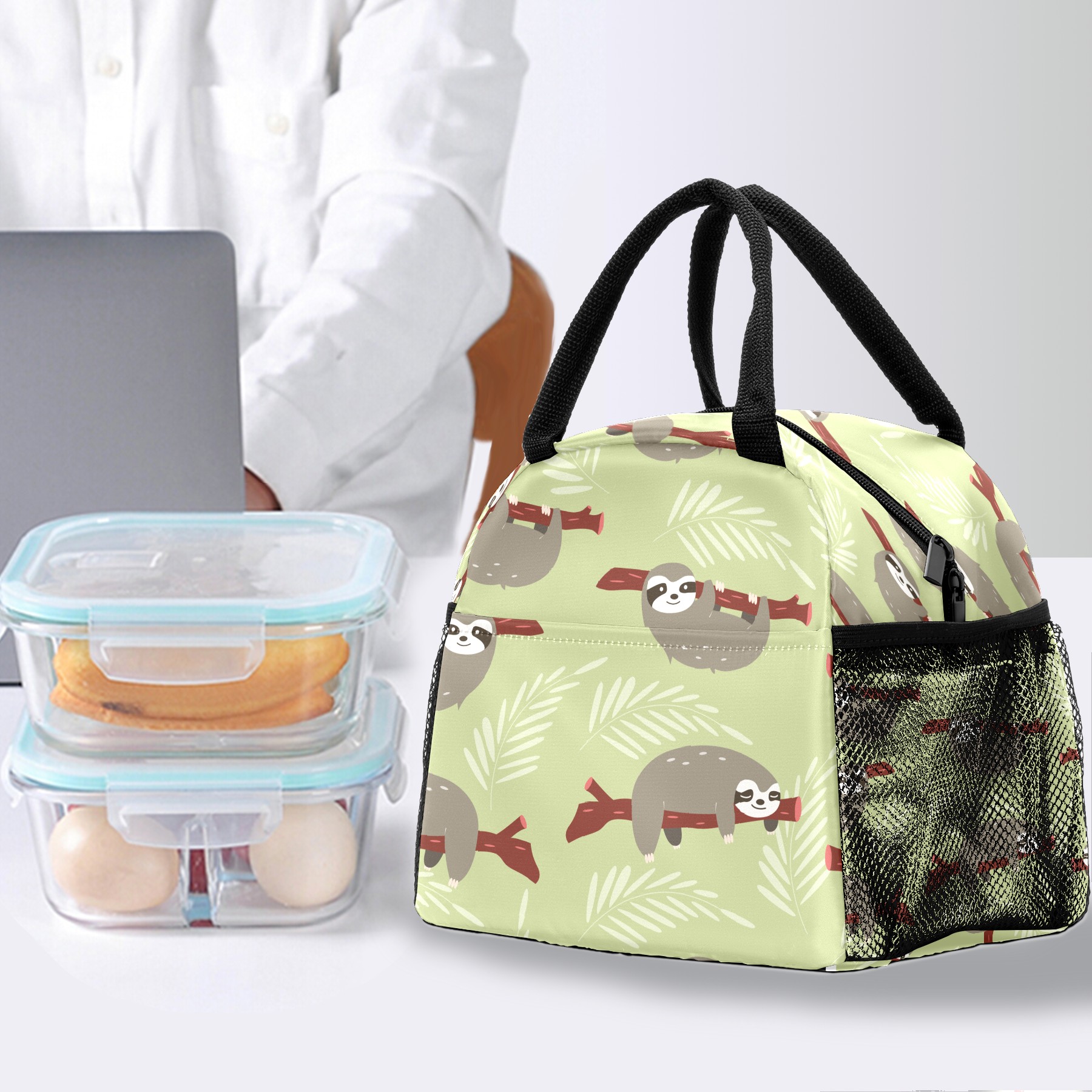 Lunch Bag for Women Men, Cute Sloth With Sleeves Print Insulated Reusable Lunch Box Thermal Cooler Tote Bag for Work Picnic Hiking Travel Beach