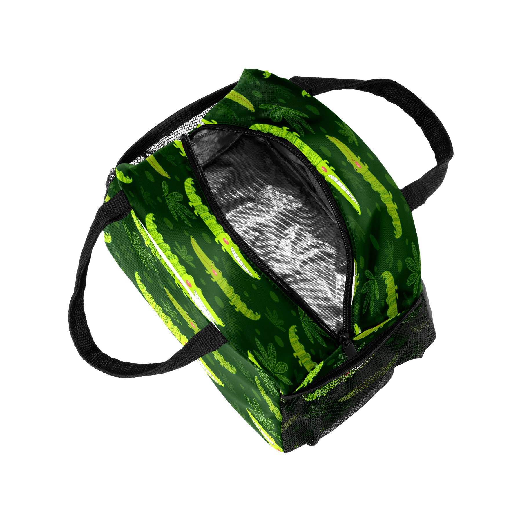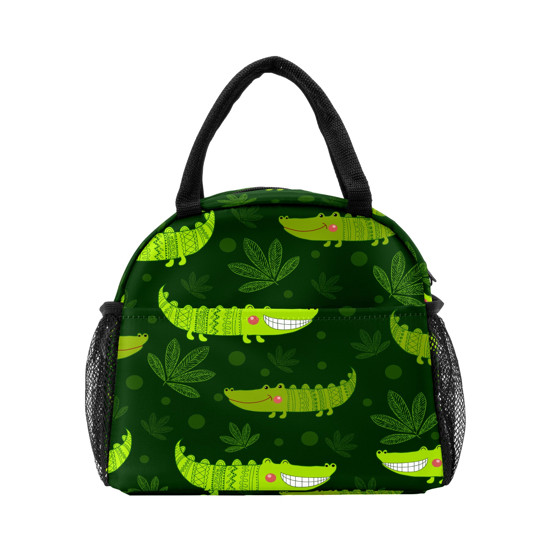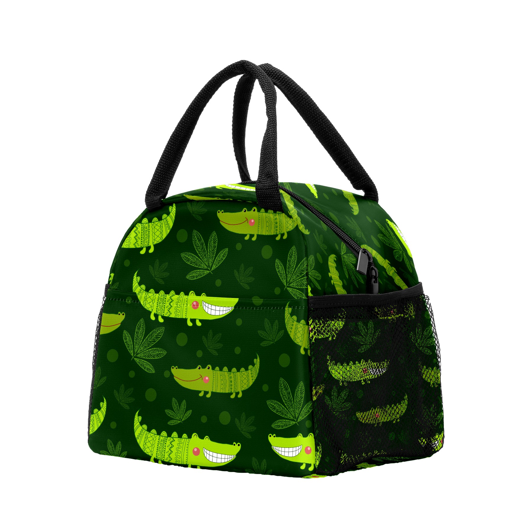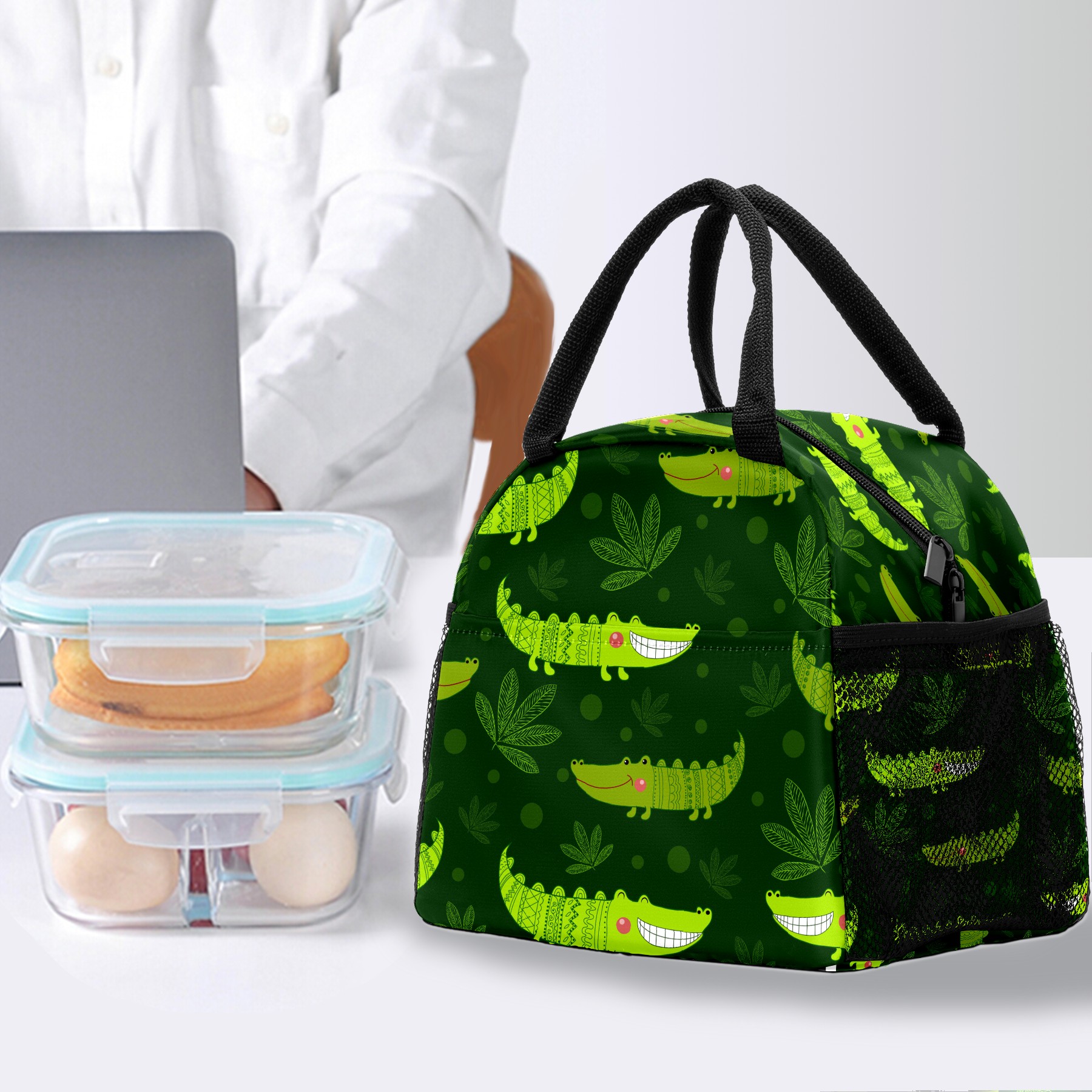 Lunch Bag for Women Men, Cute Green Gator Crocodile Pattern Insulated Reusable Lunch Box Thermal Cooler Tote Bag for Work Picnic Hiking Travel Beach