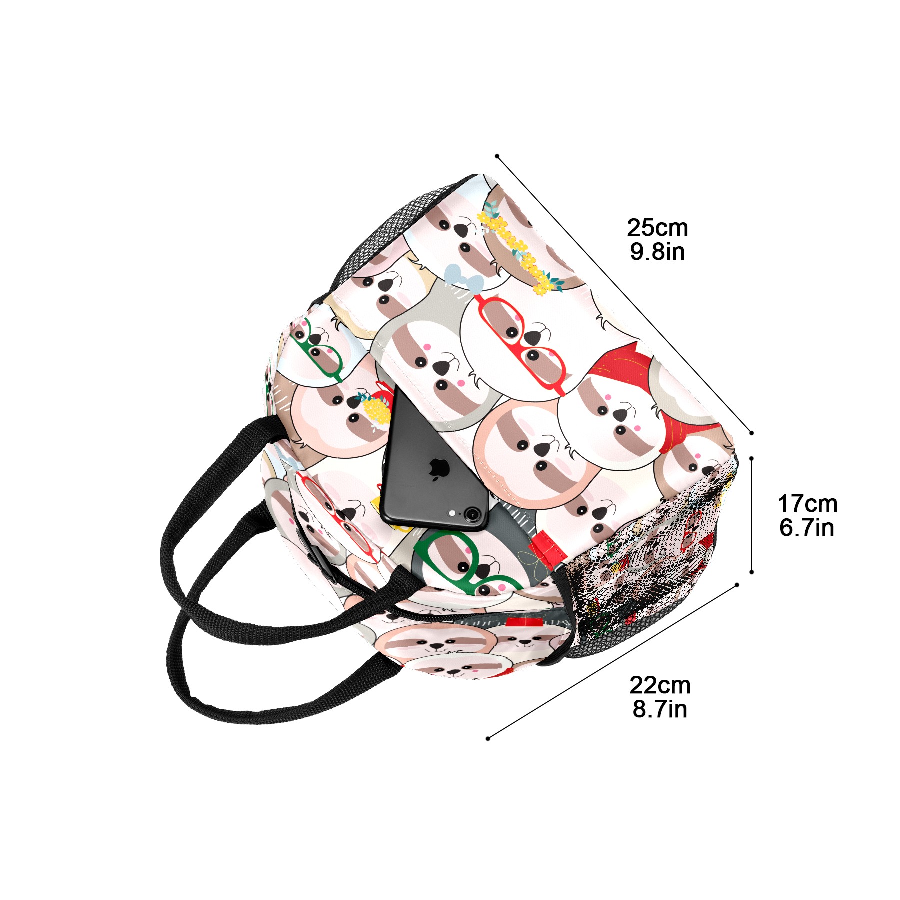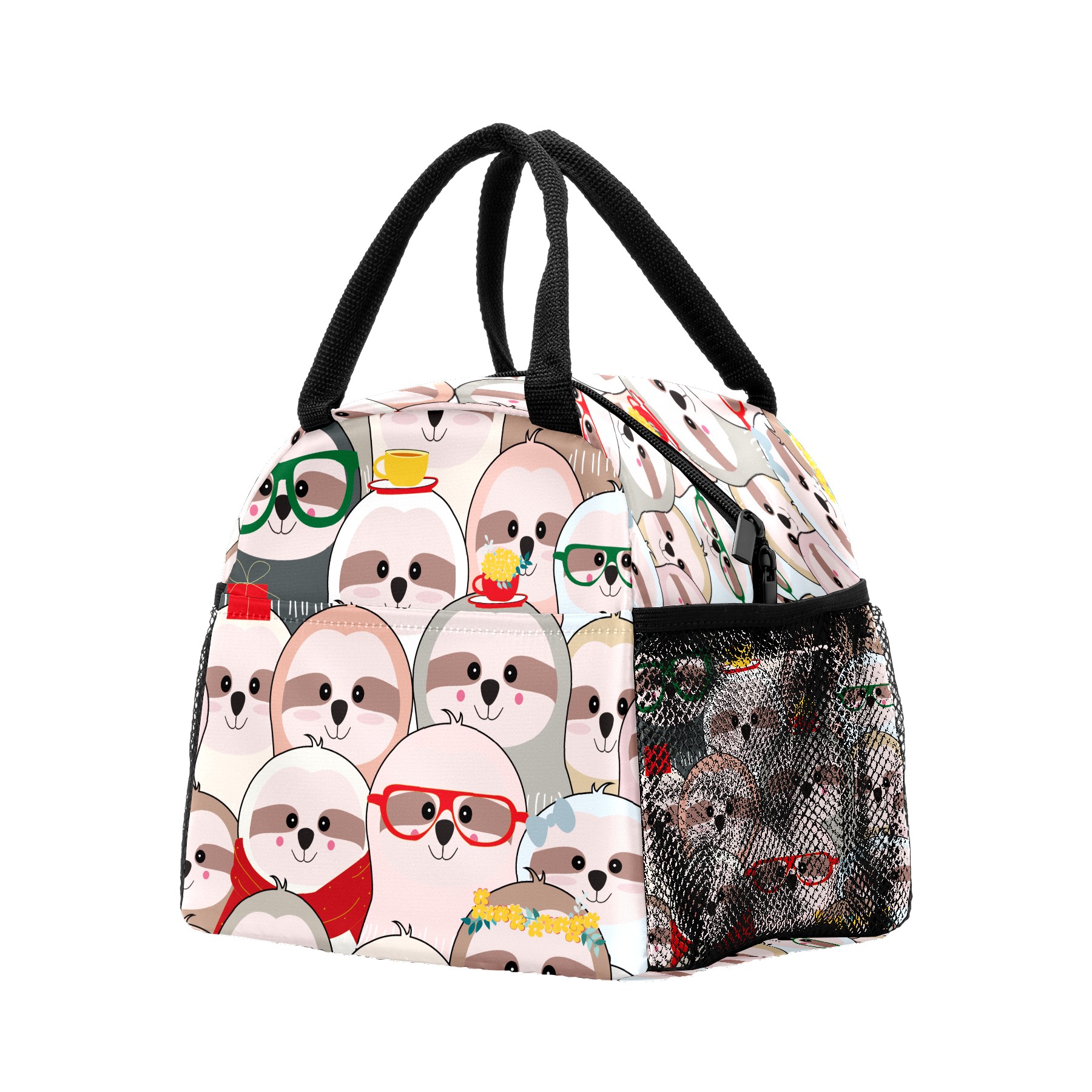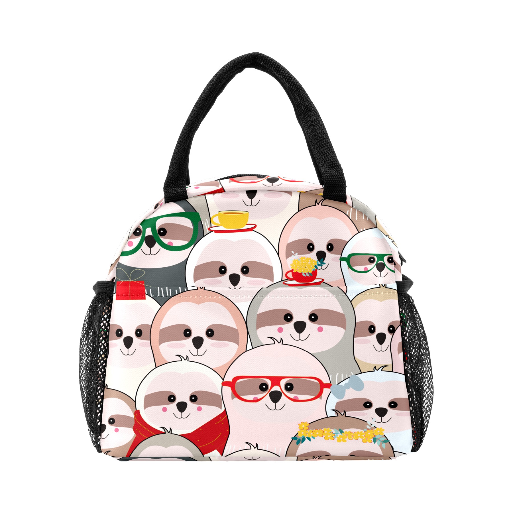 Lunch Bag for Women Men, Cute Funny Sloth Faces Pattern Insulated Reusable Lunch Box Thermal Cooler Tote Bag for Work Picnic Hiking Travel Beach