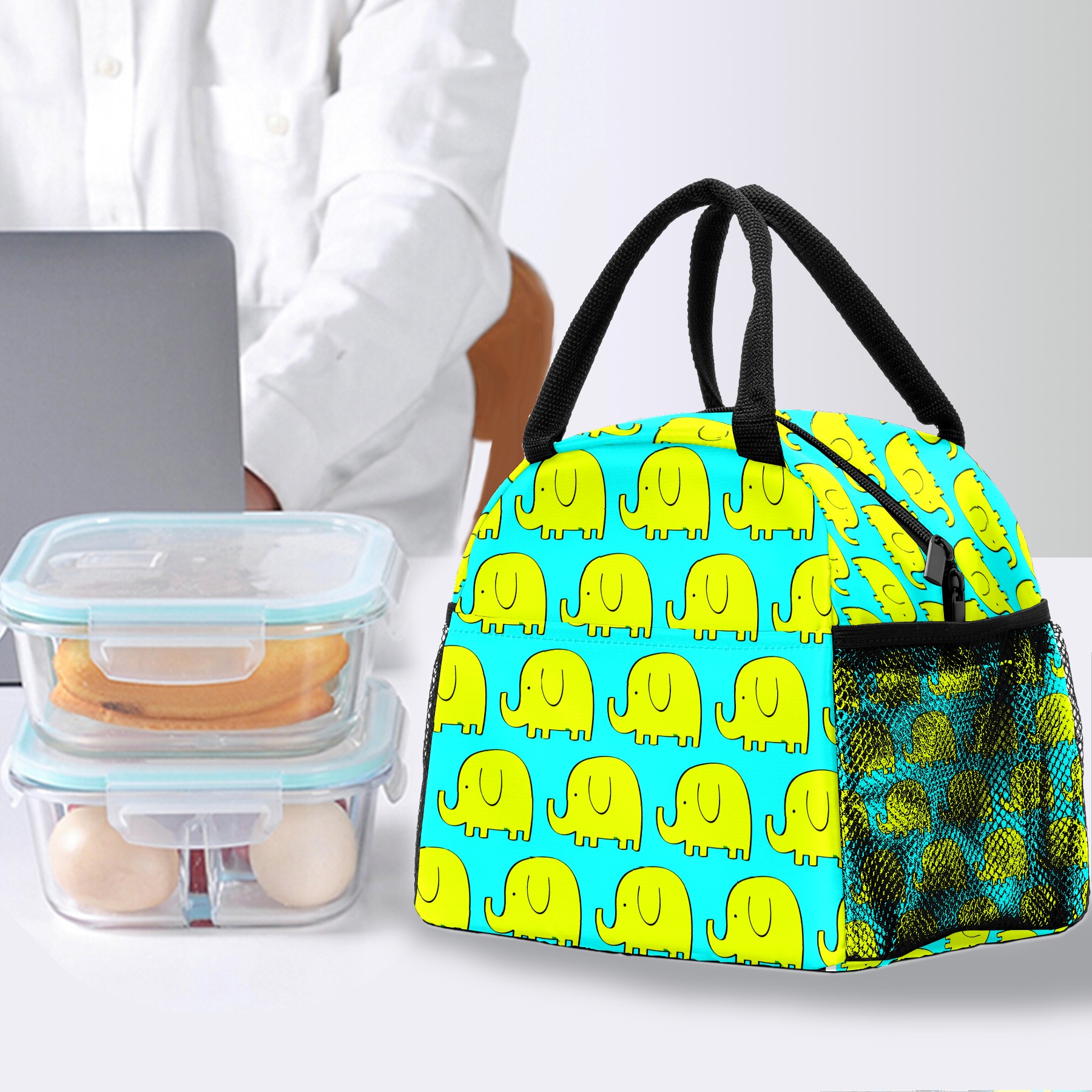 Lunch Bag for Women Men, Cute Cartoon Yellow Elephant Pattern Insulated Reusable Lunch Box Thermal Cooler Tote Bag for Work Picnic Hiking Travel Beach