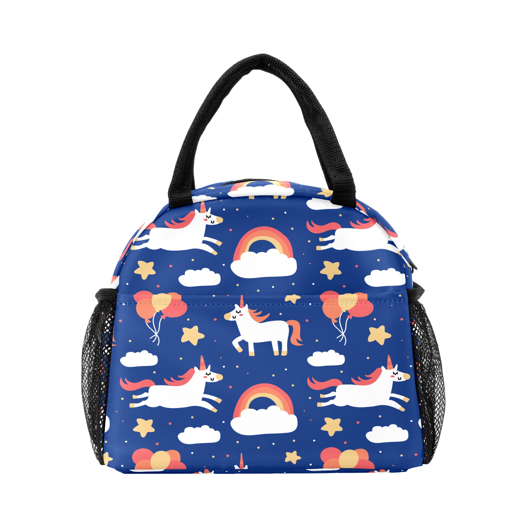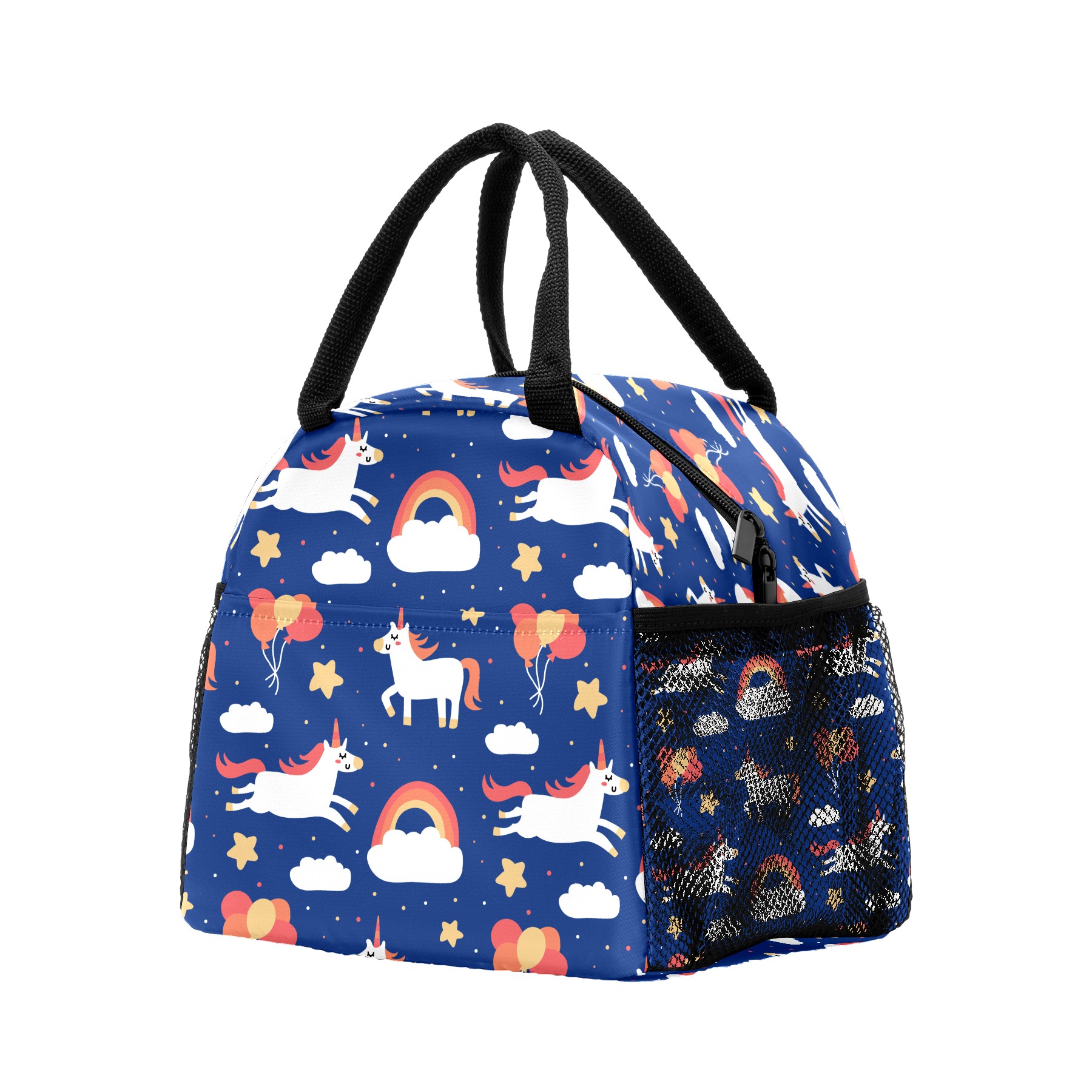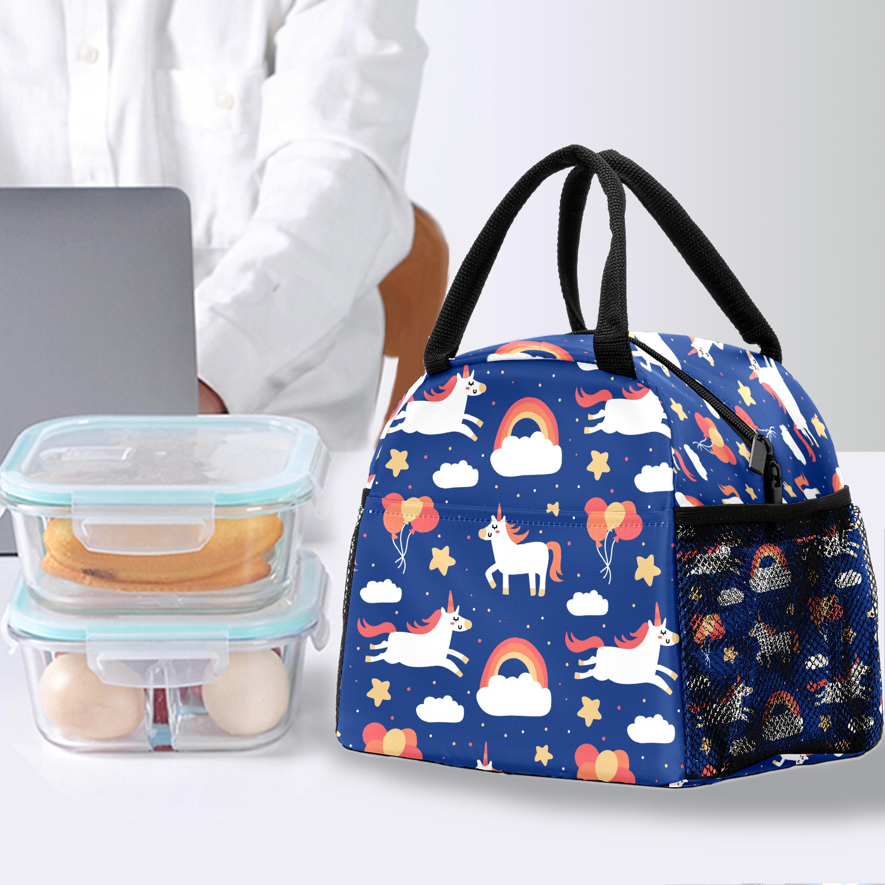 Lunch Bag for Women Men, Cute Cartoon Unicorn Balloon Stars Clouds Insulated Reusable Lunch Box Thermal Cooler Tote Bag for Work Picnic Hiking Travel Beach
