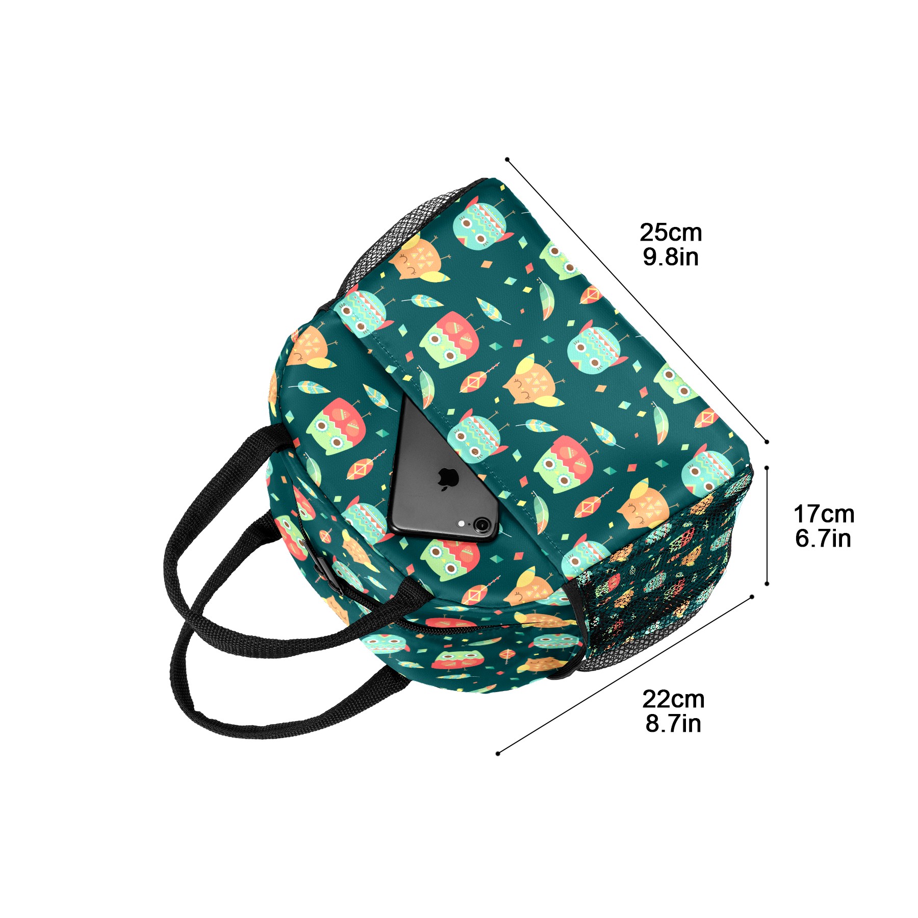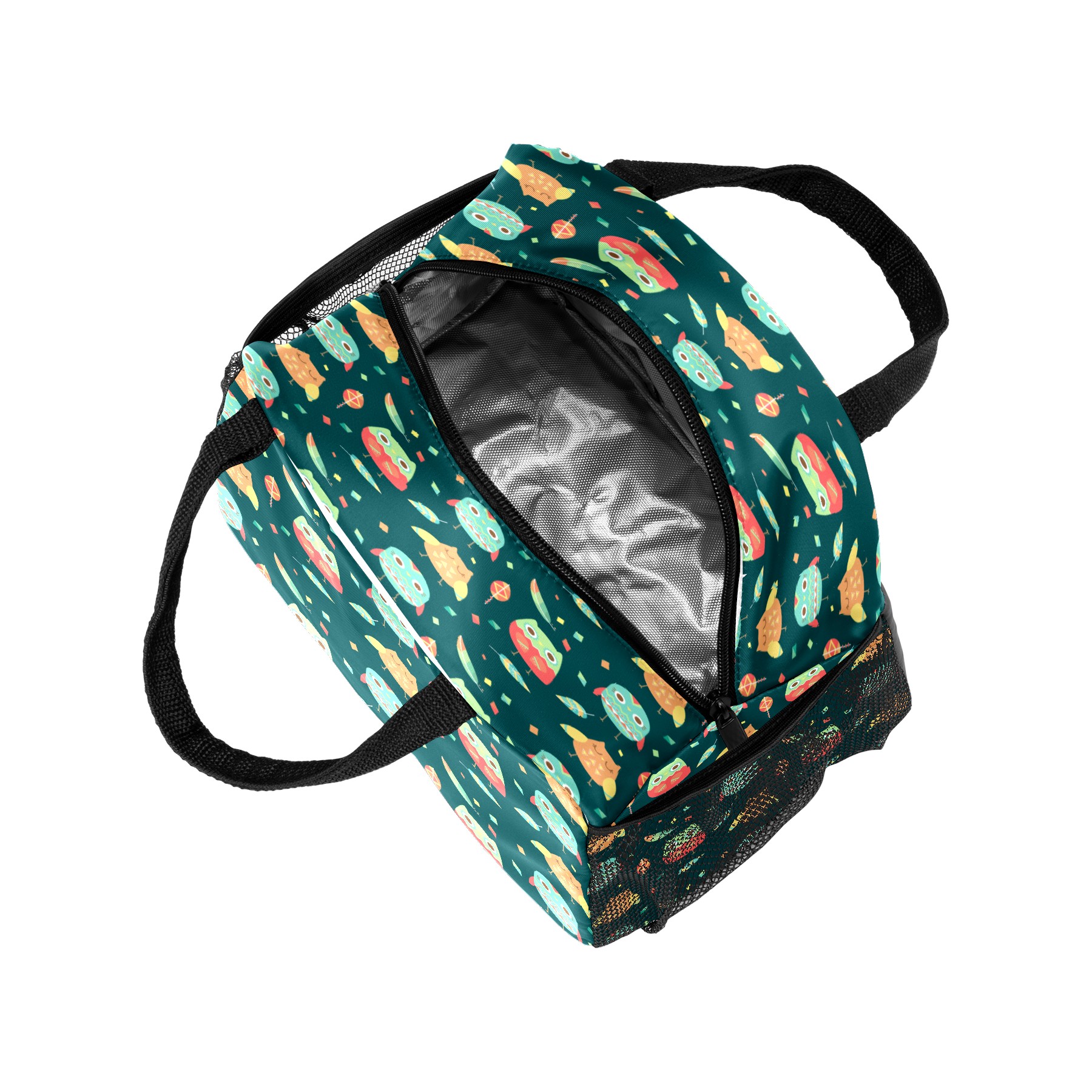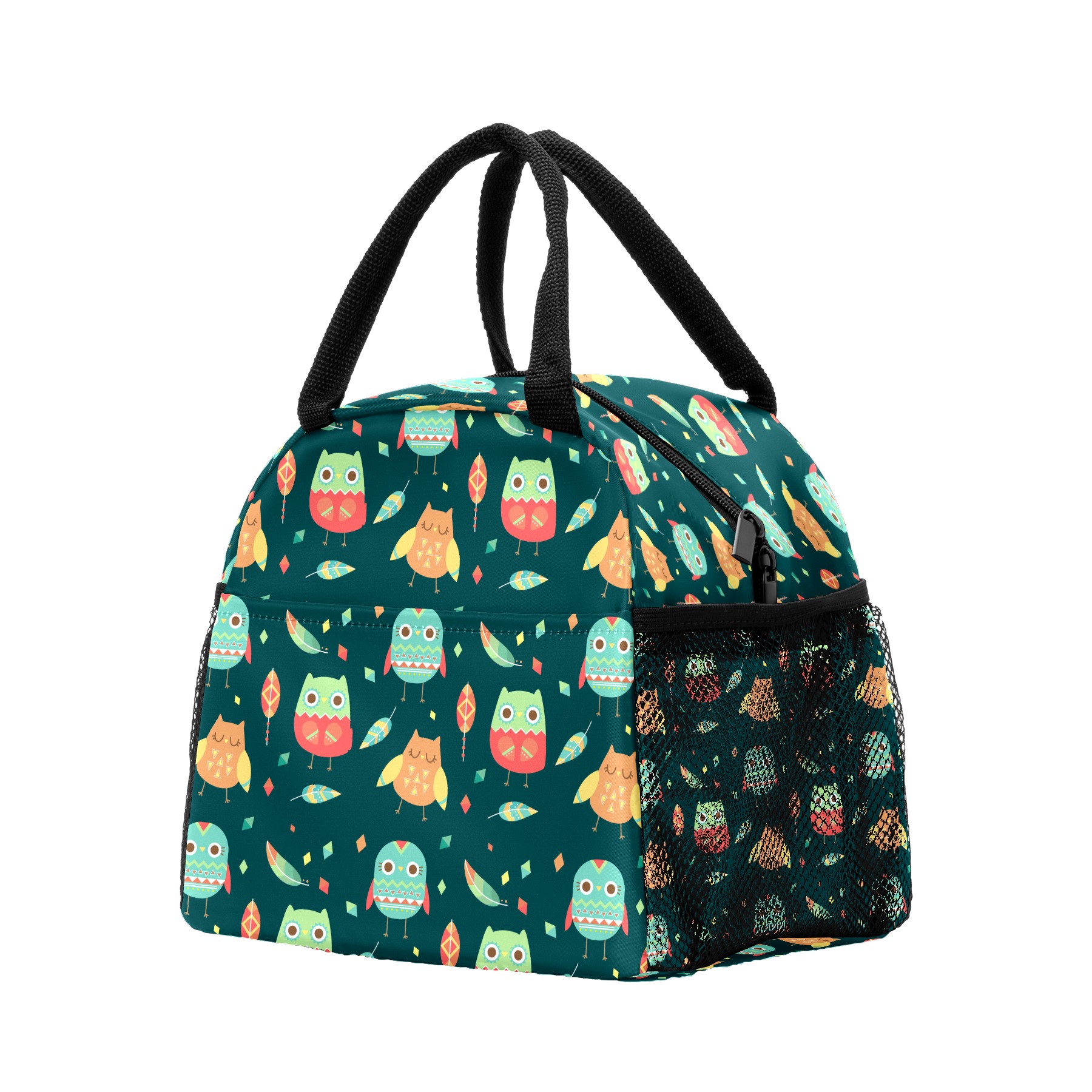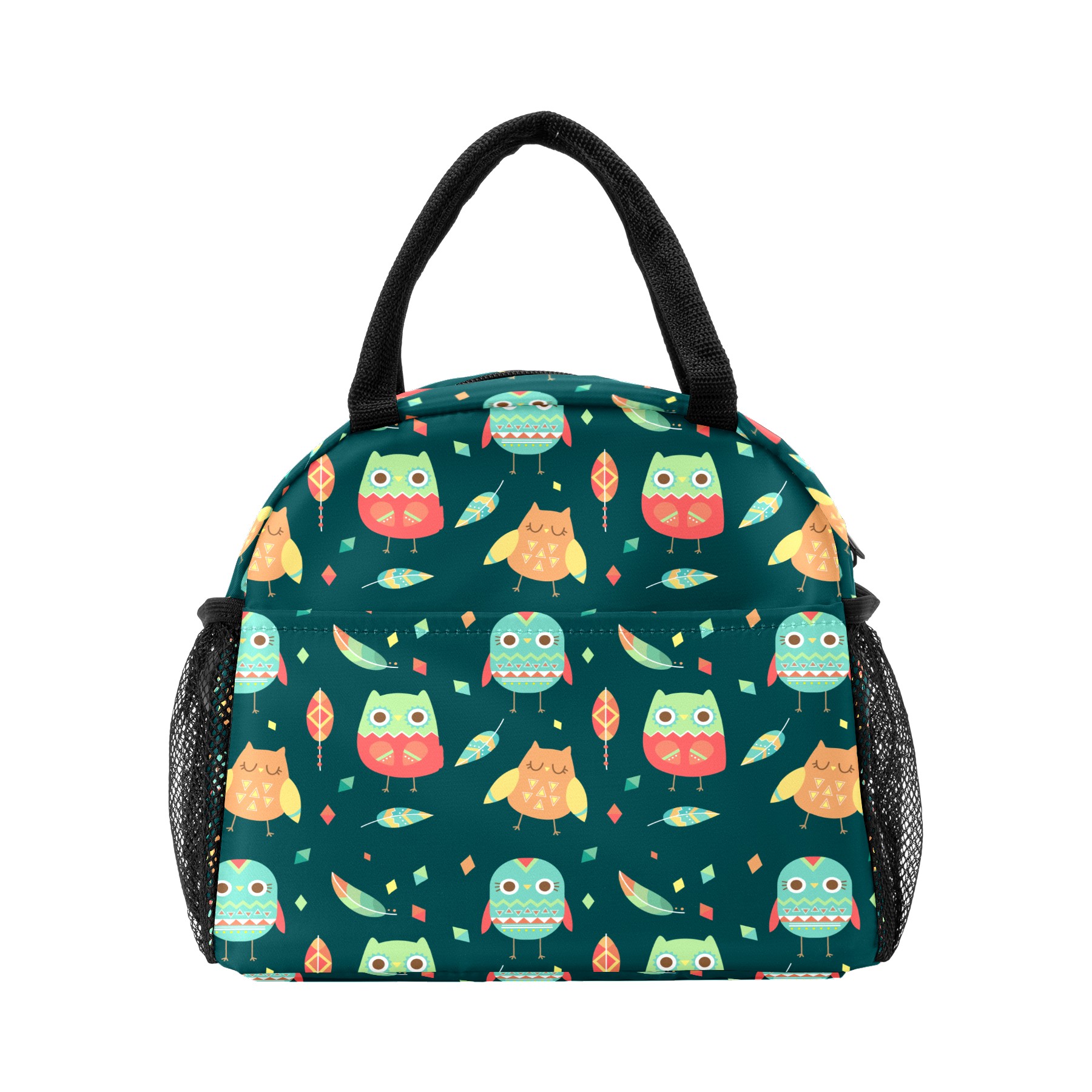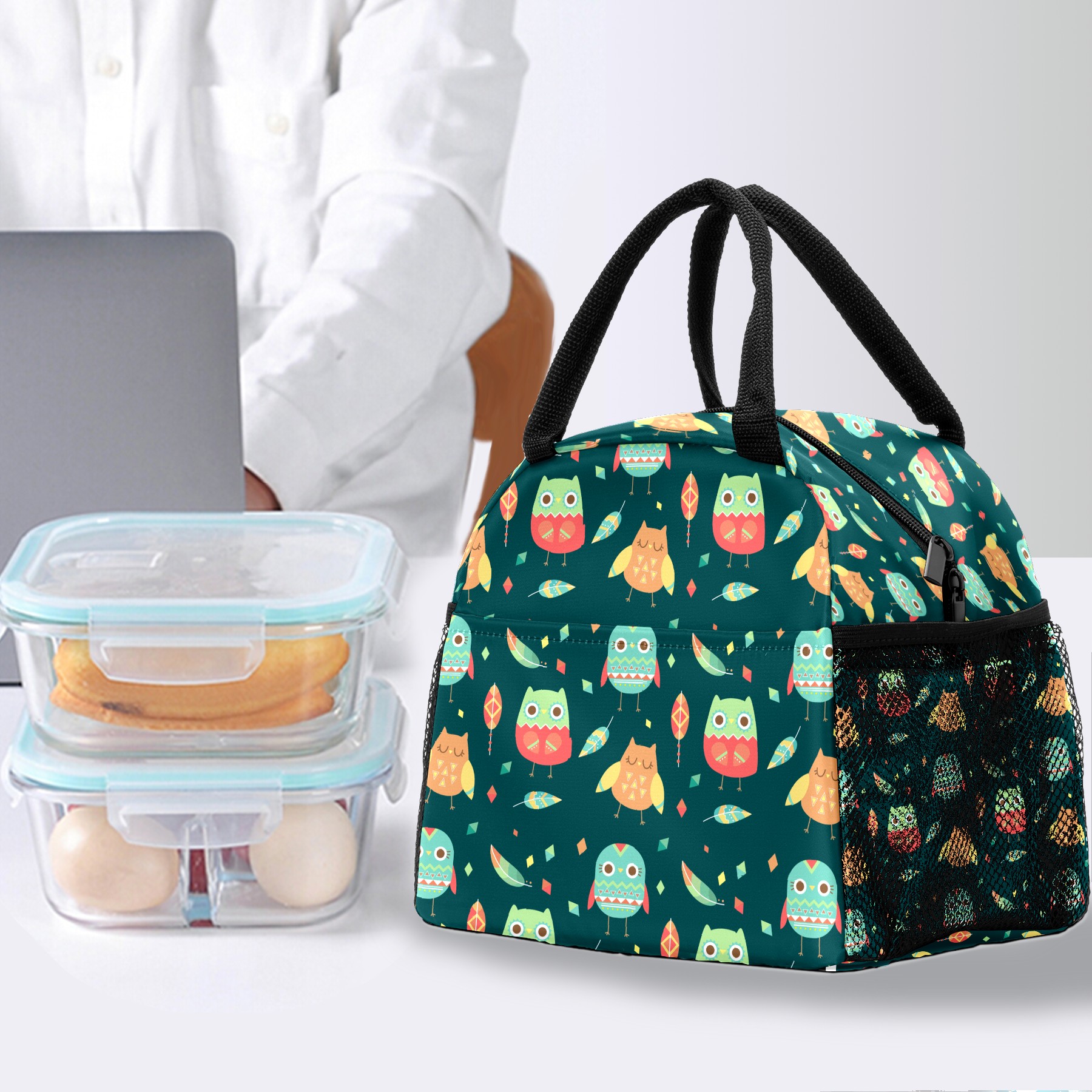 Lunch Bag for Women Men, Cute Cartoon Owl Leaves Pattern Insulated Reusable Lunch Box Thermal Cooler Tote Bag for Work Picnic Hiking Travel Beach
