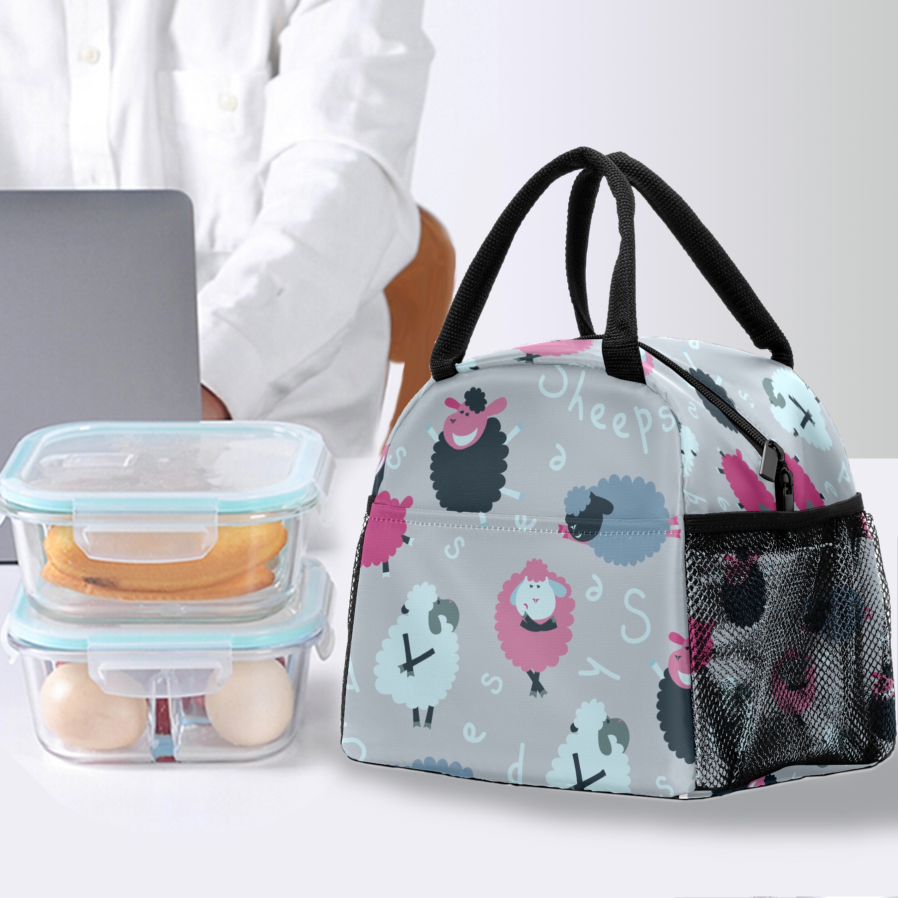 Lunch Bag for Women Men, Cute Cartoon Sheeps Insulated Reusable Lunch Box Thermal Cooler Tote Bag for Work Picnic Hiking Travel Beach