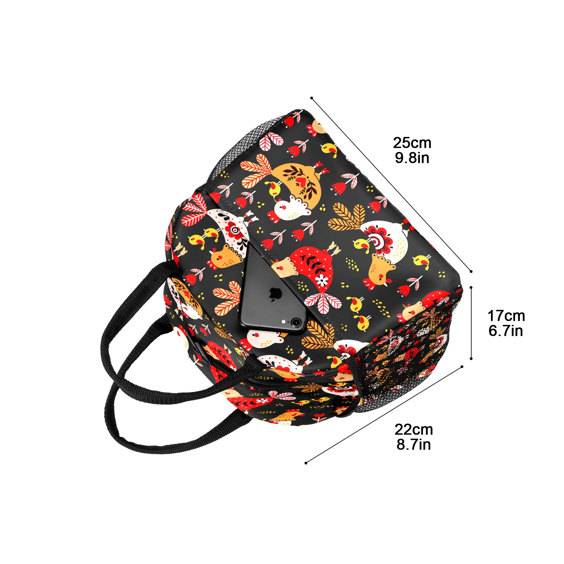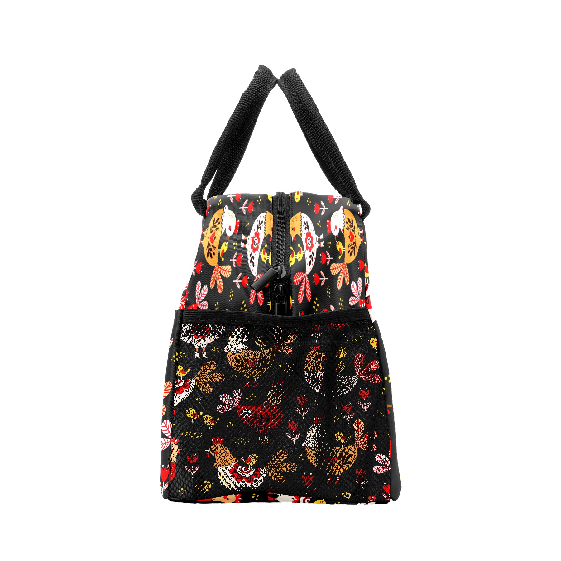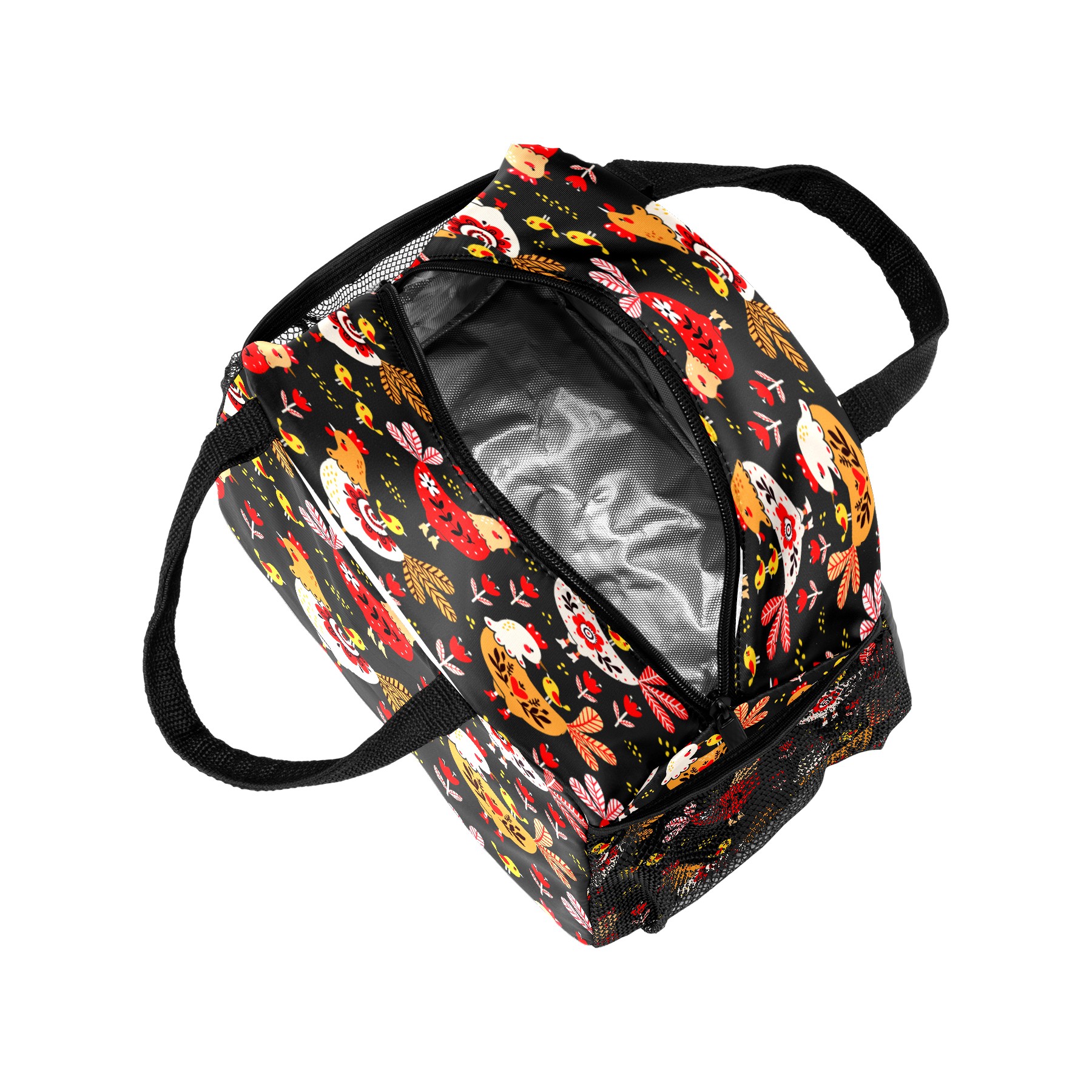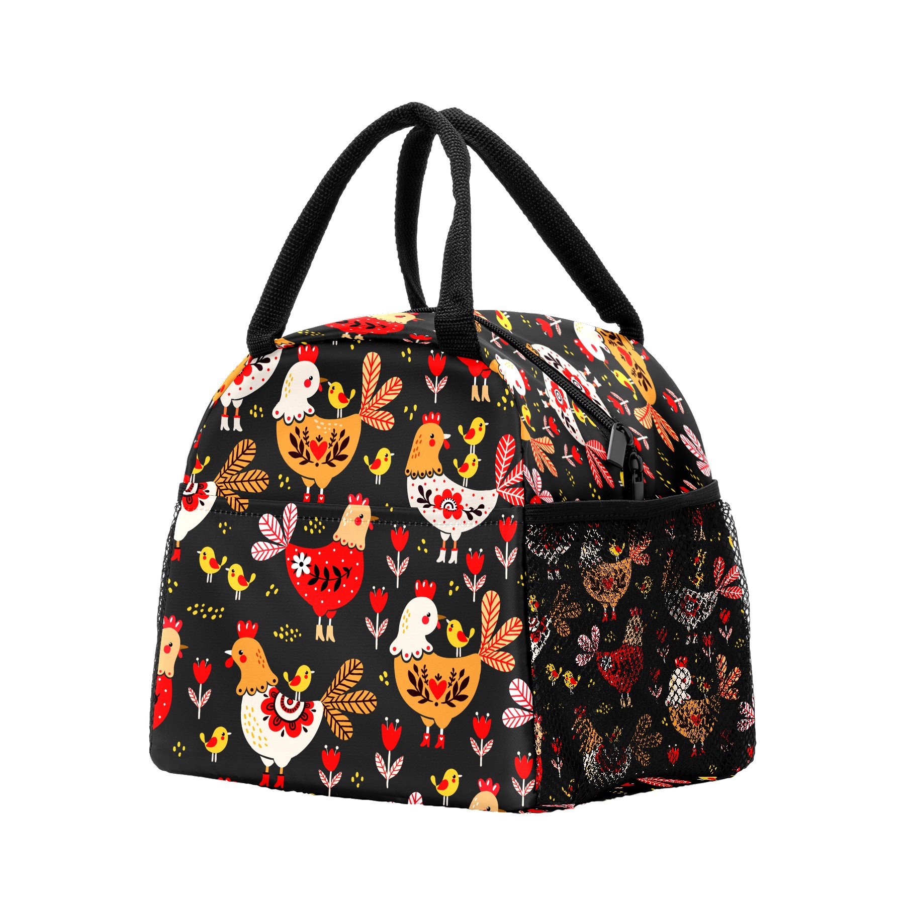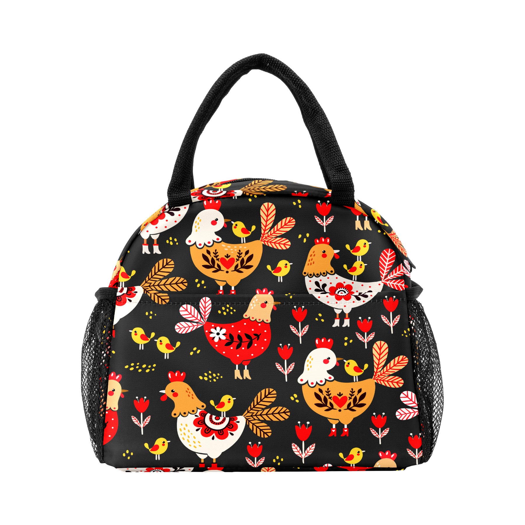 Lunch Bag for Women Men, Colorful Rooster Chicken Floral Pattern Insulated Reusable Lunch Box Thermal Cooler Tote Bag for Work Picnic Hiking Travel Beach