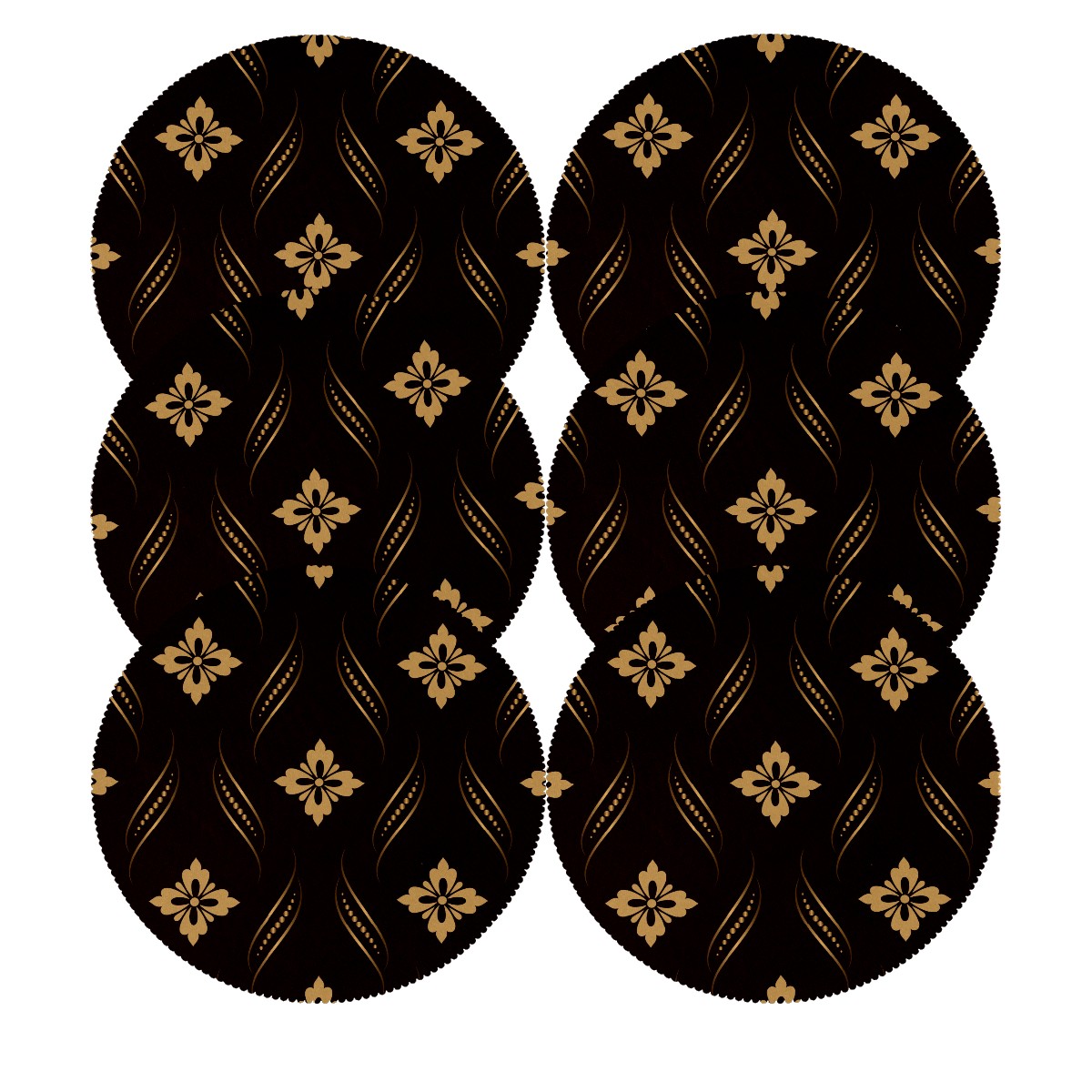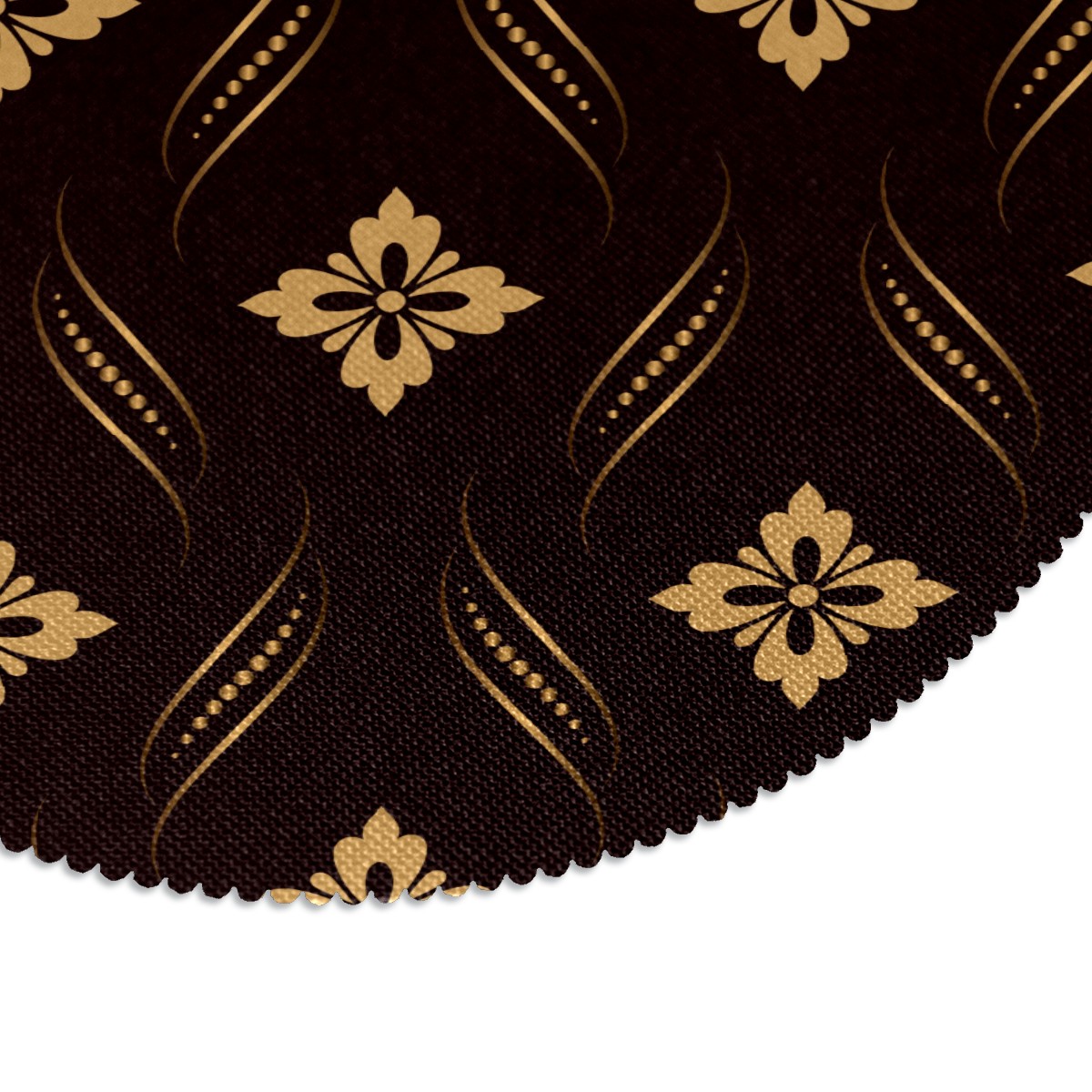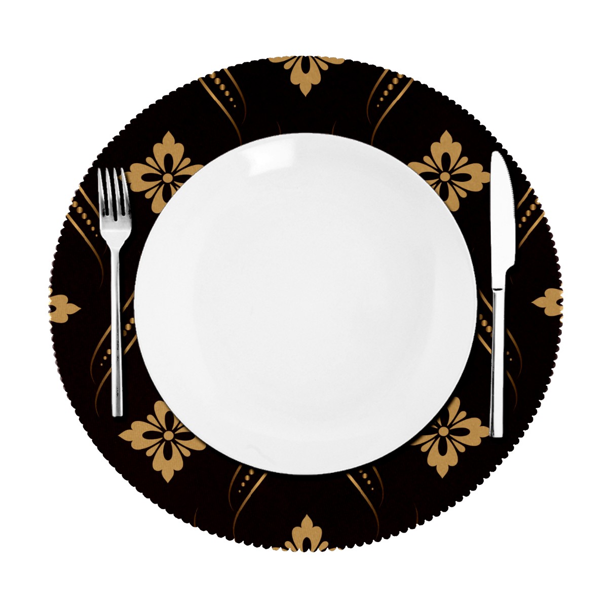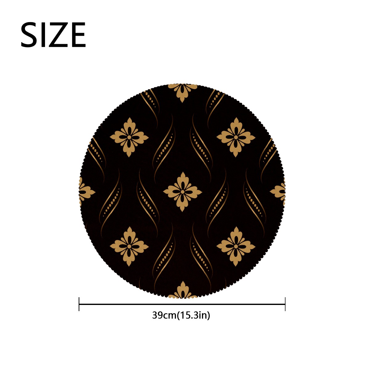 Round Placemats Set of 1 Luxury Vintage Gold Flower Dining Table Mats Kitchen Waterproof Washable Place Mats Wipeable Boho Tablemats for Home Decor