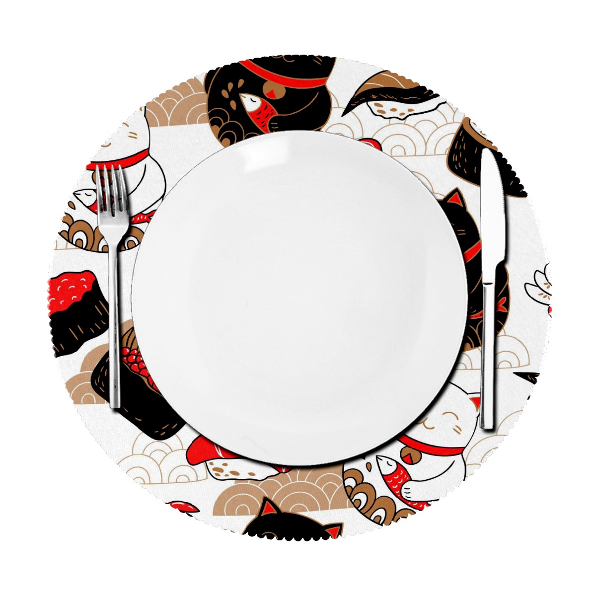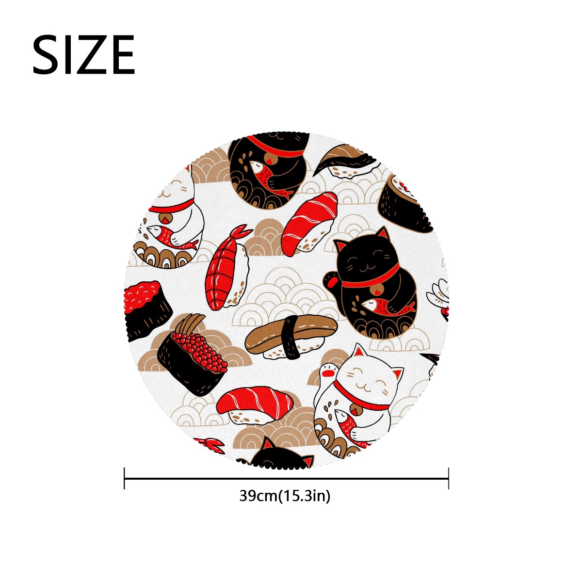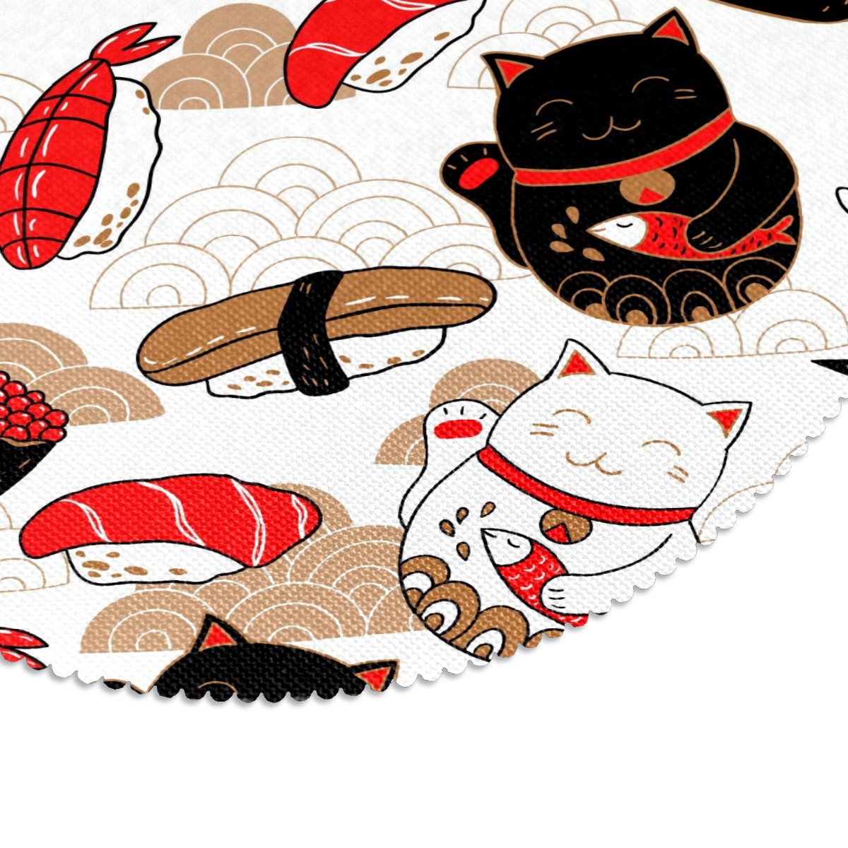 Round Placemats Set of 1 Japanese Neko Lucky Cat Sushi Koi Dining Table Mats Kitchen Waterproof Washable Place Mats Wipeable Boho Tablemats for Home Decor