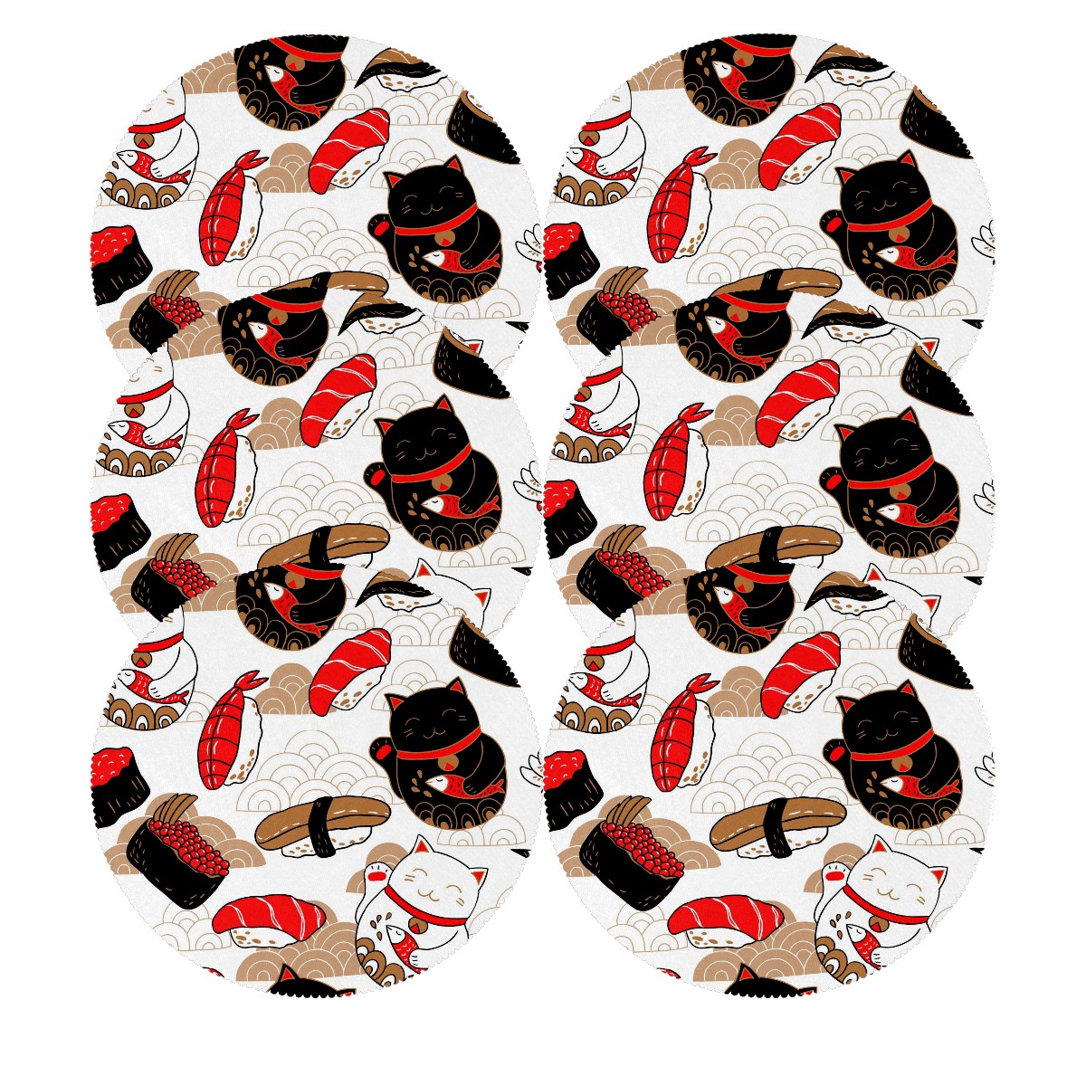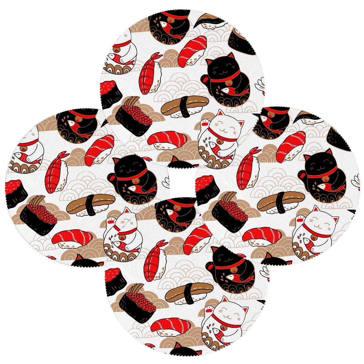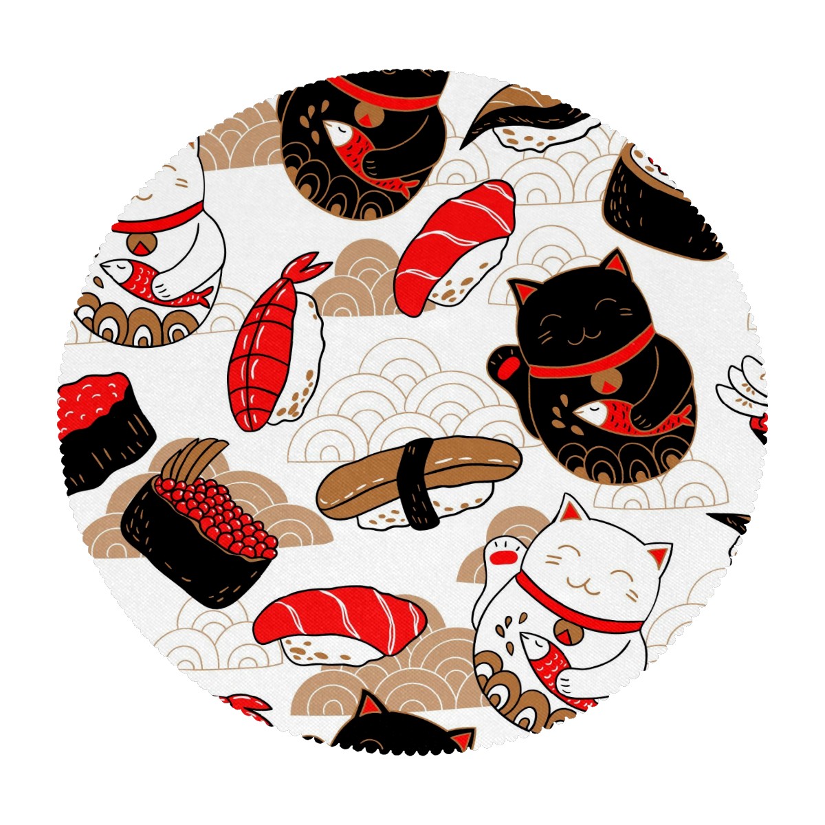 Round Placemats Set of 1 Japanese Neko Lucky Cat Sushi Koi Dining Table Mats Kitchen Waterproof Washable Place Mats Wipeable Boho Tablemats for Home Decor