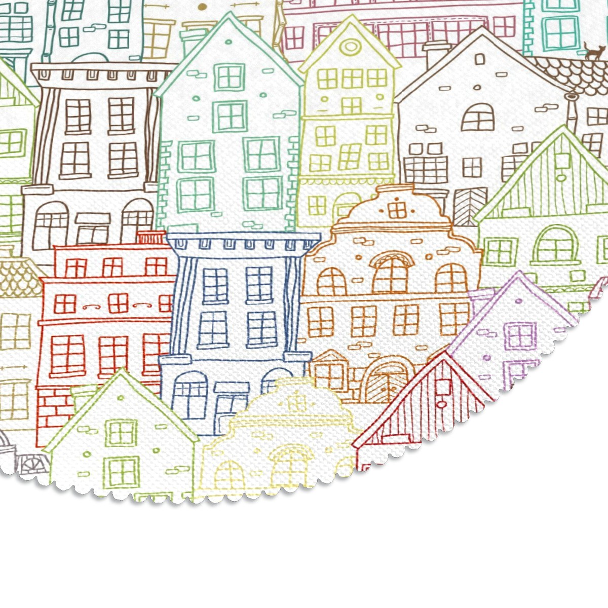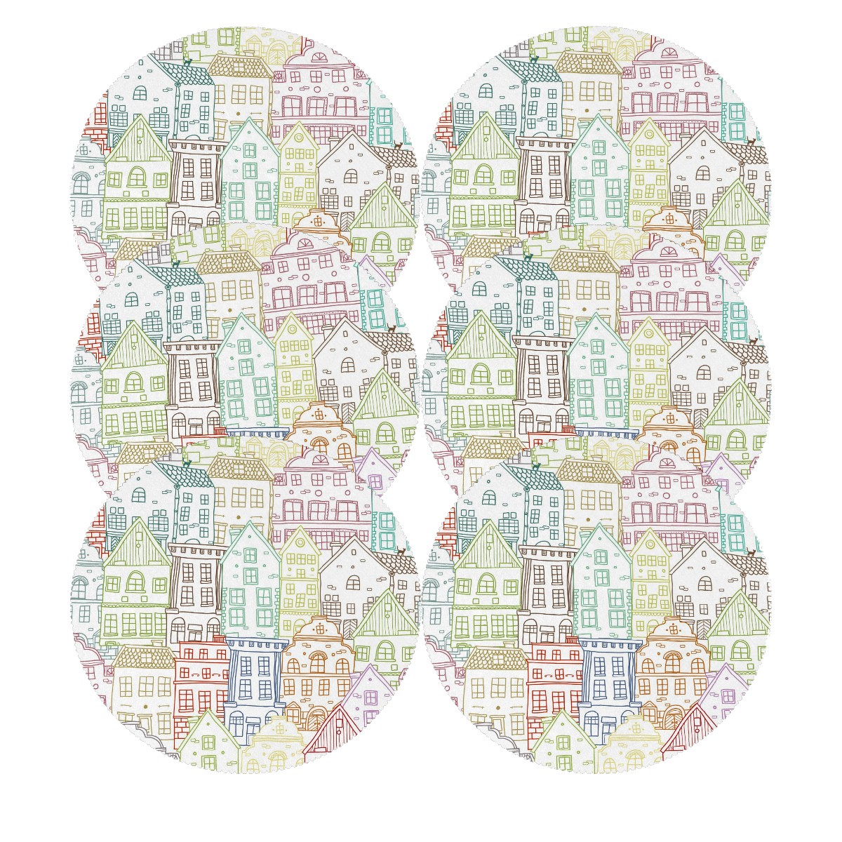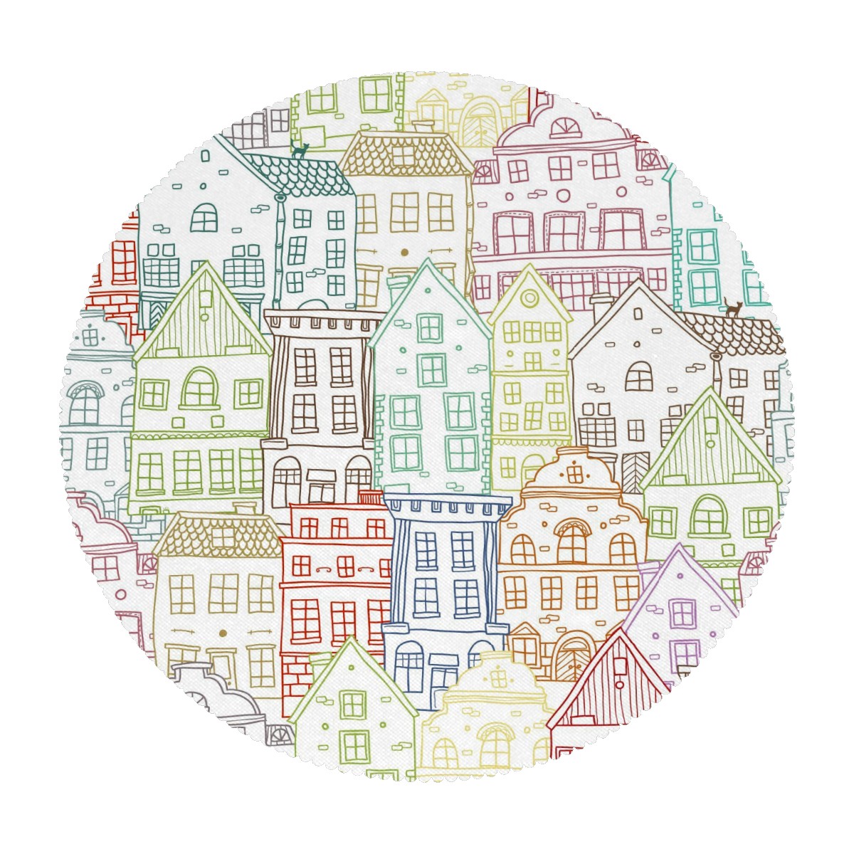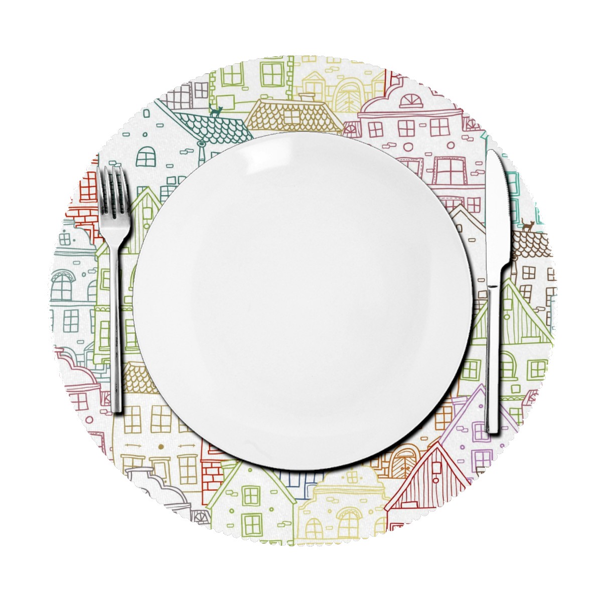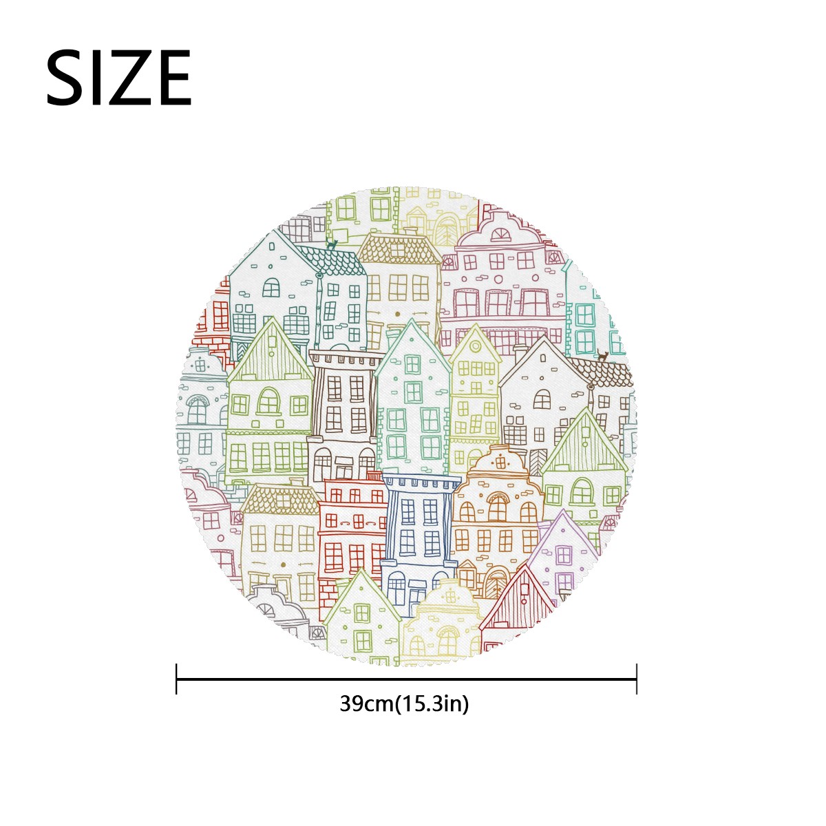 Round Placemats Set of 1 Hand Drawn House Watercolor Dining Table Mats Kitchen Waterproof Washable Place Mats Wipeable Boho Tablemats for Home Decor