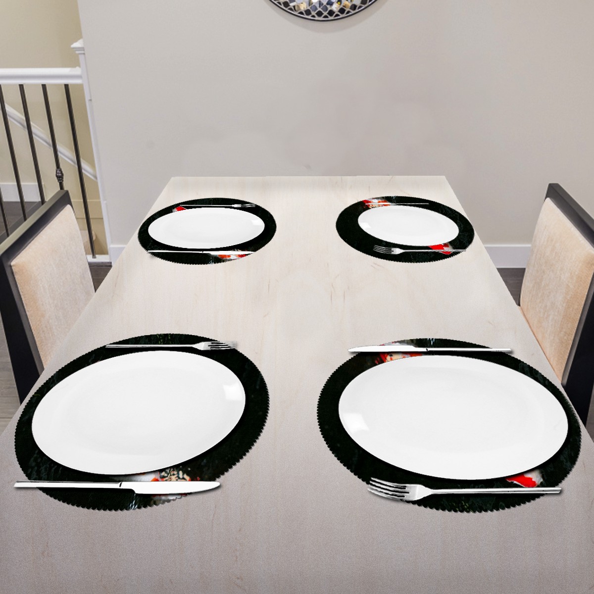 • <p><b>The fashionable design with this table placemat will makes your table look more outstanding and pretty.</b></p> <p><b>Diameter:</b> 15.4 In / 39 cm.</p> <p><b>Packing:</b> 1 PCS/4 PCS/6 PCS.</p> <p><b>Care Instructions:</b></p> <p>1.Wash with water and dry in a cool place. If there are stains on the placemat, you can wipe it with a damp sponge or damp cloth.</p> <p>2.Do not machine wash or sterilize in a microwave oven.</p> <p>3.Note: The package has been rolled up. If you encounter crease problems, please immerse it in warm water and take it out and place a flat object on the mat. The crease will disappear.</p> <p><b>Quality you can trust:</b></p> <p><b>1.Material:High Quality Polyester.</b></p> <p>2.Environmental protection material, no pollution, can be cleaned directly, non-slip, heat-resistant.</p> <p>3.Durable, no deformation,not fade,wrinkle resistant,wear resistant,easy to clean.</p> <p>4.Personalized design. One-Side High Quality Printing Technology.Vivid color and clear images.&nbsp;</p> <p><b>Home Decoration: Suitable for kitchen table,dinner hall,restaurant,hotel,business office,cafe,BBQ,picnic,party,etc.Both practical and decorative.</b></p> <p><b>Best Birthday/Christmas/Halloween/easter/thanksgiving/wedding/engagement anniversary gift to your baby/children/kids/family/boys/girls/parents/friends/girlfriend/boyfriend/wife, etc.</b></p>