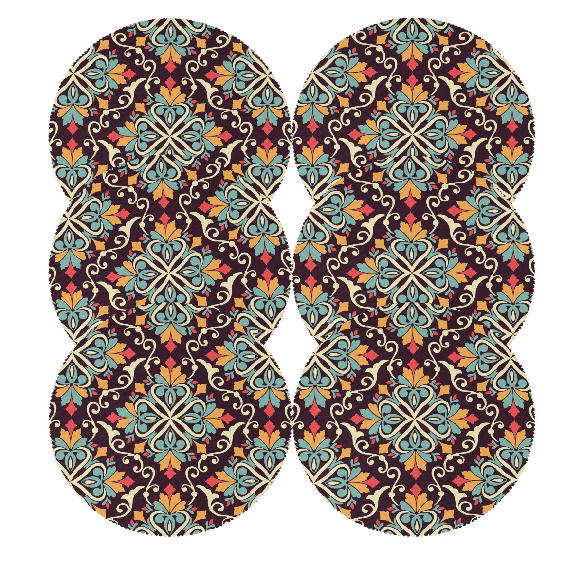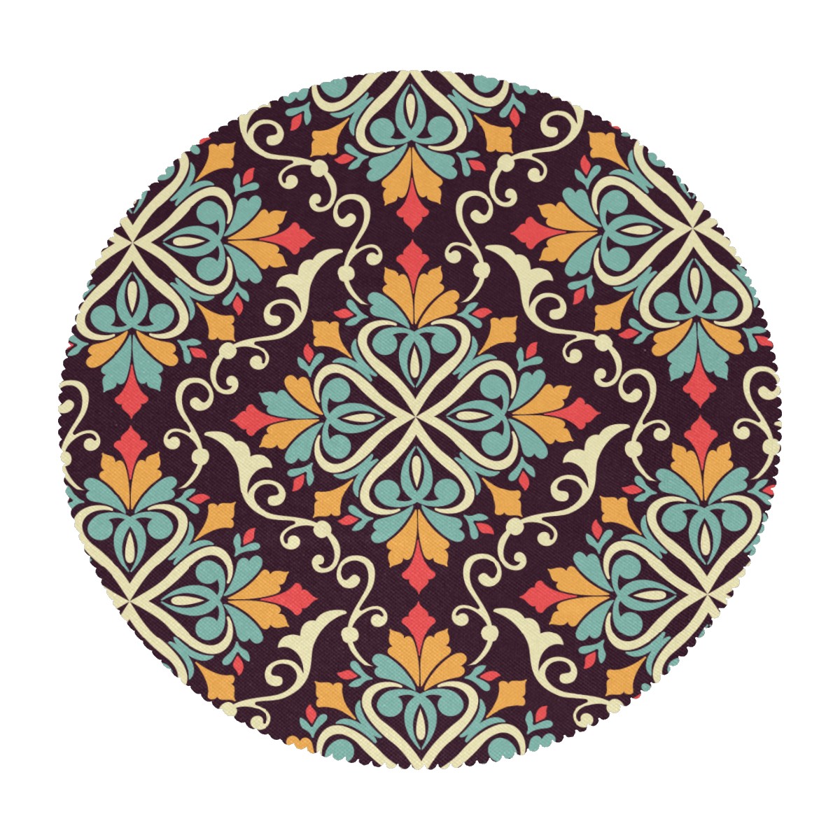 Round Placemats Set of 1 Eastern Ethnic Arabian Style Pattern Dining Table Mats Kitchen Waterproof Washable Place Mats Wipeable Boho Tablemats for Home Decor