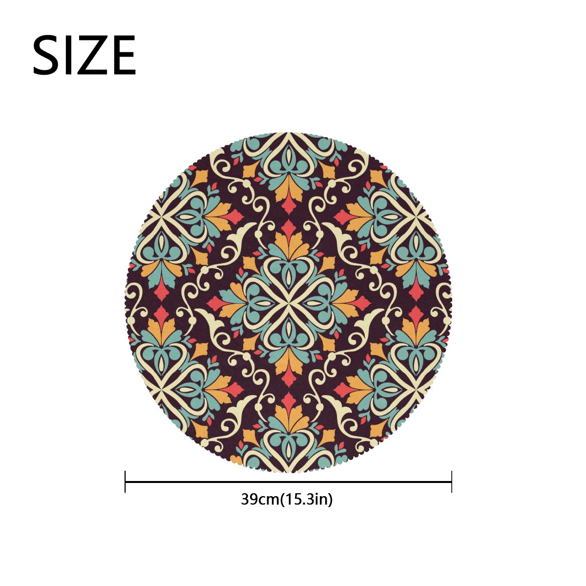 <p><b>The fashionable design with this table placemat will makes your table look more outstanding and pretty.</b></p> <p><b>Diameter:</b> 15.4 In / 39 cm.</p> <p><b>Packing:</b> 1 PCS/4 PCS/6 PCS.</p> <p><b>Care Instructions:</b></p> <p>1.Wash with water and dry in a cool place. If there are stains on the placemat, you can wipe it with a damp sponge or damp cloth.</p> <p>2.Do not machine wash or sterilize in a microwave oven.</p> <p>3.Note: The package has been rolled up. If you encounter crease problems, please immerse it in warm water and take it out and place a flat object on the mat. The crease will disappear.</p> <p><b>Quality you can trust:</b></p> <p><b>1.Material:High Quality Polyester.</b></p> <p>2.Environmental protection material, no pollution, can be cleaned directly, non-slip, heat-resistant.</p> <p>3.Durable, no deformation,not fade,wrinkle resistant,wear resistant,easy to clean.</p> <p>4.Personalized design. One-Side High Quality Printing Technology.Vivid color and clear images.&nbsp;</p> <p><b>Home Decoration: Suitable for kitchen table,dinner hall,restaurant,hotel,business office,cafe,BBQ,picnic,party,etc.Both practical and decorative.</b></p> <p><b>Best Birthday/Christmas/Halloween/easter/thanksgiving/wedding/engagement anniversary gift to your baby/children/kids/family/boys/girls/parents/friends/girlfriend/boyfriend/wife, etc.</b></p>