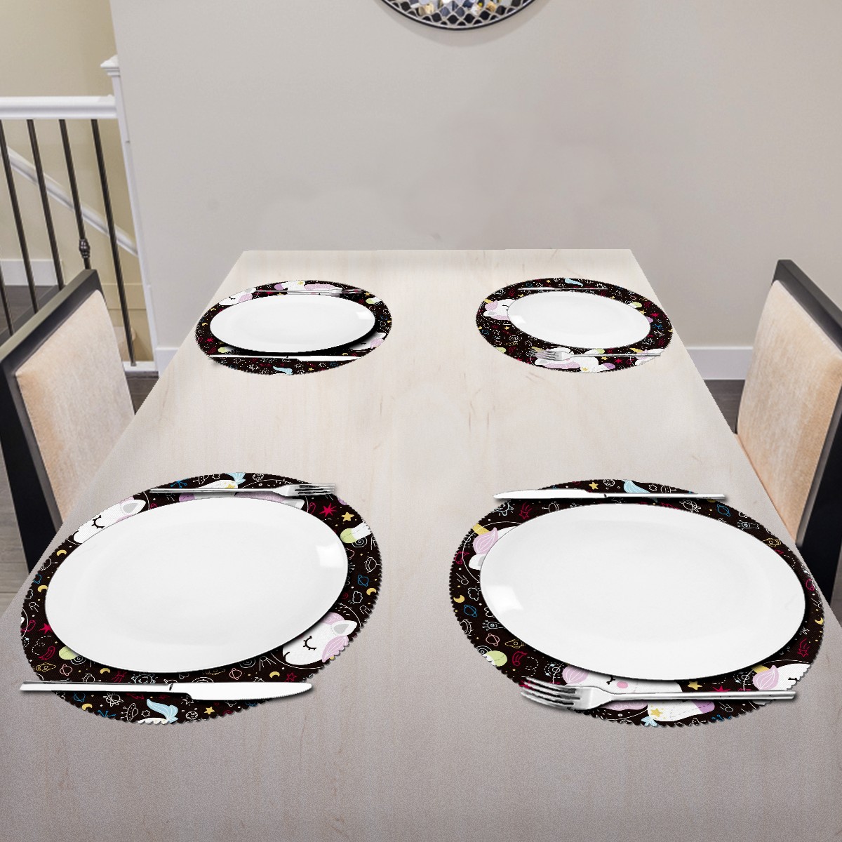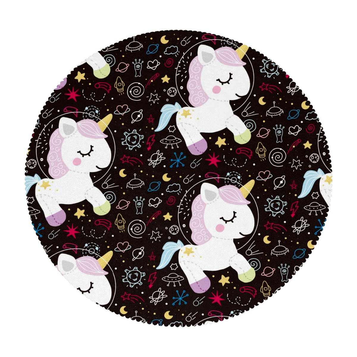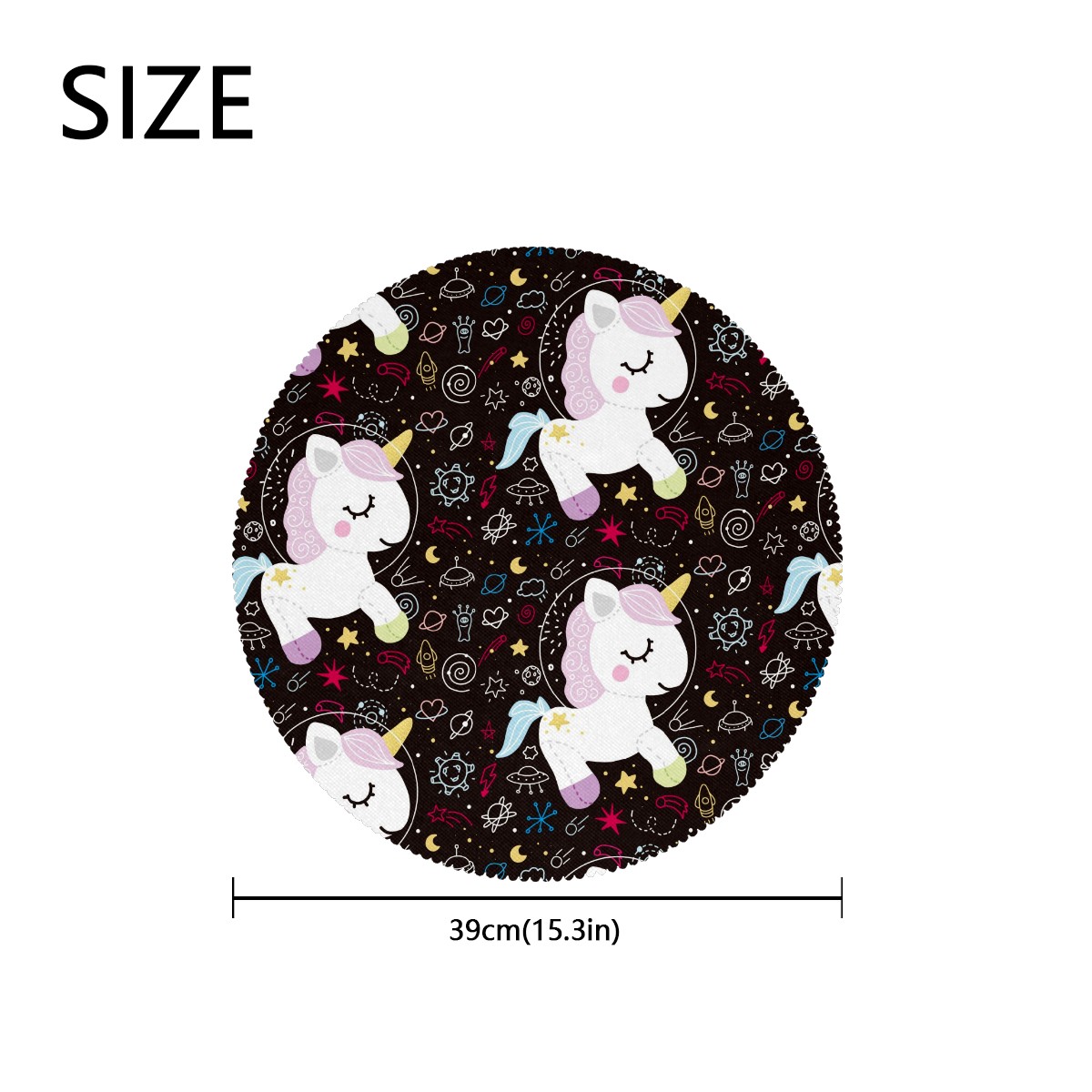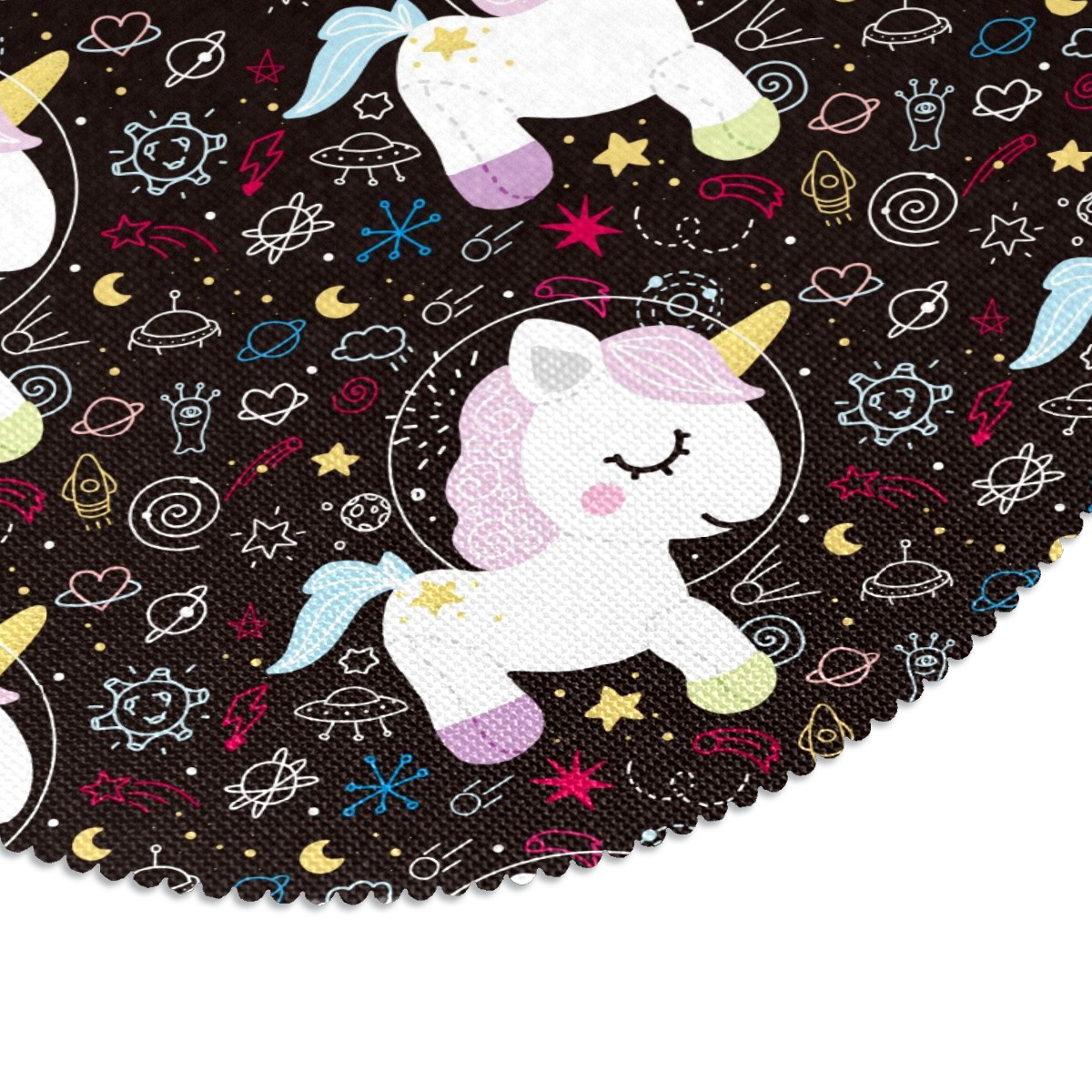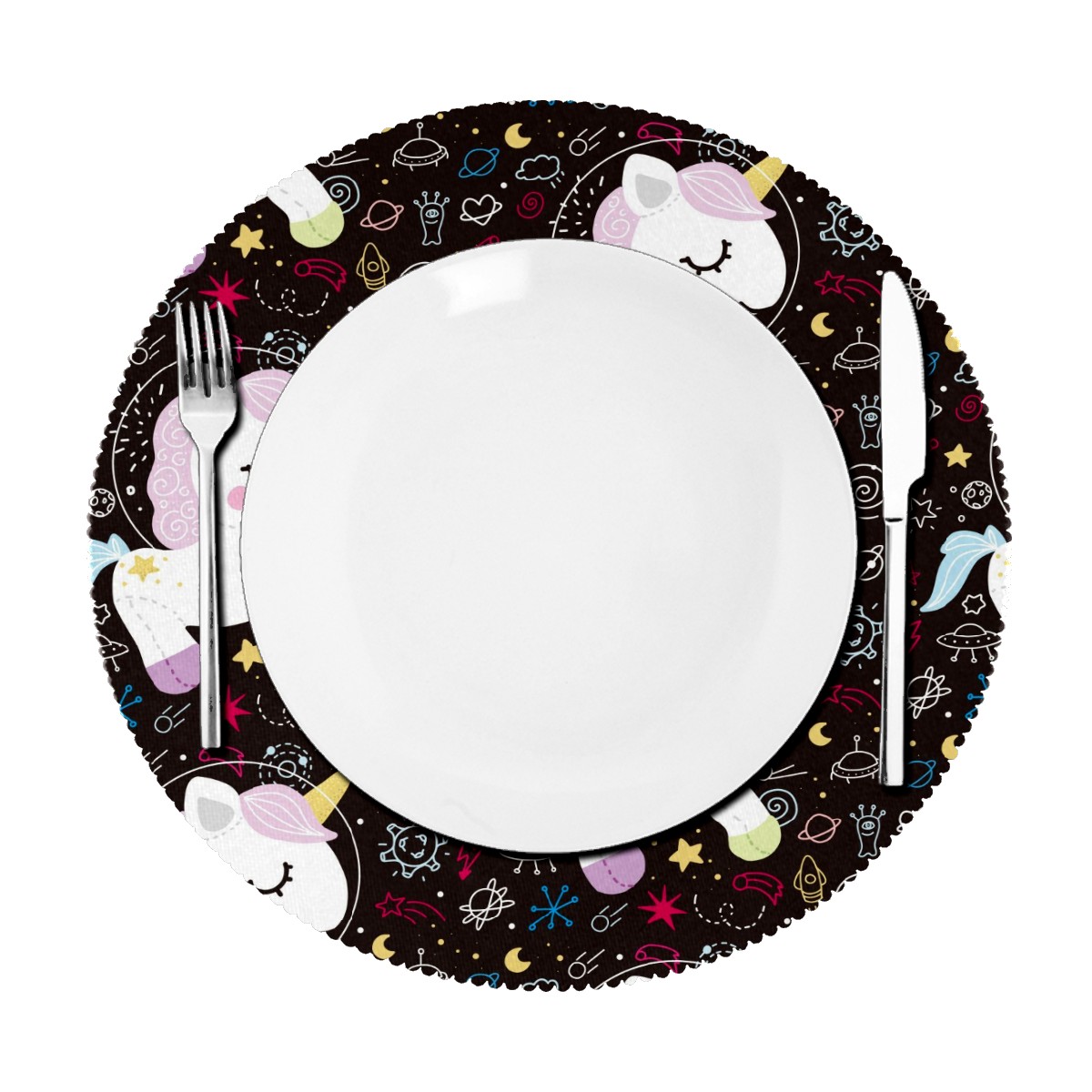 Round Placemats Set of 1 Cute Unicorn Cartoon Space Planet Dining Table Mats Kitchen Waterproof Washable Place Mats Wipeable Boho Tablemats for Home Decor