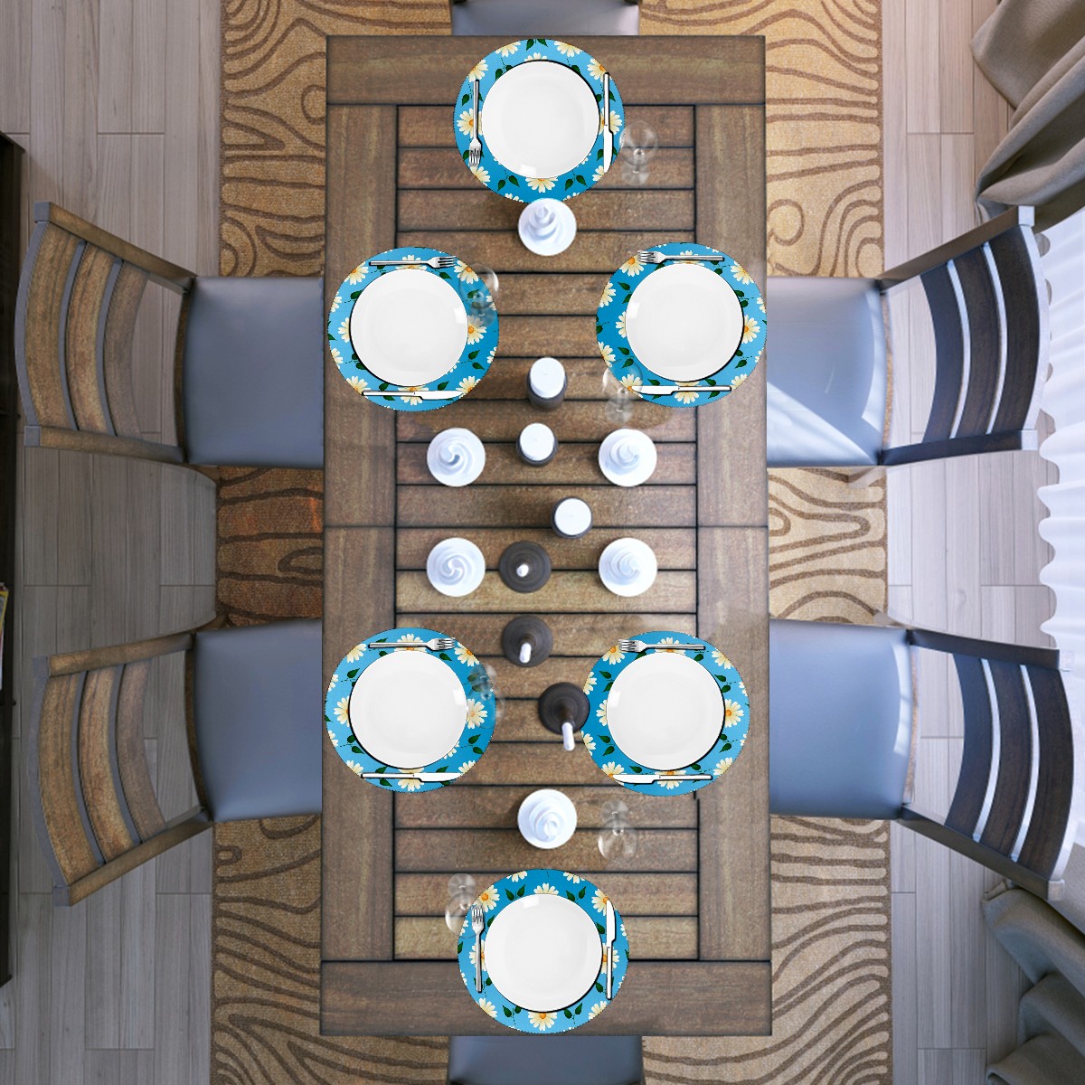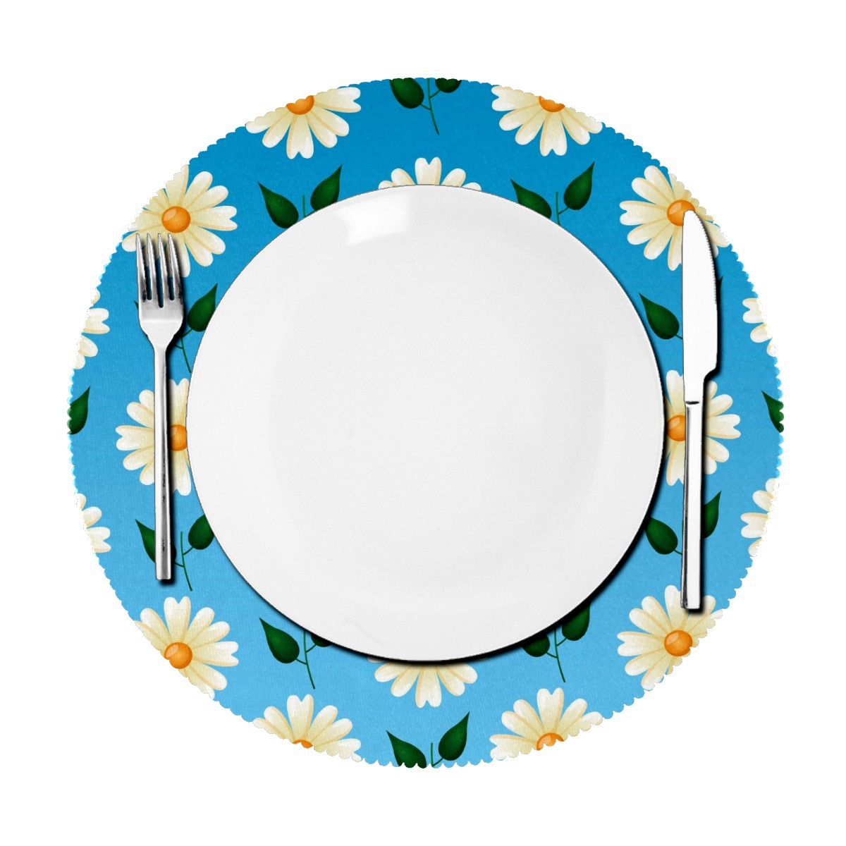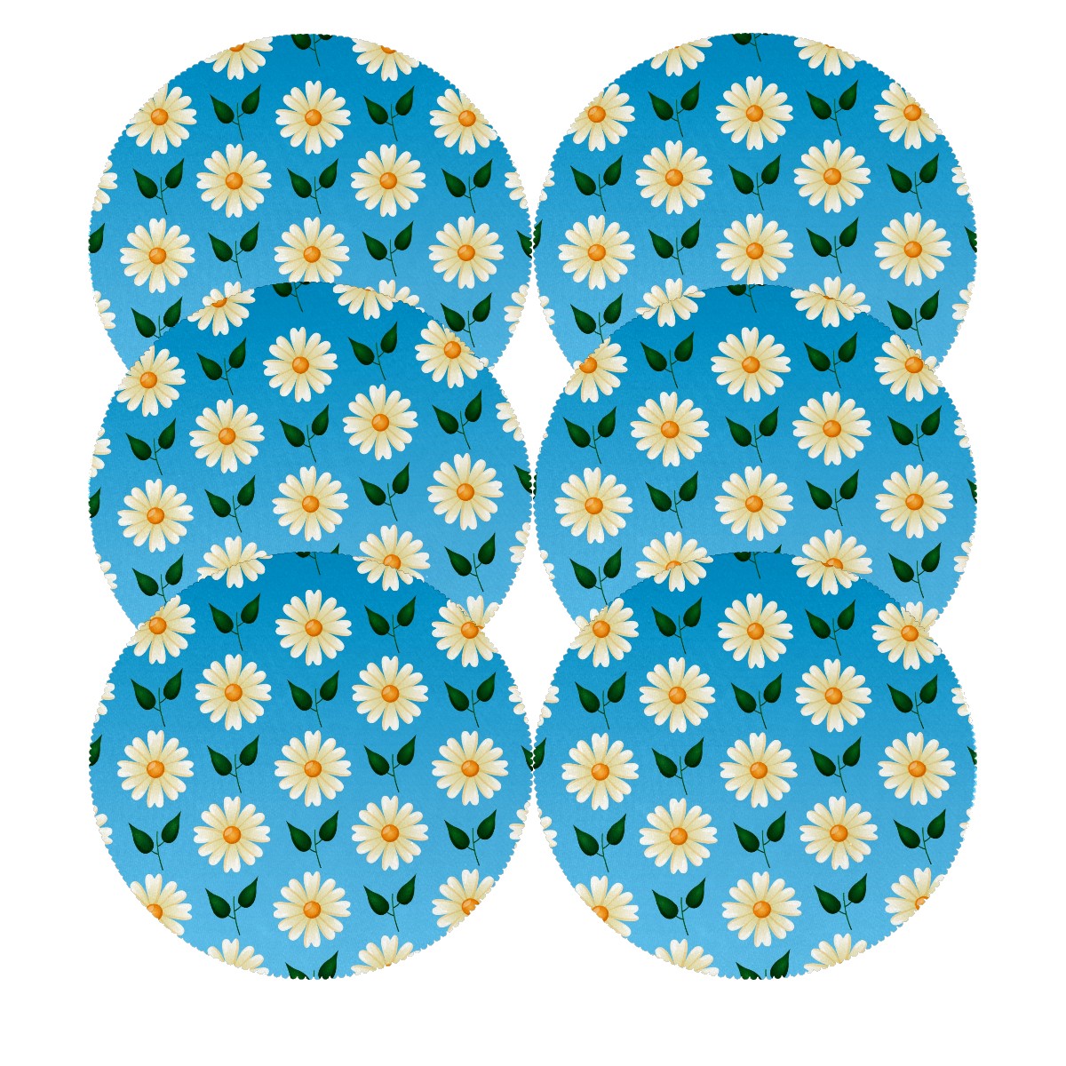 Round Placemats Set of 1 Cute Little Daisy Flower Blue Dining Table Mats Kitchen Waterproof Washable Place Mats Wipeable Boho Tablemats for Home Decor