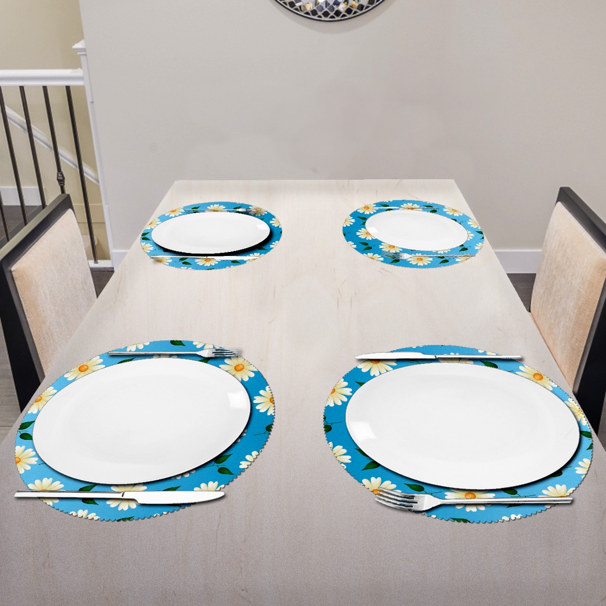 • <p><b>The fashionable design with this table placemat will makes your table look more outstanding and pretty.</b></p> <p><b>Diameter:</b> 15.4 In / 39 cm.</p> <p><b>Packing:</b> 1 PCS/4 PCS/6 PCS.</p> <p><b>Care Instructions:</b></p> <p>1.Wash with water and dry in a cool place. If there are stains on the placemat, you can wipe it with a damp sponge or damp cloth.</p> <p>2.Do not machine wash or sterilize in a microwave oven.</p> <p>3.Note: The package has been rolled up. If you encounter crease problems, please immerse it in warm water and take it out and place a flat object on the mat. The crease will disappear.</p> <p><b>Quality you can trust:</b></p> <p><b>1.Material:High Quality Polyester.</b></p> <p>2.Environmental protection material, no pollution, can be cleaned directly, non-slip, heat-resistant.</p> <p>3.Durable, no deformation,not fade,wrinkle resistant,wear resistant,easy to clean.</p> <p>4.Personalized design. One-Side High Quality Printing Technology.Vivid color and clear images.&nbsp;</p> <p><b>Home Decoration: Suitable for kitchen table,dinner hall,restaurant,hotel,business office,cafe,BBQ,picnic,party,etc.Both practical and decorative.</b></p> <p><b>Best Birthday/Christmas/Halloween/easter/thanksgiving/wedding/engagement anniversary gift to your baby/children/kids/family/boys/girls/parents/friends/girlfriend/boyfriend/wife, etc.</b></p>