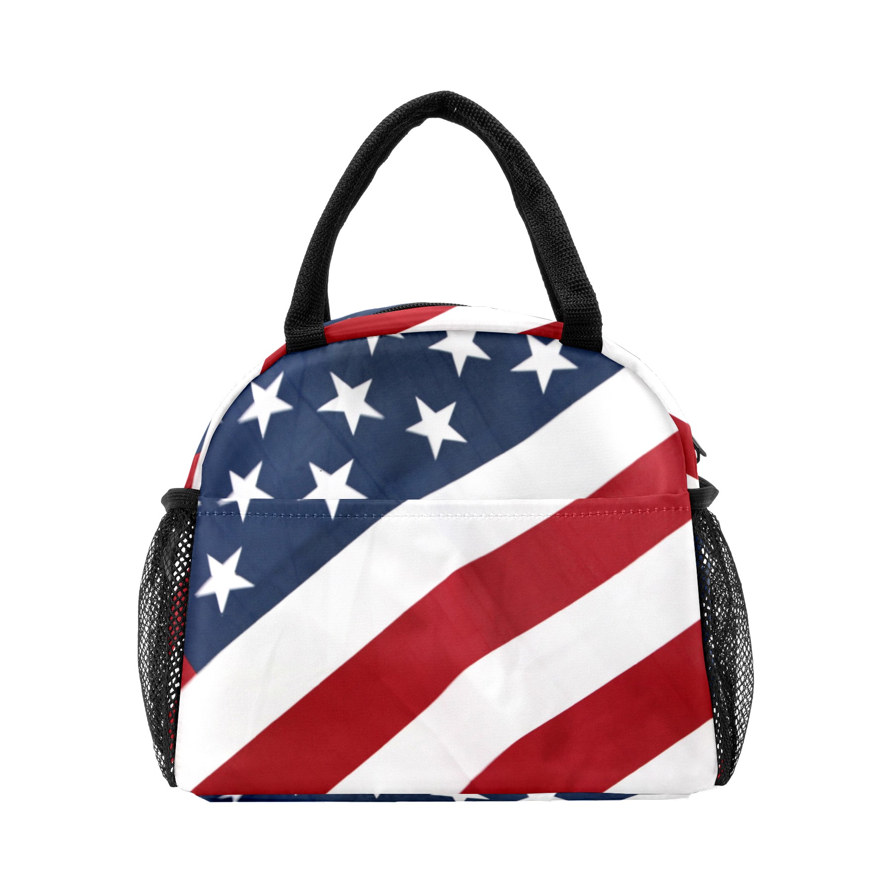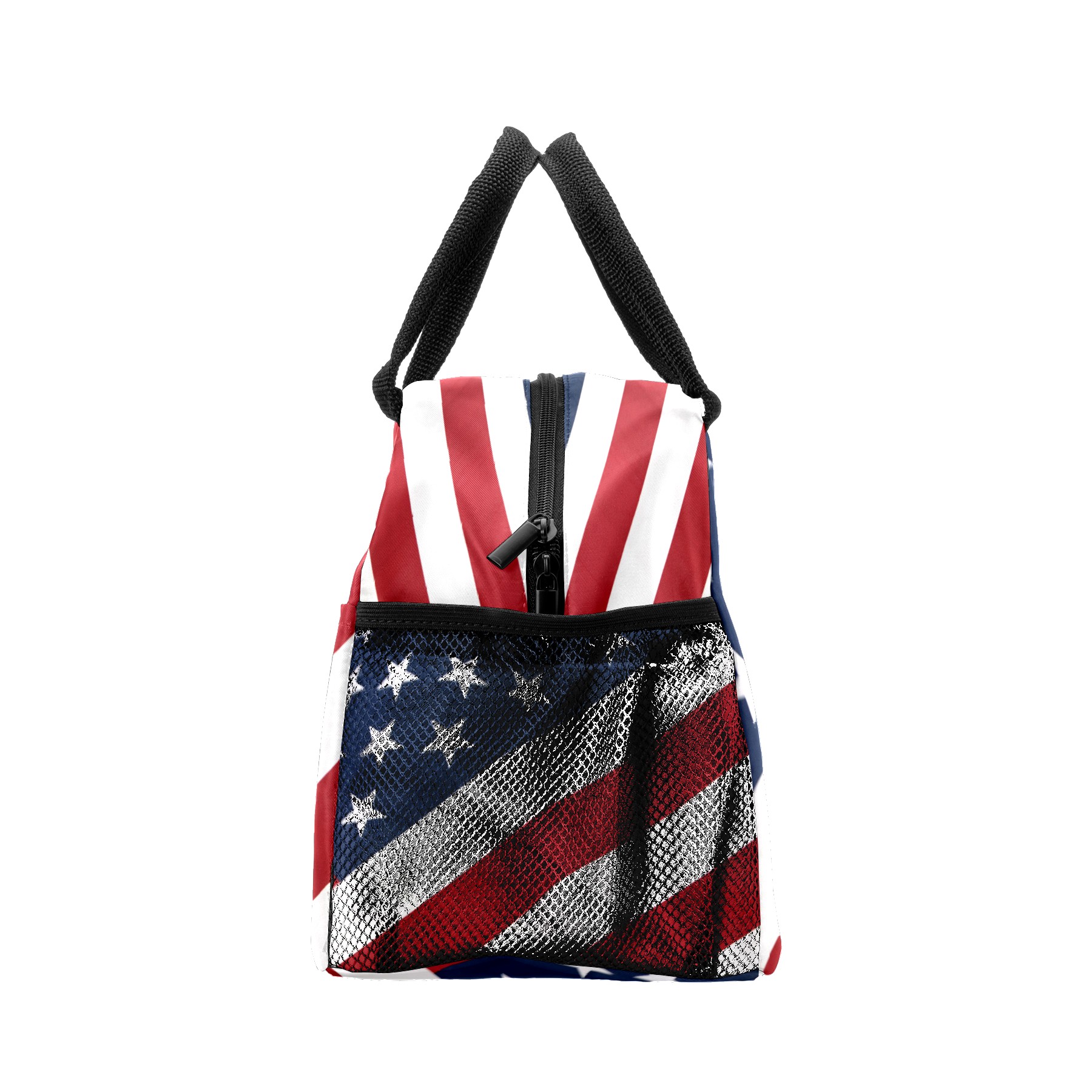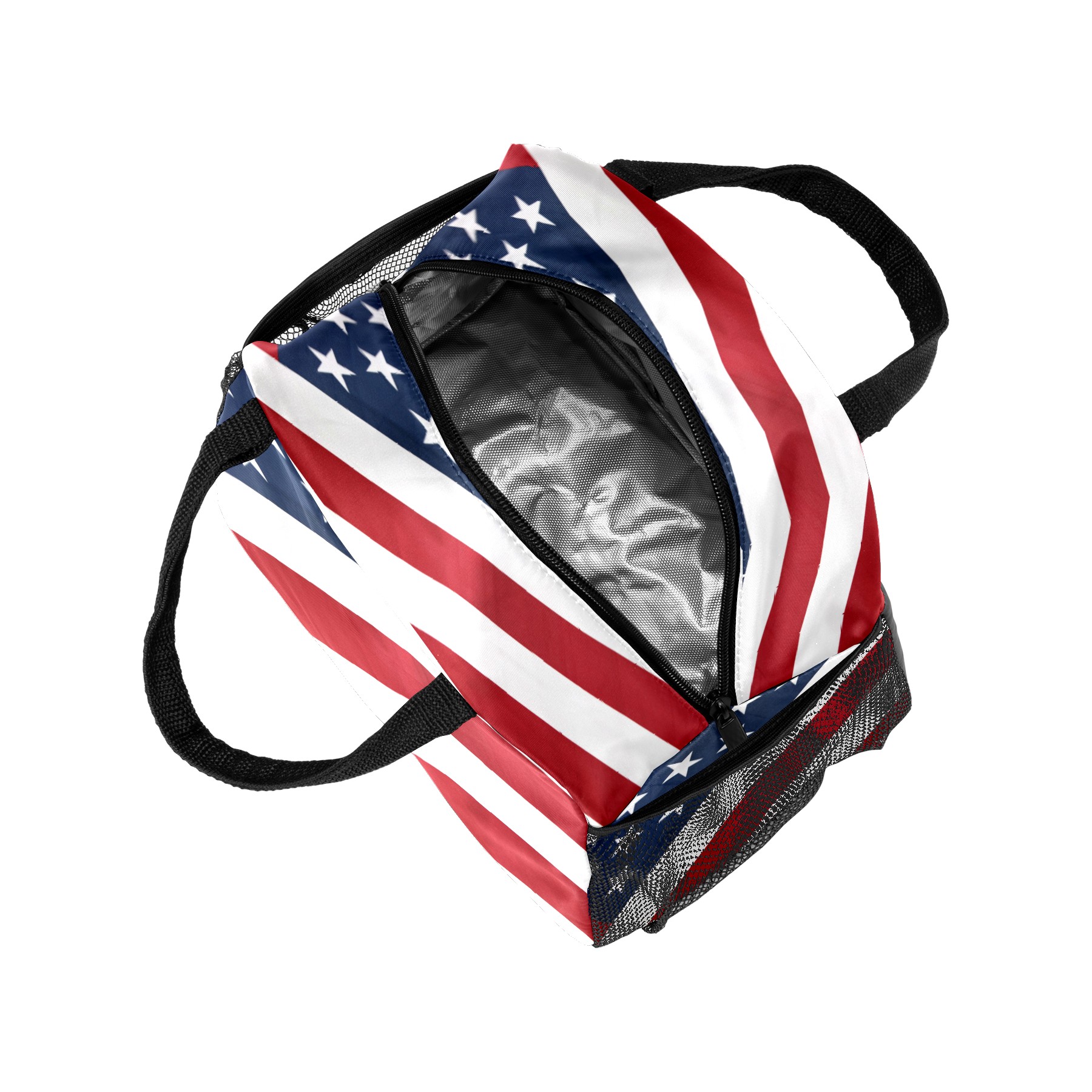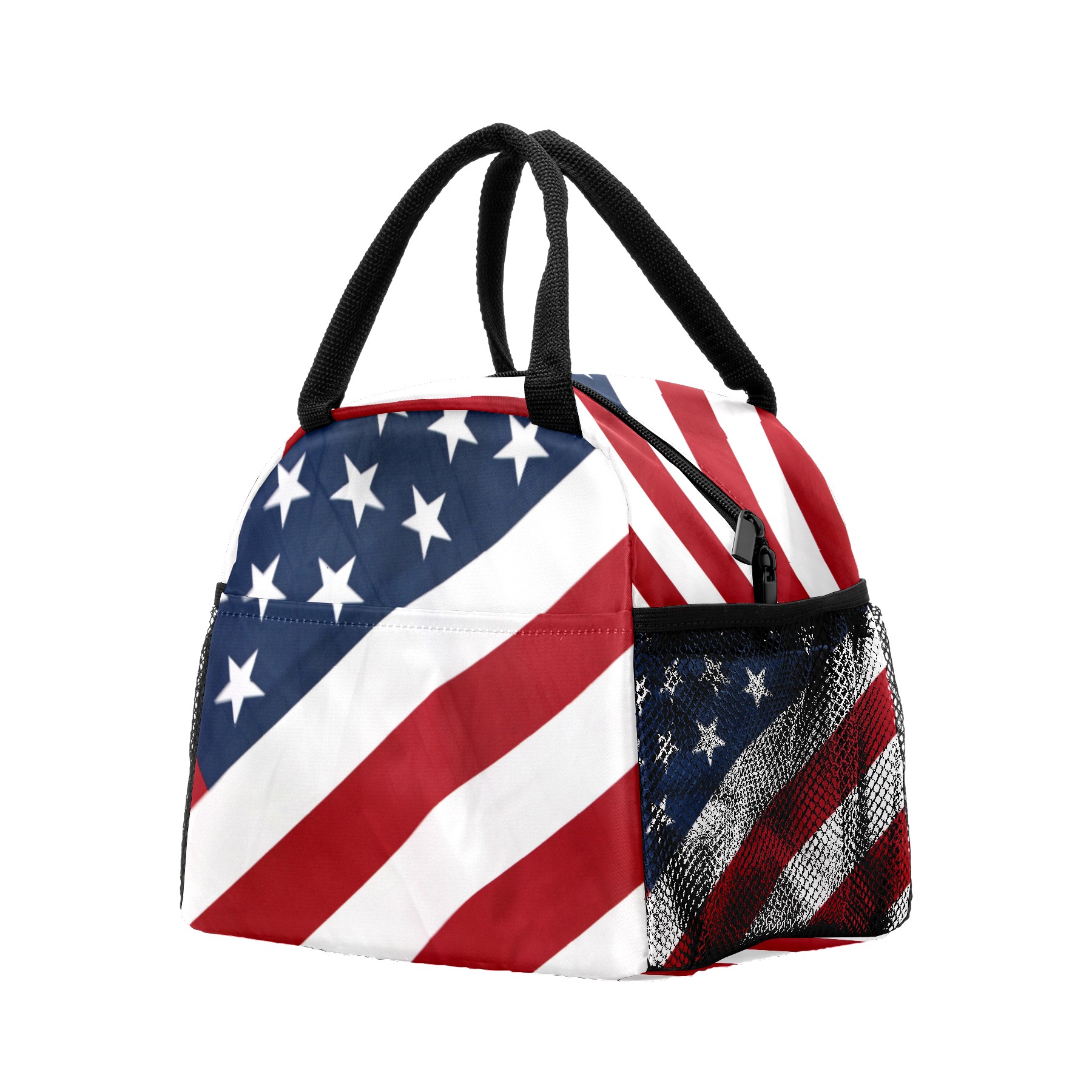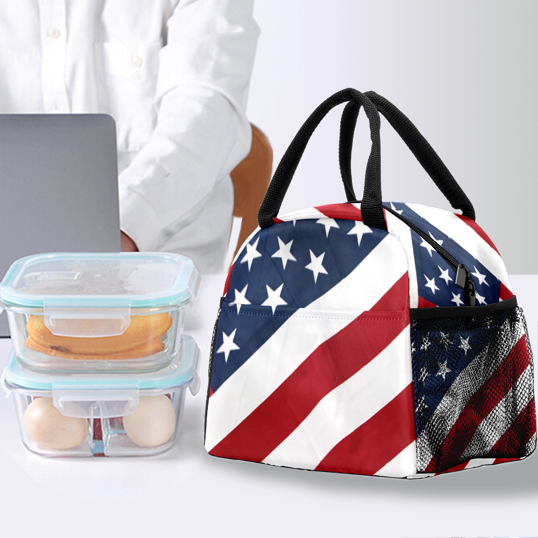 Lunch Bag for Women Men, Independence Day American Flag Insulated Reusable Lunch Box Thermal Cooler Tote Bag for Work Picnic Hiking Travel Beach