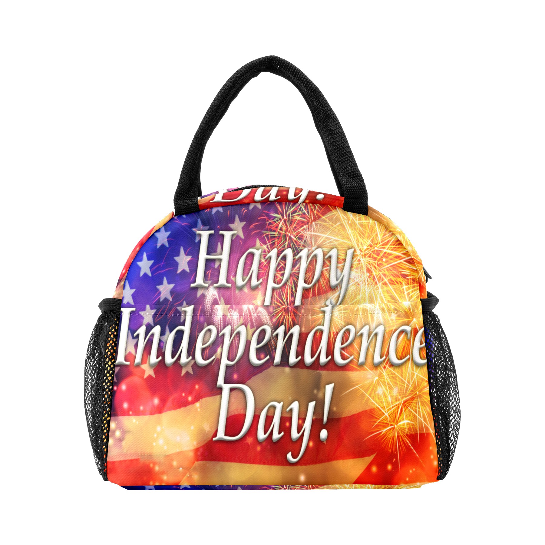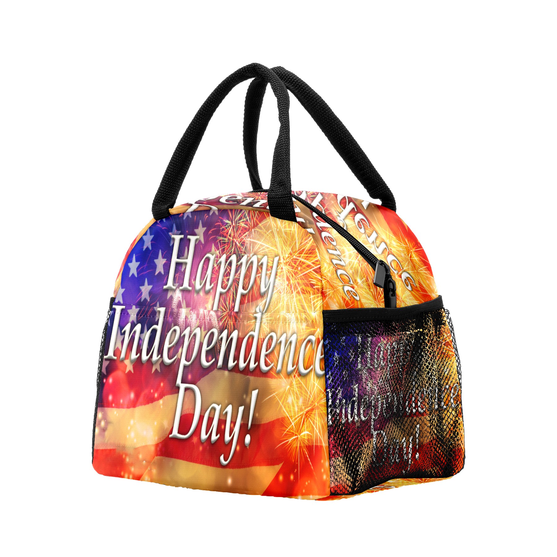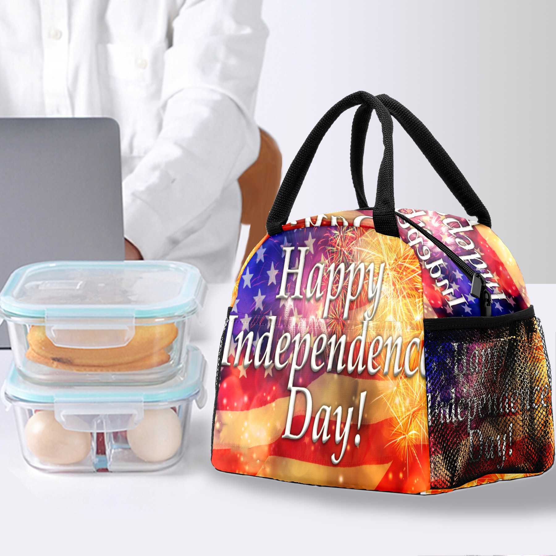 Lunch Bag for Women Men, Happy Independence Day Insulated Reusable Lunch Box Thermal Cooler Tote Bag for Work Picnic Hiking Travel Beach