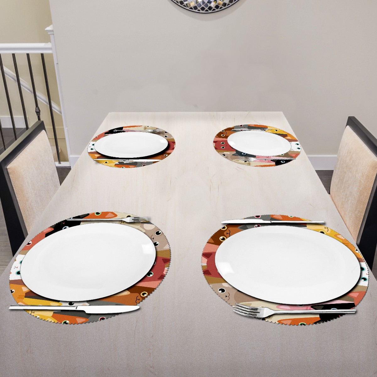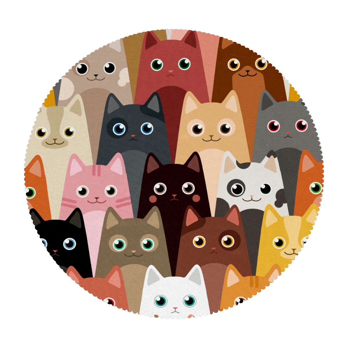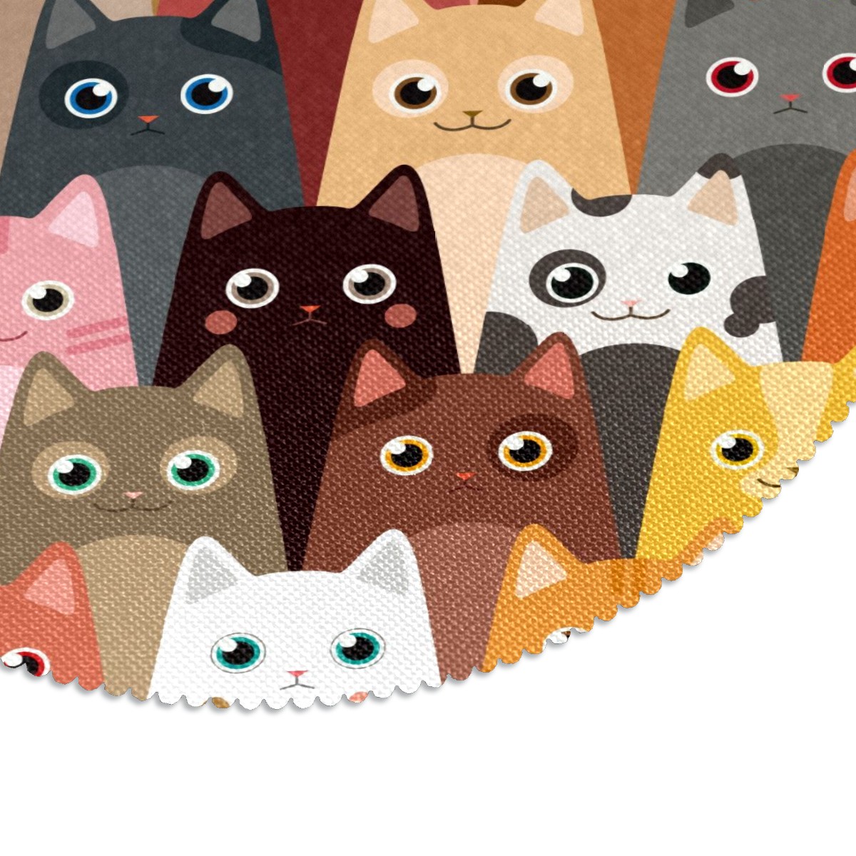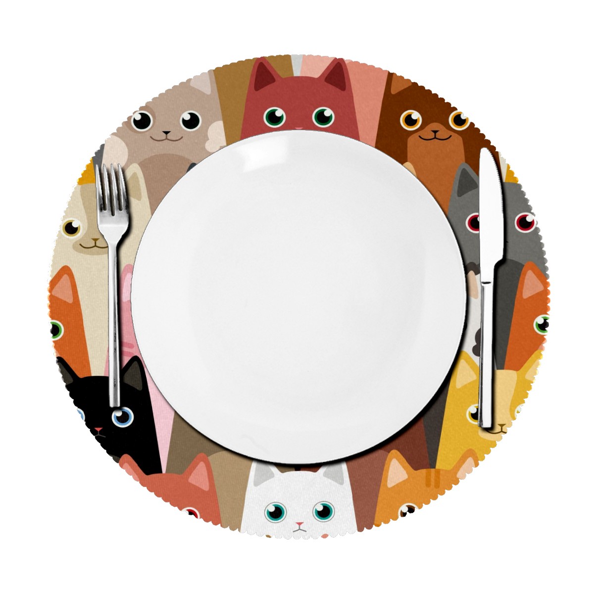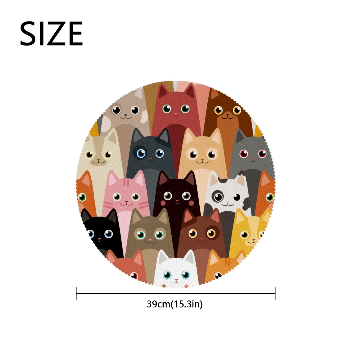 Round Placemats Set of 1 Cartoon Cute Cat Kitty Dining Table Mats Kitchen Waterproof Washable Place Mats Wipeable Boho Tablemats for Home Decor