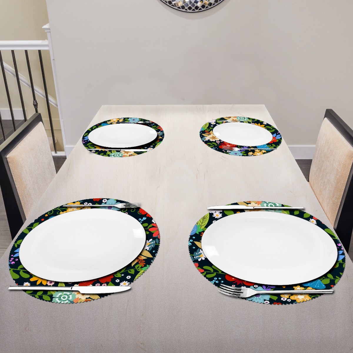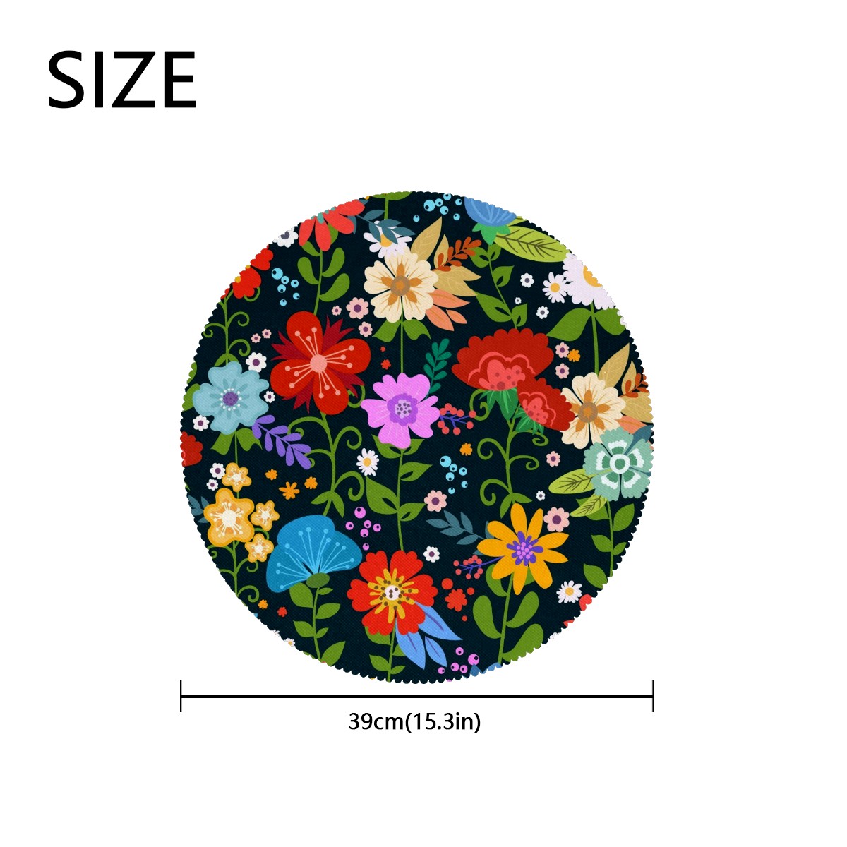 • <p><b>The fashionable design with this table placemat will makes your table look more outstanding and pretty.</b></p> <p><b>Diameter:</b> 15.4 In / 39 cm.</p> <p><b>Packing:</b> 1 PCS/4 PCS/6 PCS.</p> <p><b>Care Instructions:</b></p> <p>1.Wash with water and dry in a cool place. If there are stains on the placemat, you can wipe it with a damp sponge or damp cloth.</p> <p>2.Do not machine wash or sterilize in a microwave oven.</p> <p>3.Note: The package has been rolled up. If you encounter crease problems, please immerse it in warm water and take it out and place a flat object on the mat. The crease will disappear.</p> <p><b>Quality you can trust:</b></p> <p><b>1.Material:High Quality Polyester.</b></p> <p>2.Environmental protection material, no pollution, can be cleaned directly, non-slip, heat-resistant.</p> <p>3.Durable, no deformation,not fade,wrinkle resistant,wear resistant,easy to clean.</p> <p>4.Personalized design. One-Side High Quality Printing Technology.Vivid color and clear images.&nbsp;</p> <p><b>Home Decoration: Suitable for kitchen table,dinner hall,restaurant,hotel,business office,cafe,BBQ,picnic,party,etc.Both practical and decorative.</b></p> <p><b>Best Birthday/Christmas/Halloween/easter/thanksgiving/wedding/engagement anniversary gift to your baby/children/kids/family/boys/girls/parents/friends/girlfriend/boyfriend/wife, etc.</b></p>
