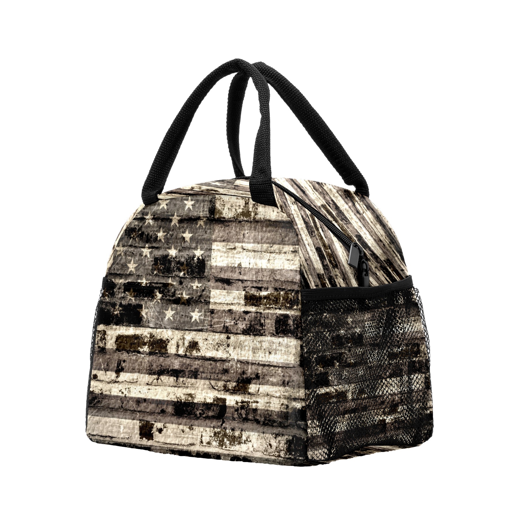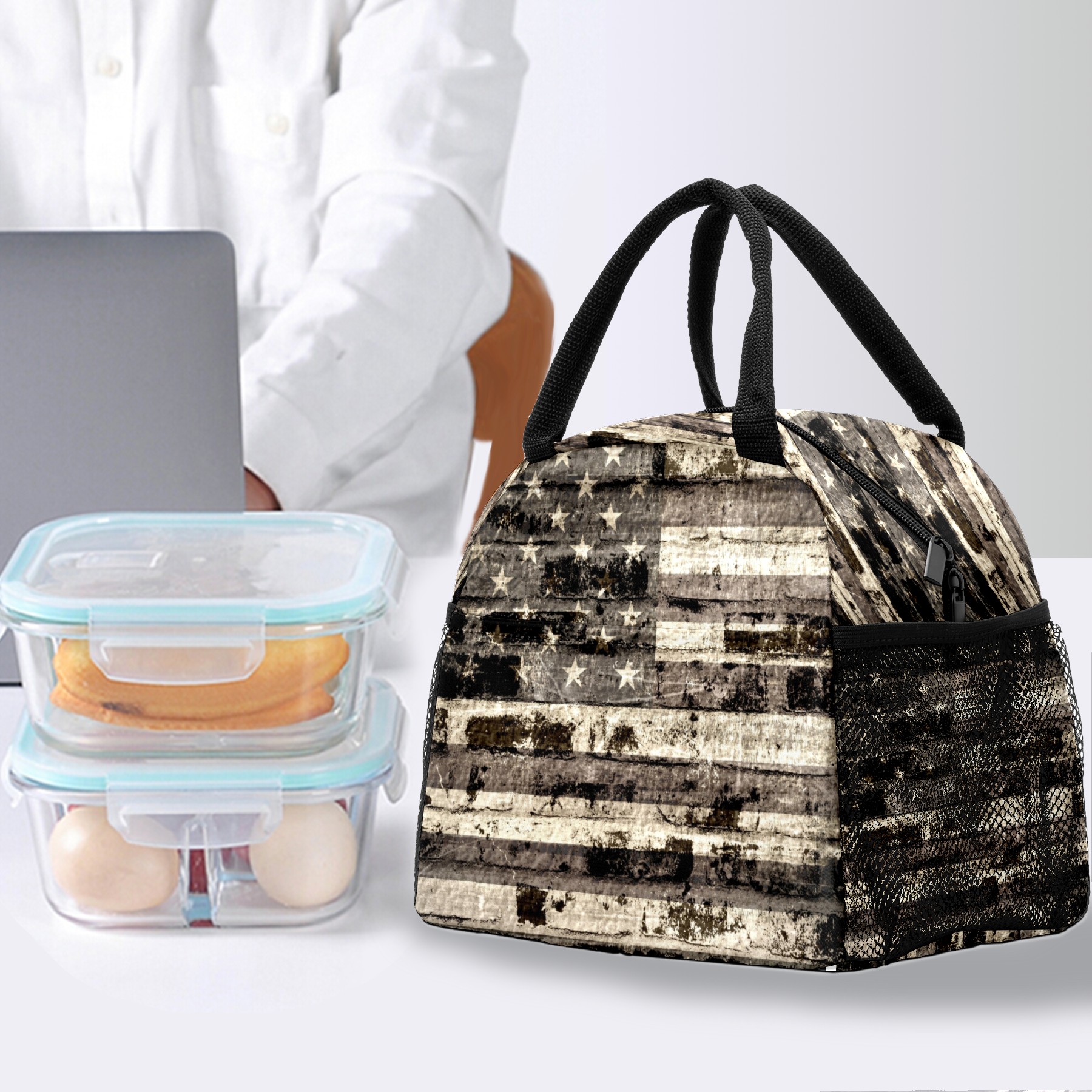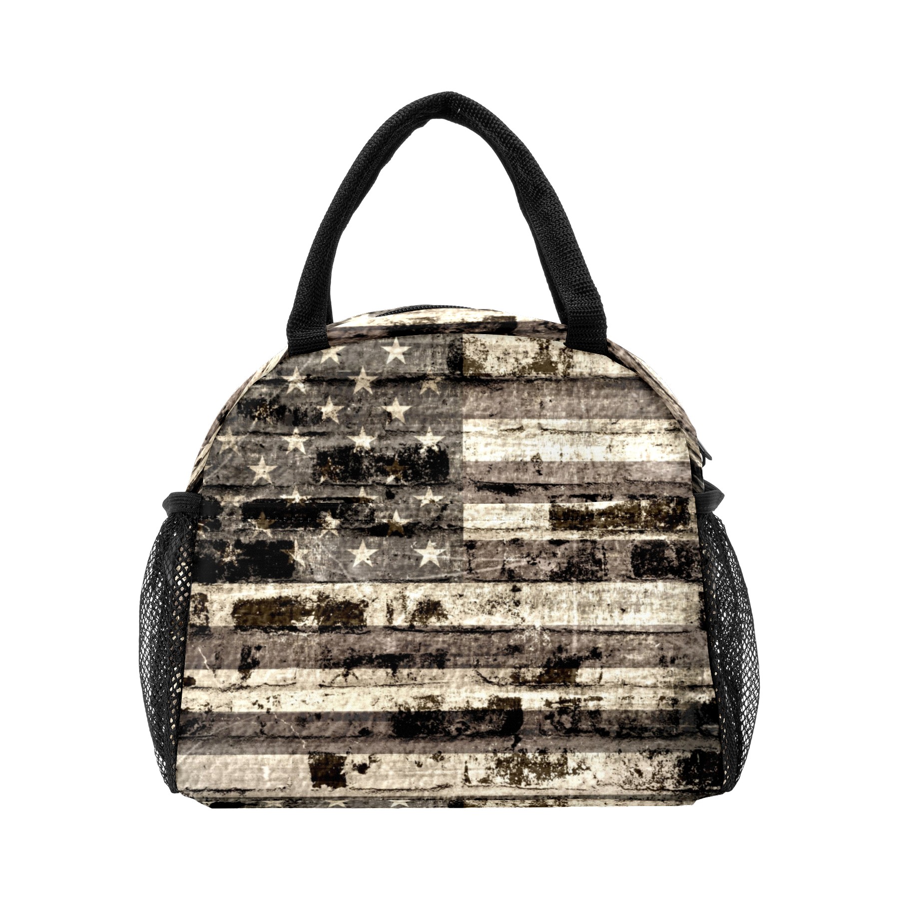 Lunch Bag for Women Men, Grunge Rustic American Flag Insulated Reusable Lunch Box Thermal Cooler Tote Bag for Work Picnic Hiking Travel Beach