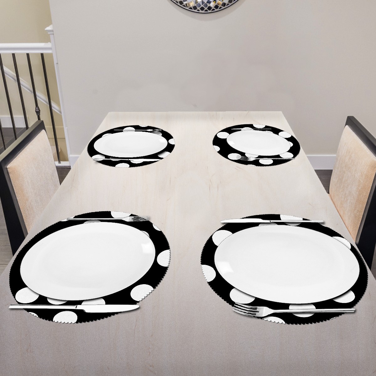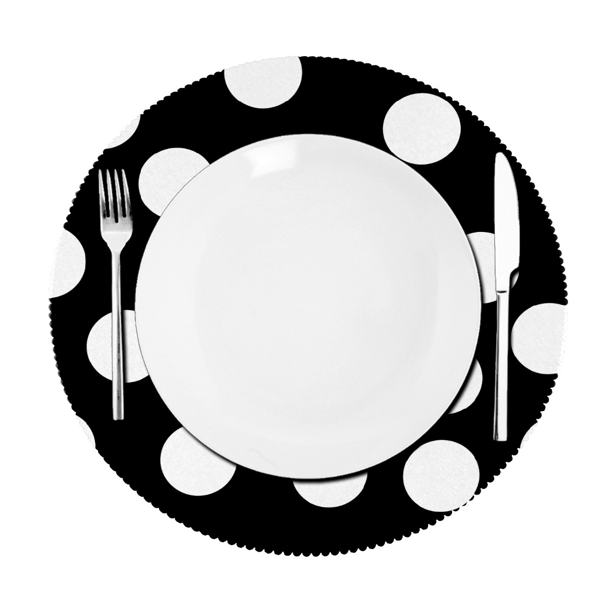 Round Placemats Set of 1 Black White Polka Dot Dining Table Mats Kitchen Waterproof Washable Place Mats Wipeable Boho Tablemats for Home Decor