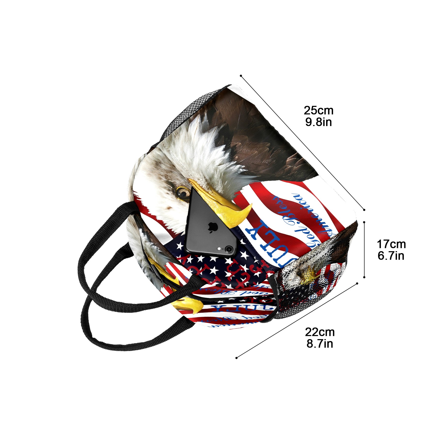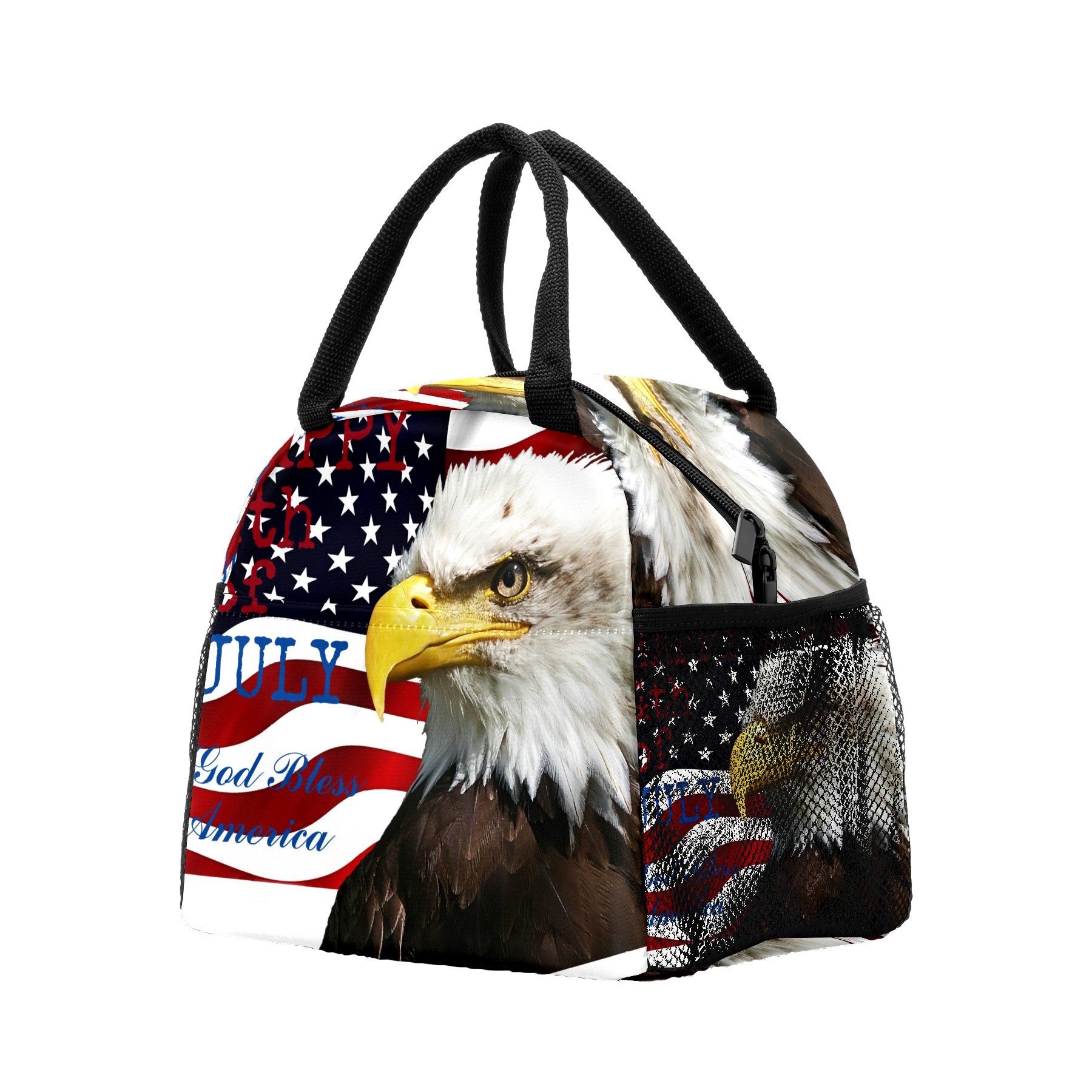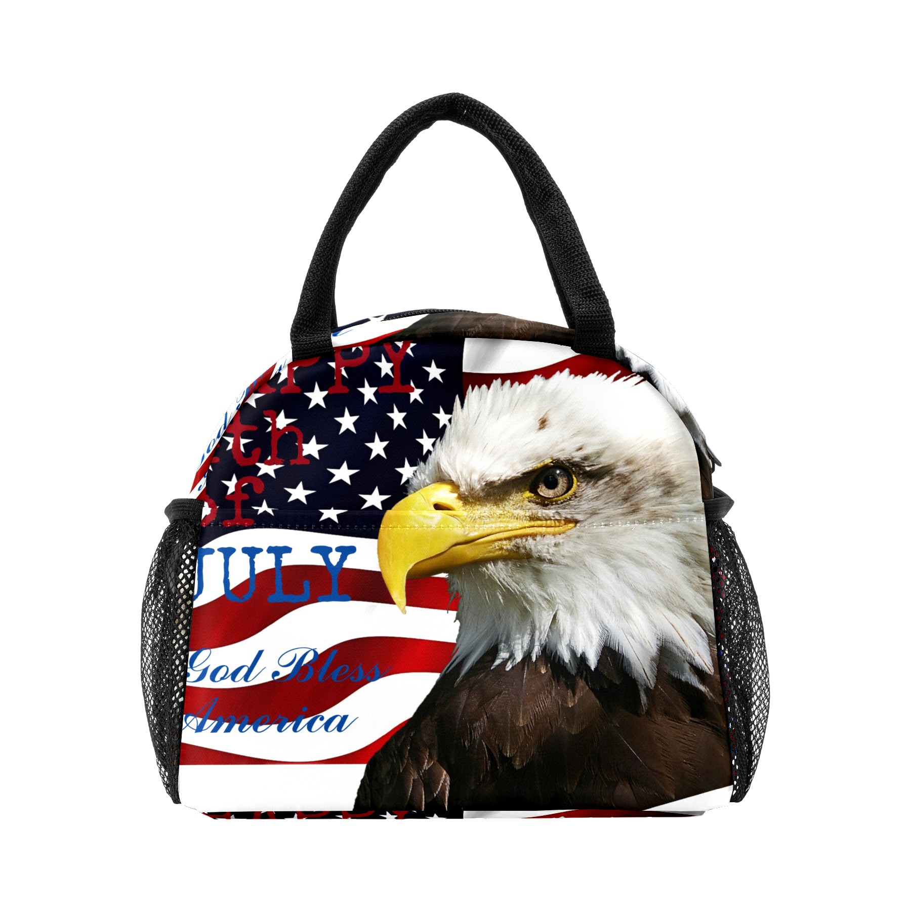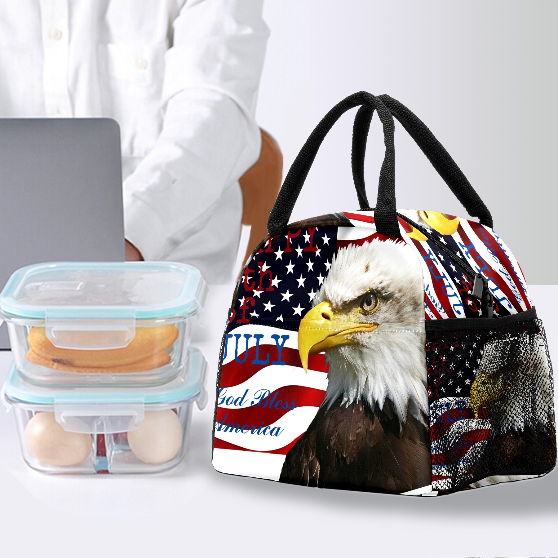 Lunch Bag for Women Men, Happy 4th Of July God Bless America Insulated Reusable Lunch Box Thermal Cooler Tote Bag for Work Picnic Hiking Travel Beach