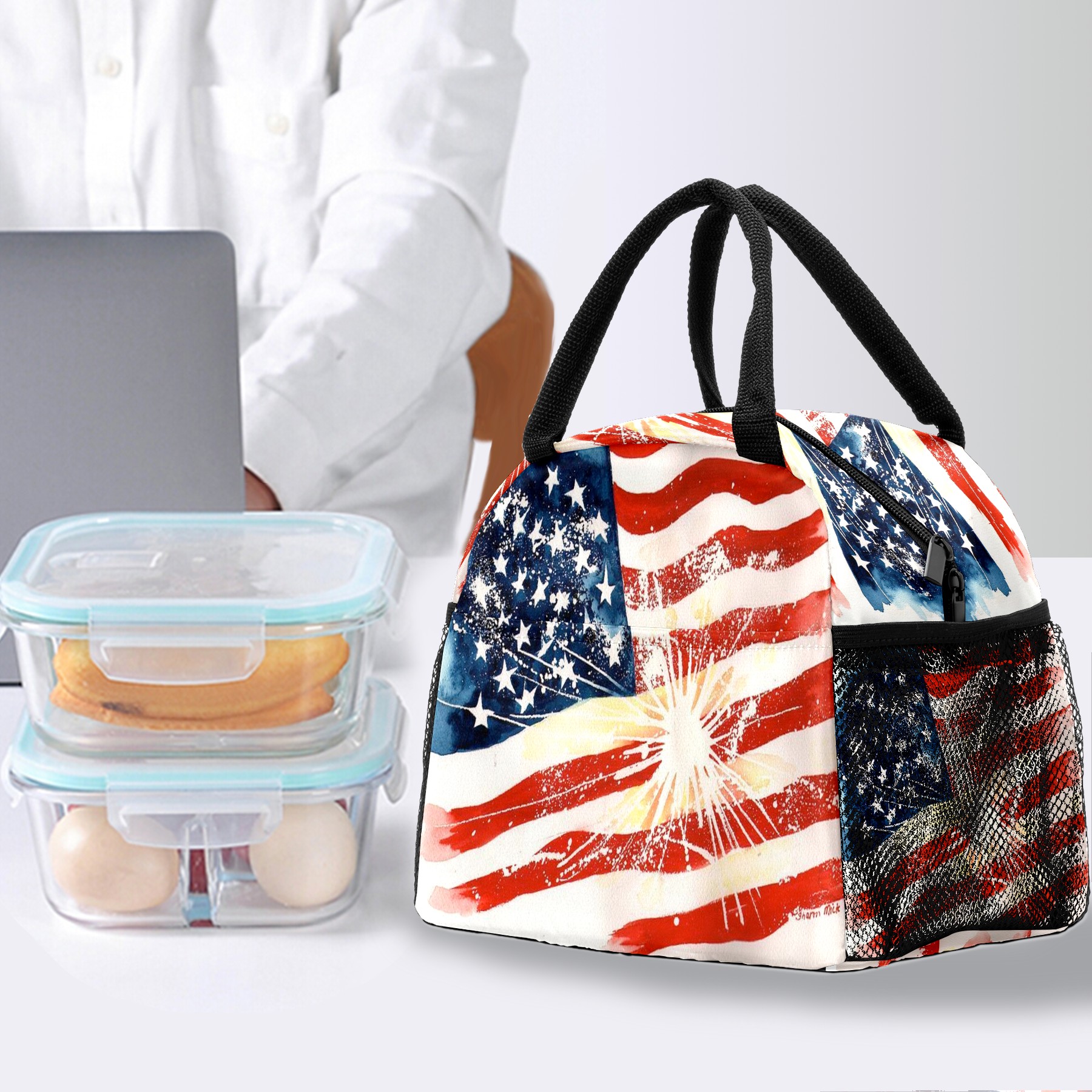 Lunch Bag for Women Men, Independence Day America Flag Insulated Reusable Lunch Box Thermal Cooler Tote Bag for Work Picnic Hiking Travel Beach
