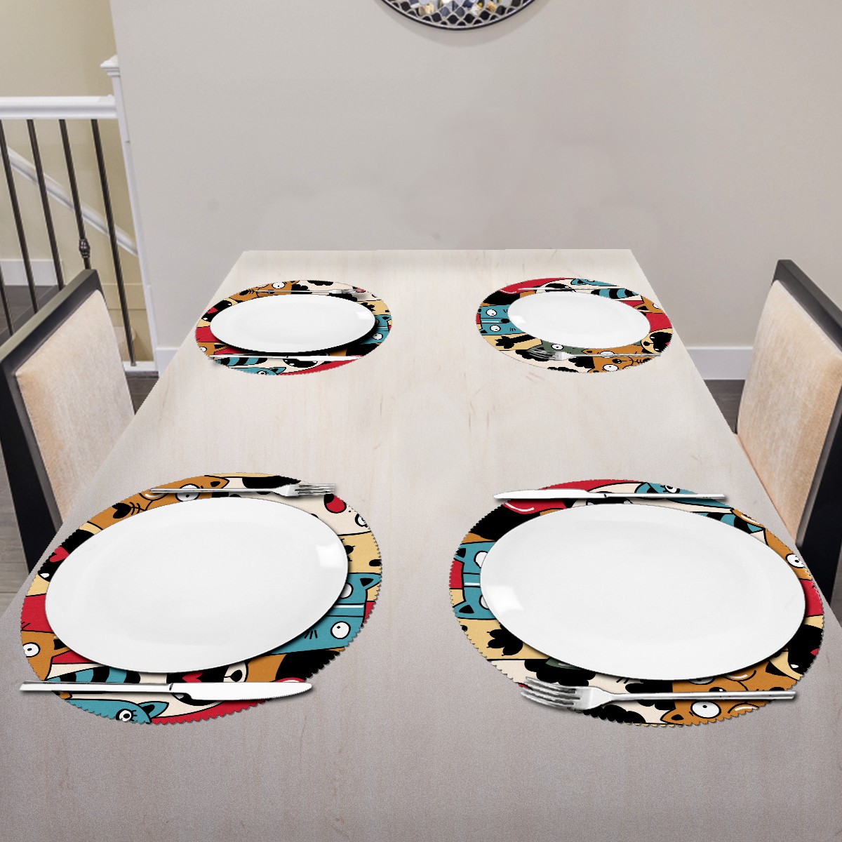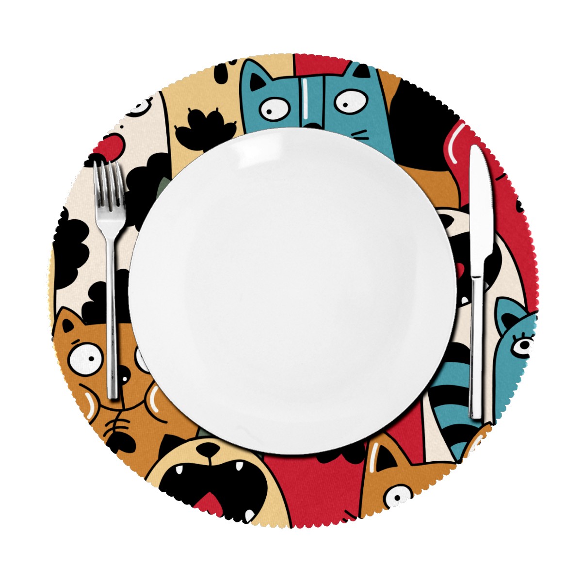 <p><b>The fashionable design with this table placemat will makes your table look more outstanding and pretty.</b></p> <p><b>Diameter:</b> 15.4 In / 39 cm.</p> <p><b>Packing:</b> 1 PCS/4 PCS/6 PCS.</p> <p><b>Care Instructions:</b></p> <p>1.Wash with water and dry in a cool place. If there are stains on the placemat, you can wipe it with a damp sponge or damp cloth.</p> <p>2.Do not machine wash or sterilize in a microwave oven.</p> <p>3.Note: The package has been rolled up. If you encounter crease problems, please immerse it in warm water and take it out and place a flat object on the mat. The crease will disappear.</p> <p><b>Quality you can trust:</b></p> <p><b>1.Material:High Quality Polyester.</b></p> <p>2.Environmental protection material, no pollution, can be cleaned directly, non-slip, heat-resistant.</p> <p>3.Durable, no deformation,not fade,wrinkle resistant,wear resistant,easy to clean.</p> <p>4.Personalized design. One-Side High Quality Printing Technology.Vivid color and clear images. </p> <p><b>Home Decoration: Suitable for kitchen table,dinner hall,restaurant,hotel,business office,cafe,BBQ,picnic,party,etc.Both practical and decorative.</b></p> <p><b>Best Birthday/Christmas/Halloween/easter/thanksgiving/wedding/engagement anniversary gift to your baby/children/kids/family/boys/girls/parents/friends/girlfriend/boyfriend/wife, etc.</b></p>