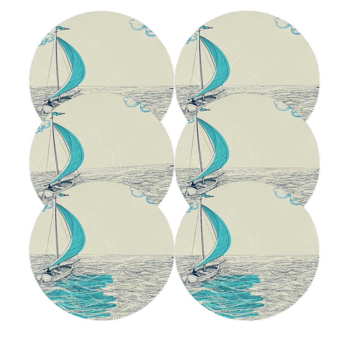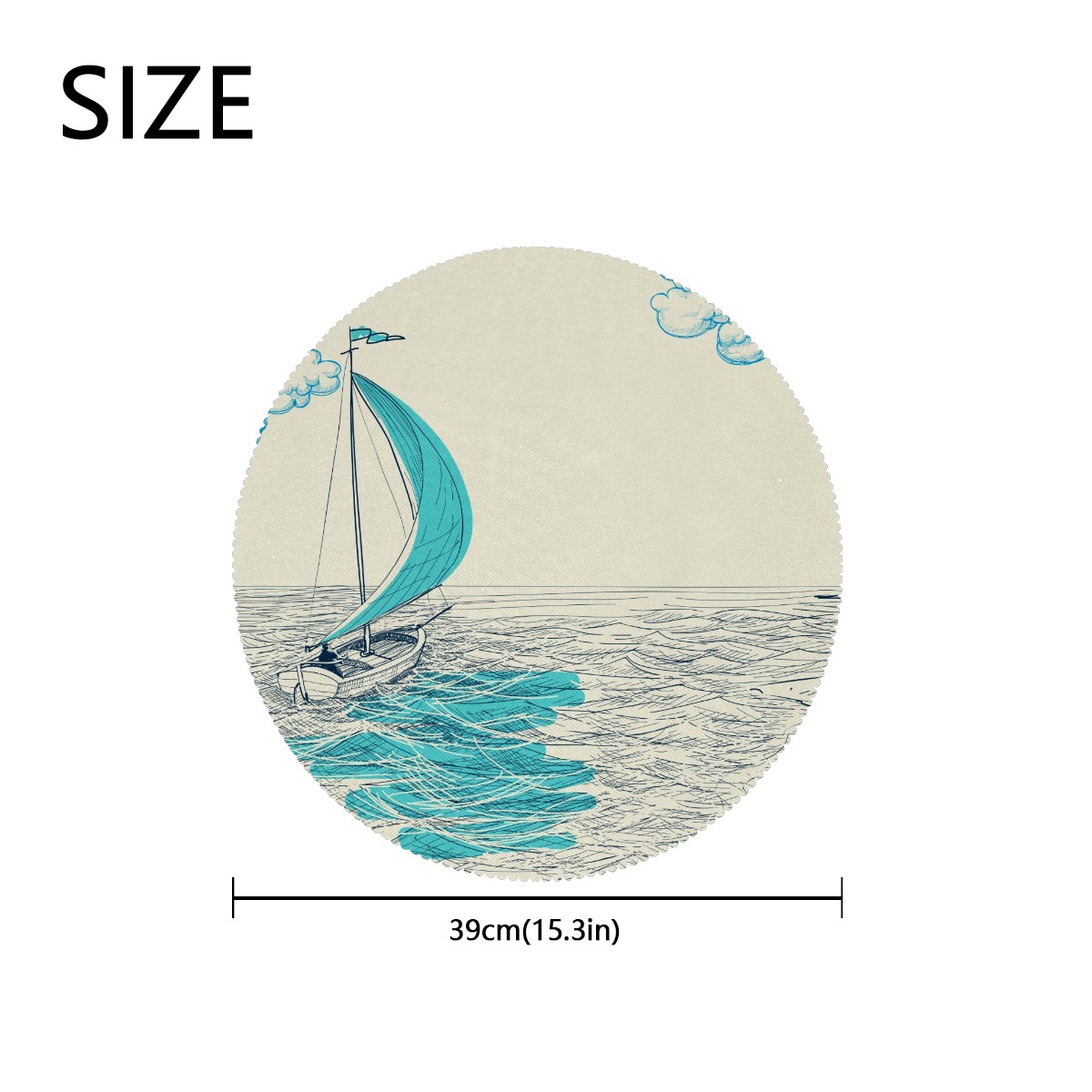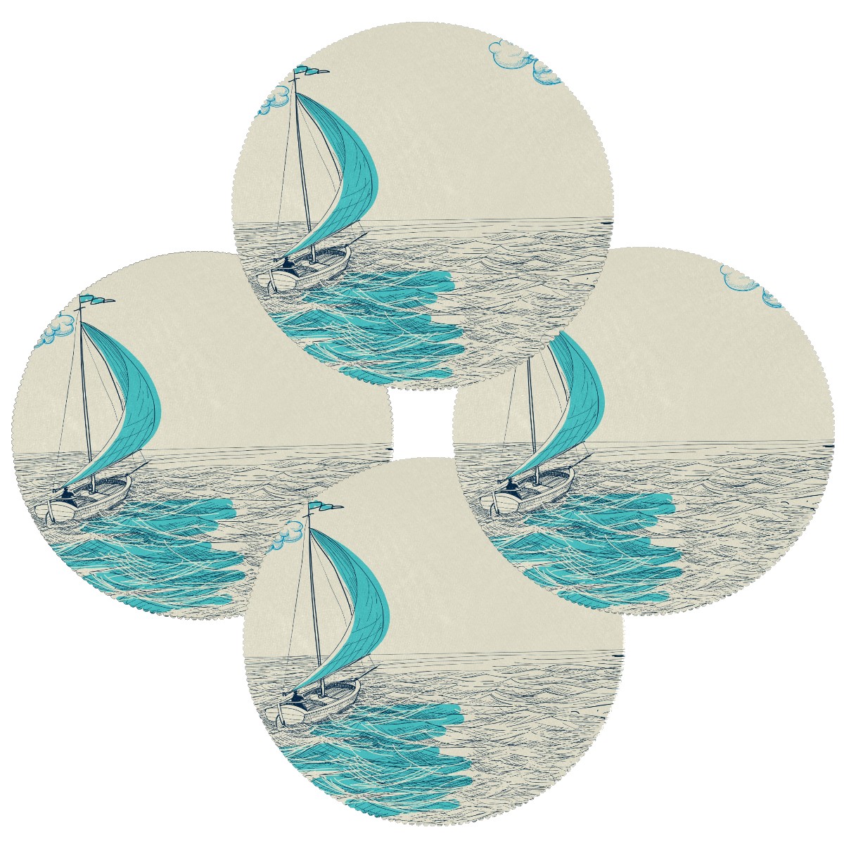 Round Placemats Set of 1 Ocean Sailboat Nautical Dining Table Mats Kitchen Waterproof Washable Place Mats Wipeable Boho Tablemats for Home Decor