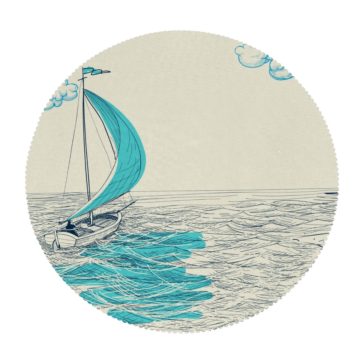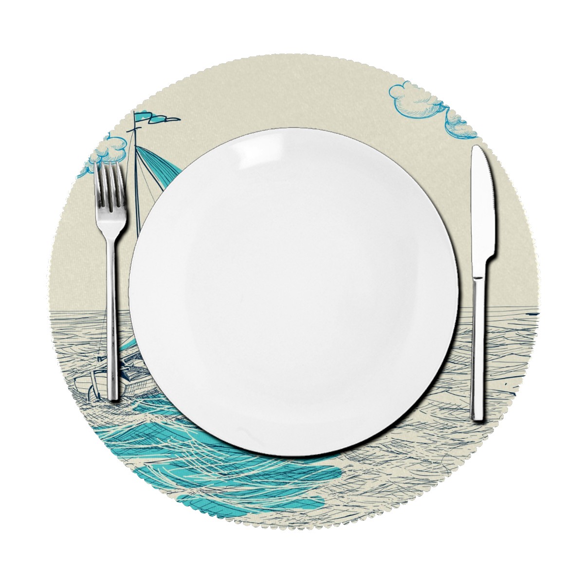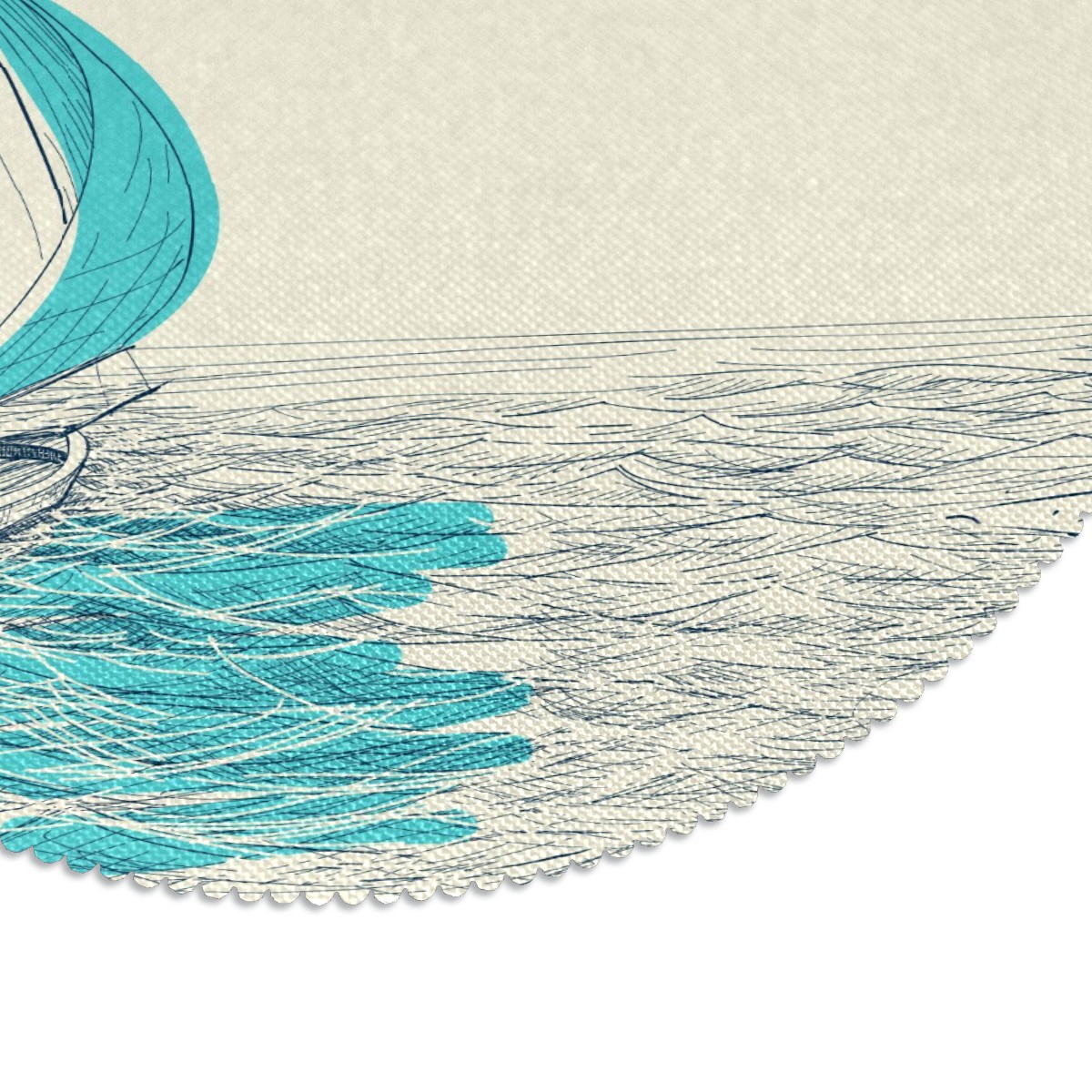 Round Placemats Set of 1 Ocean Sailboat Nautical Dining Table Mats Kitchen Waterproof Washable Place Mats Wipeable Boho Tablemats for Home Decor