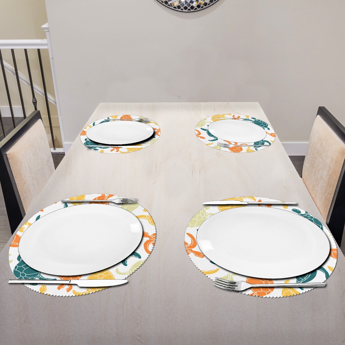 Round Placemats Set of 1 Colorful Sea Turtle Dining Table Mats Kitchen Waterproof Washable Place Mats Wipeable Boho Tablemats for Home Decor