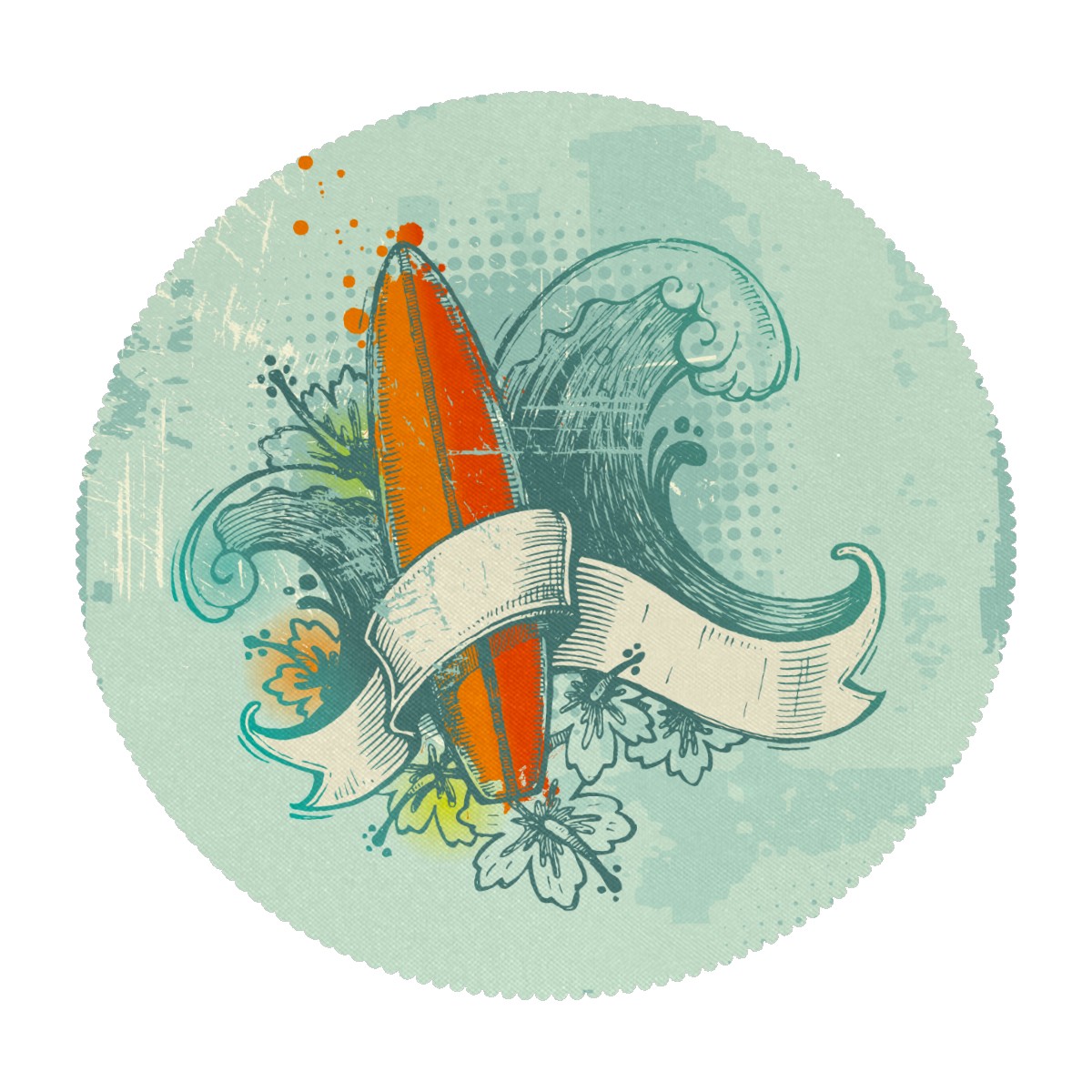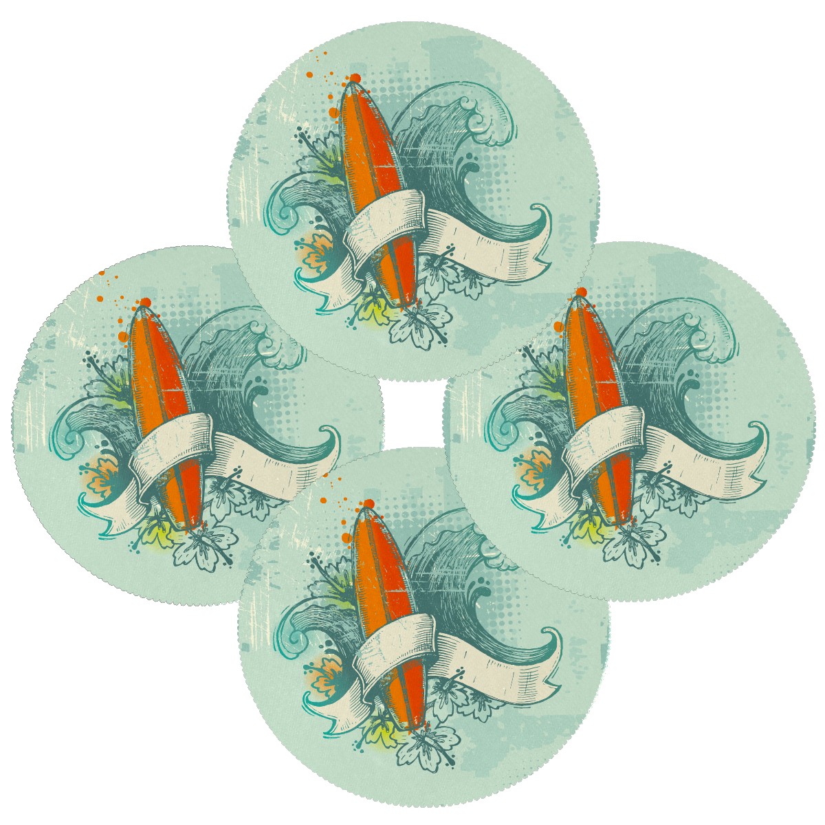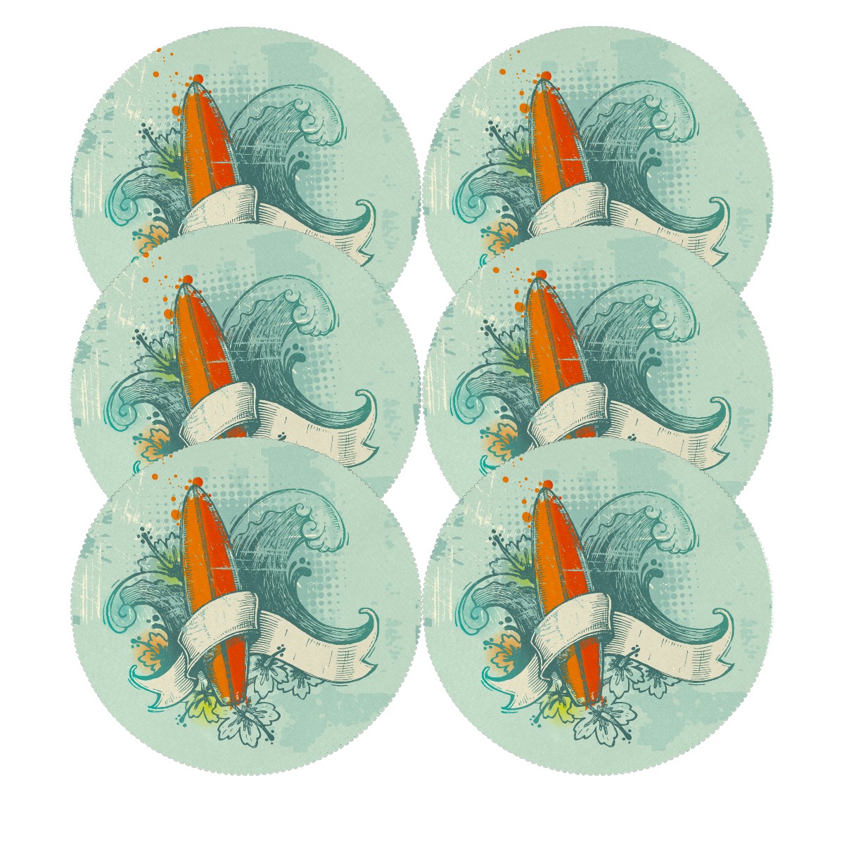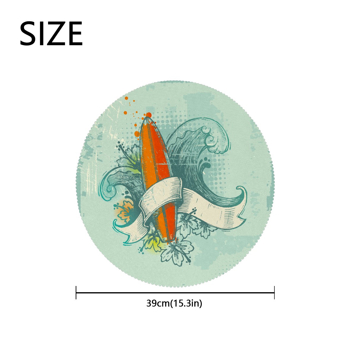 Round Placemats Set of 1 Summer Waves Surfboard Dining Table Mats Kitchen Waterproof Washable Place Mats Wipeable Boho Tablemats for Home Decor
