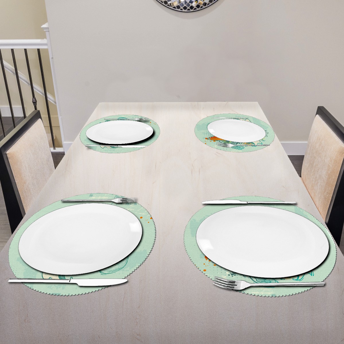 • <p><b>The fashionable design with this table placemat will makes your table look more outstanding and pretty.</b></p> <p><b>Diameter:</b> 15.4 In / 39 cm.</p> <p><b>Packing:</b> 1 PCS/4 PCS/6 PCS.</p> <p><b>Care Instructions:</b></p> <p>1.Wash with water and dry in a cool place. If there are stains on the placemat, you can wipe it with a damp sponge or damp cloth.</p> <p>2.Do not machine wash or sterilize in a microwave oven.</p> <p>3.Note: The package has been rolled up. If you encounter crease problems, please immerse it in warm water and take it out and place a flat object on the mat. The crease will disappear.</p> <p><b>Quality you can trust:</b></p> <p><b>1.Material:High Quality Polyester.</b></p> <p>2.Environmental protection material, no pollution, can be cleaned directly, non-slip, heat-resistant.</p> <p>3.Durable, no deformation,not fade,wrinkle resistant,wear resistant,easy to clean.</p> <p>4.Personalized design. One-Side High Quality Printing Technology.Vivid color and clear images.&nbsp;</p> <p><b>Home Decoration: Suitable for kitchen table,dinner hall,restaurant,hotel,business office,cafe,BBQ,picnic,party,etc.Both practical and decorative.</b></p> <p><b>Best Birthday/Christmas/Halloween/easter/thanksgiving/wedding/engagement anniversary gift to your baby/children/kids/family/boys/girls/parents/friends/girlfriend/boyfriend/wife, etc.</b></p>