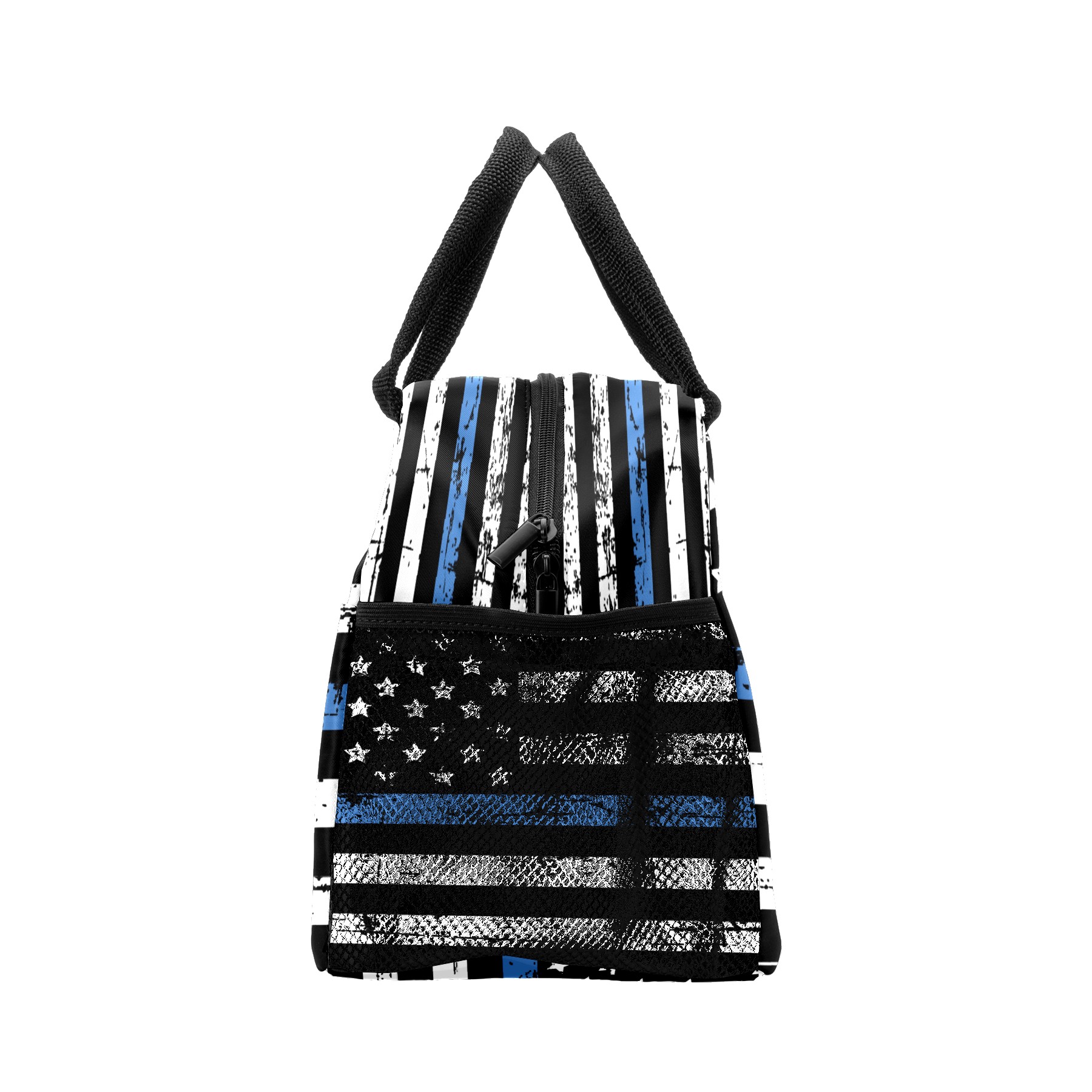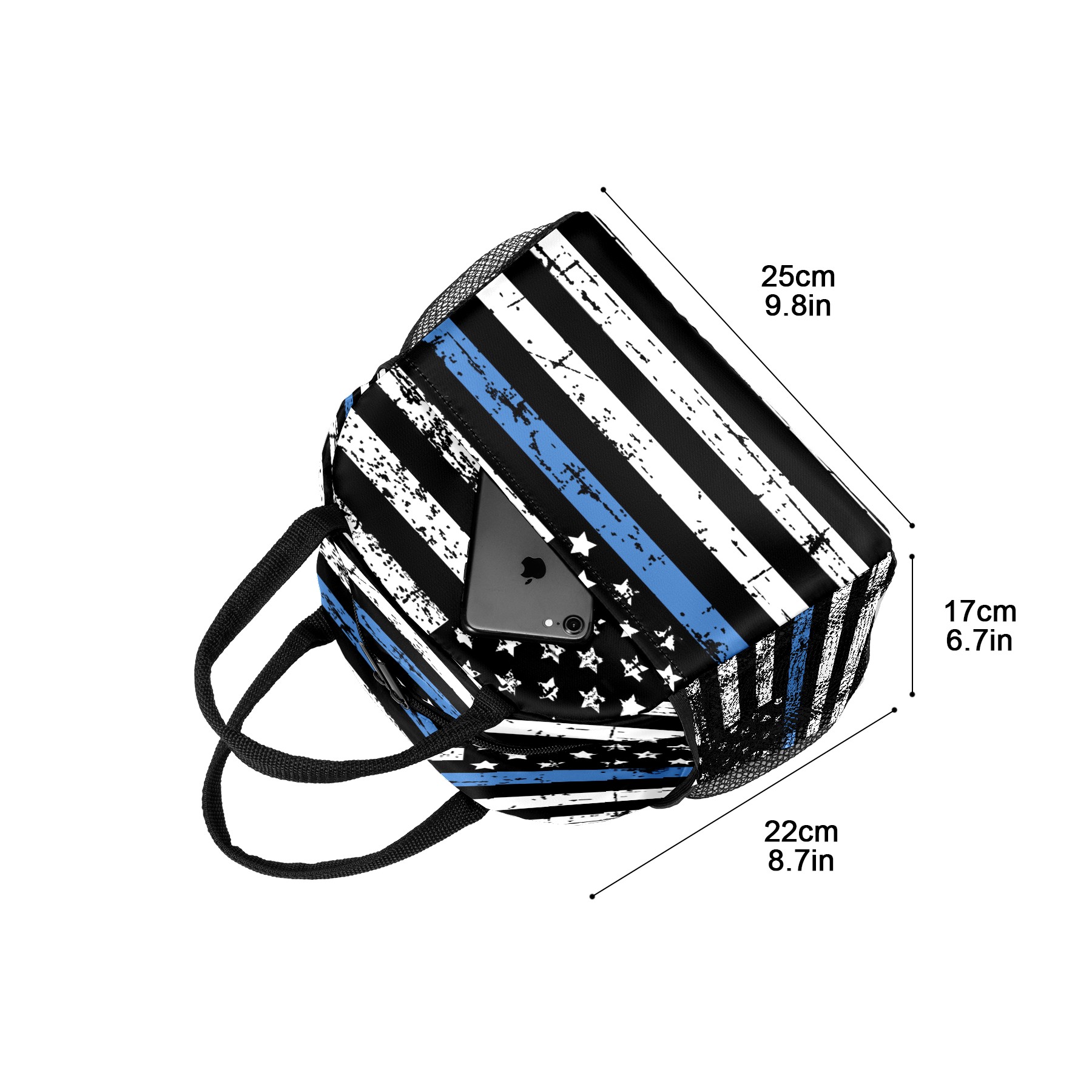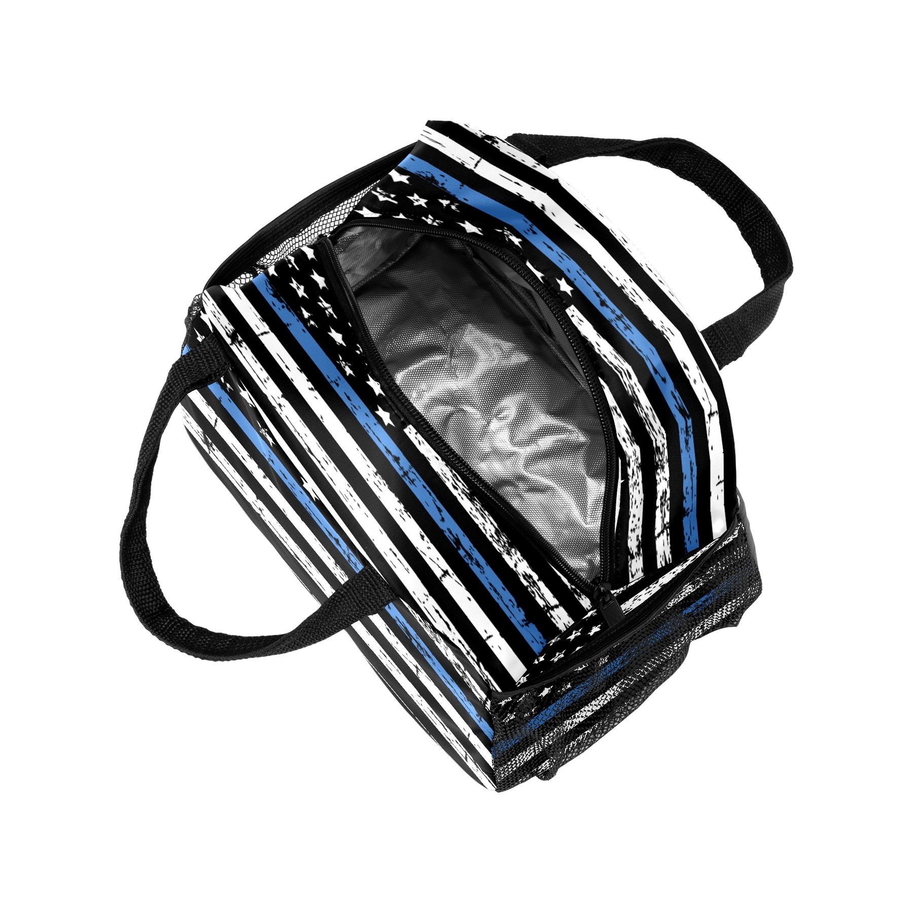 Lunch Bag for Women Men, Grunge Thin Blue Line American Flag Insulated Reusable Lunch Box Thermal Cooler Tote Bag for Work Picnic Hiking Travel Beach